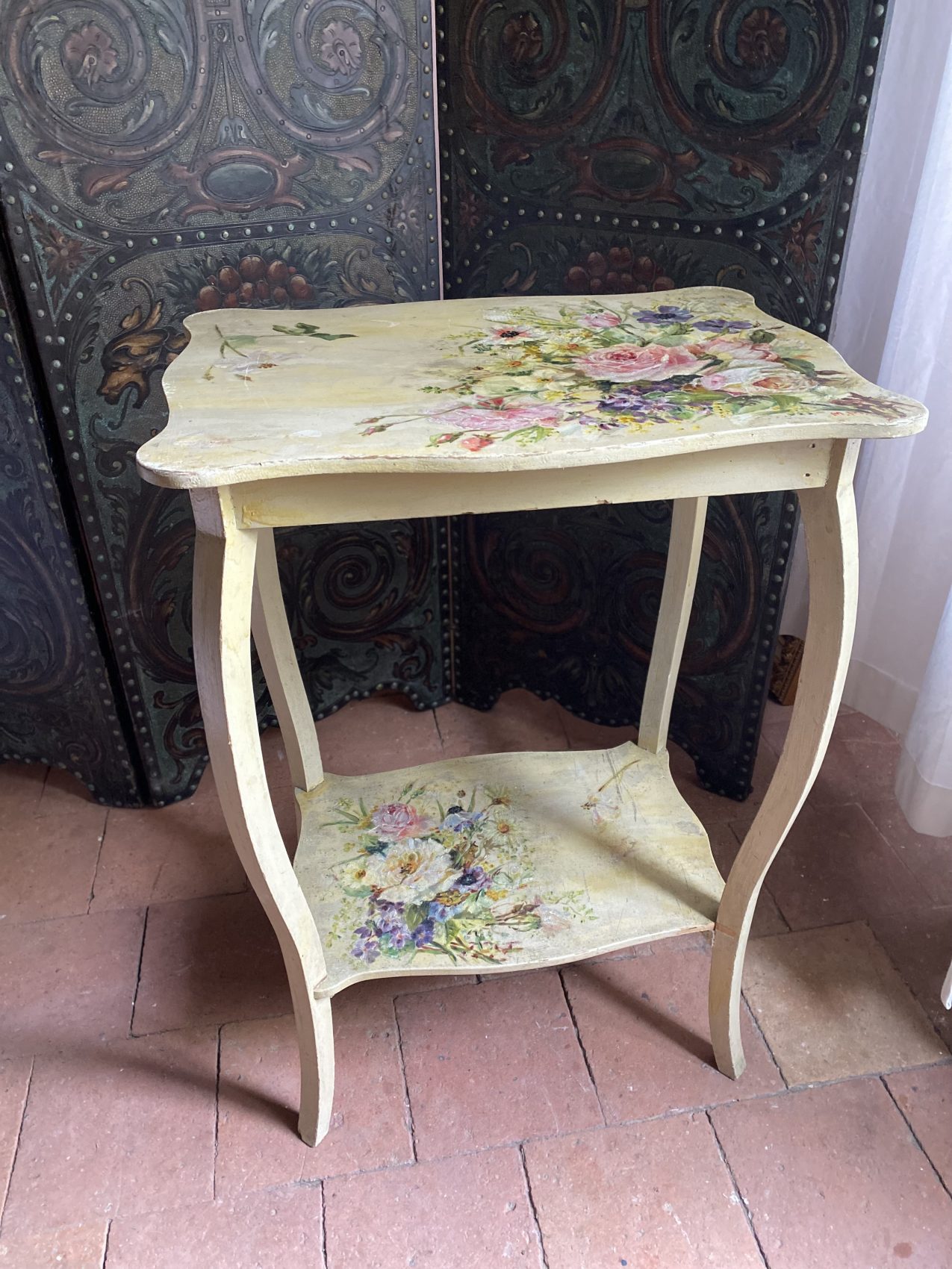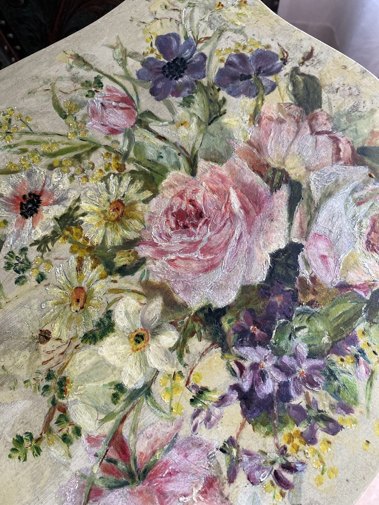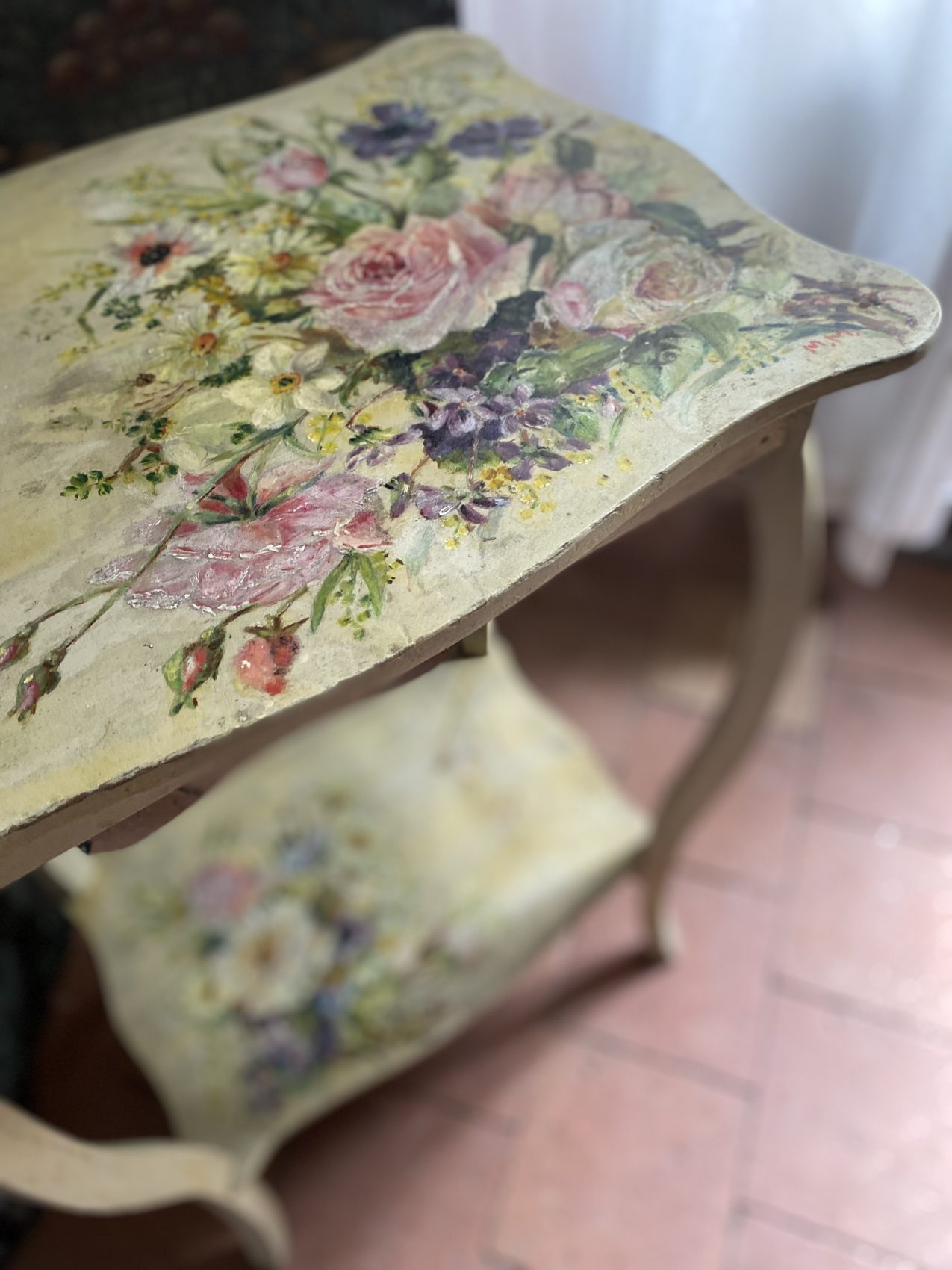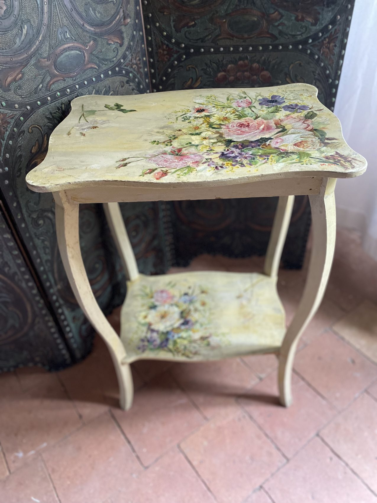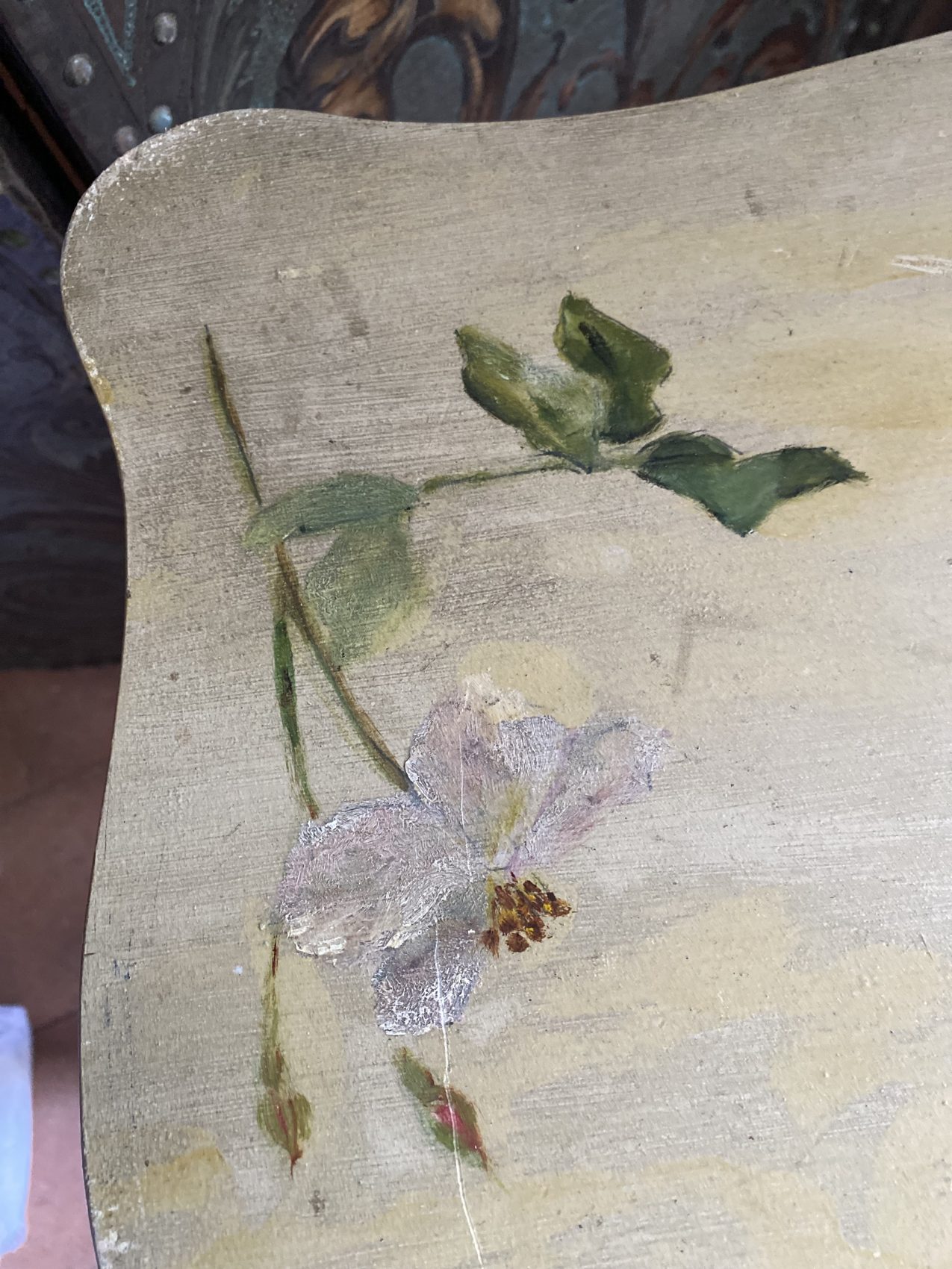 Petite table d’appoint époque 1900 aux motifs de fleurs peintes