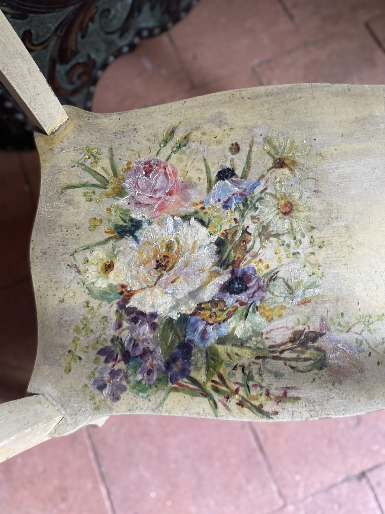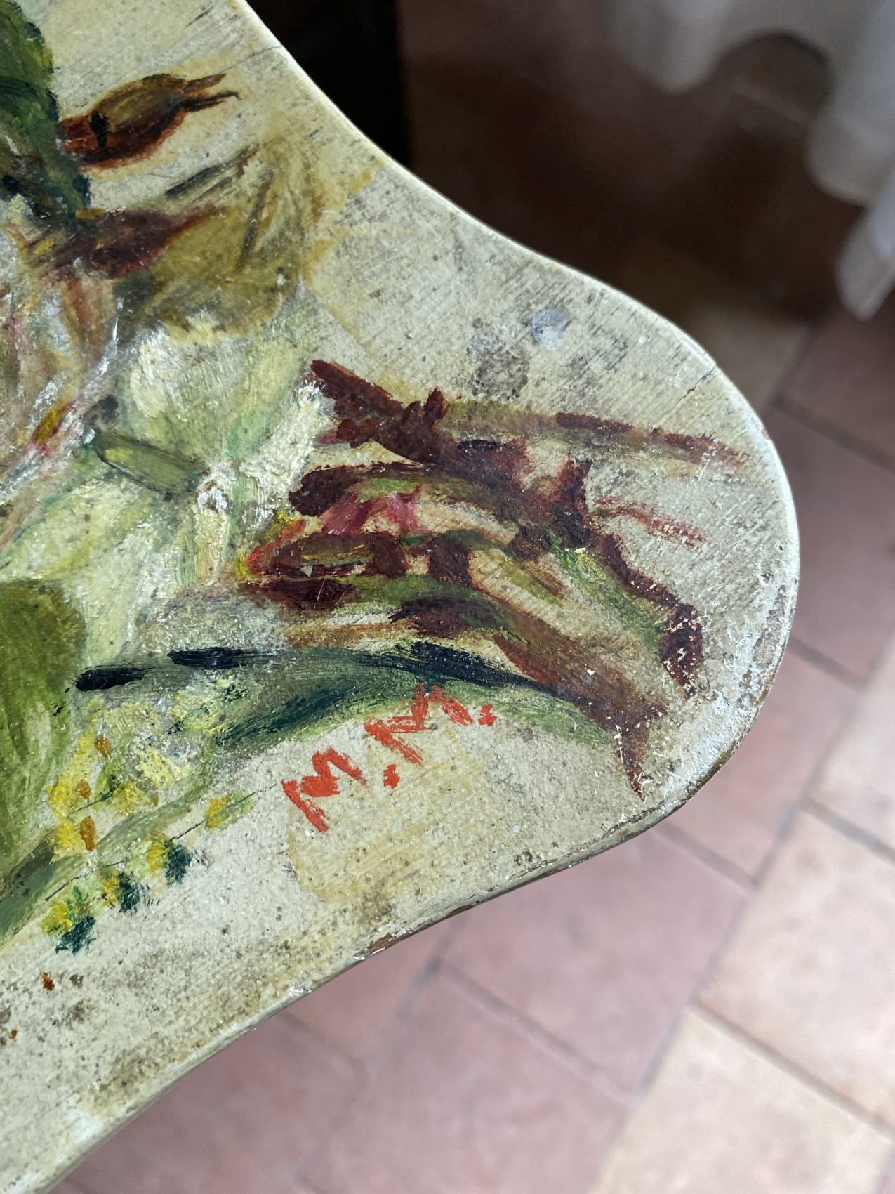 Décor ancien réalisé en décalcomanie peinte et vernie, typique de la Belle Époque.