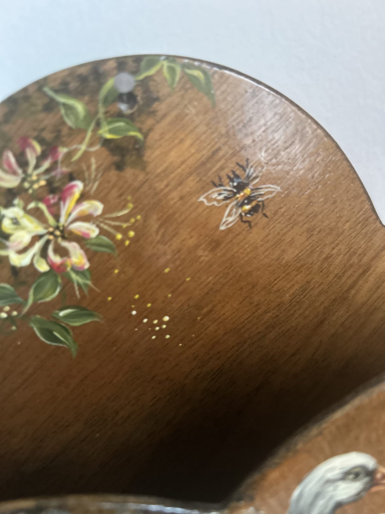 Ce modèle est typique des objets utilitaires décoratifs du tout début du XXᵉ siècle, autour de 1900, période où le bois peint était très utilisé pour les accessoires domestiques.