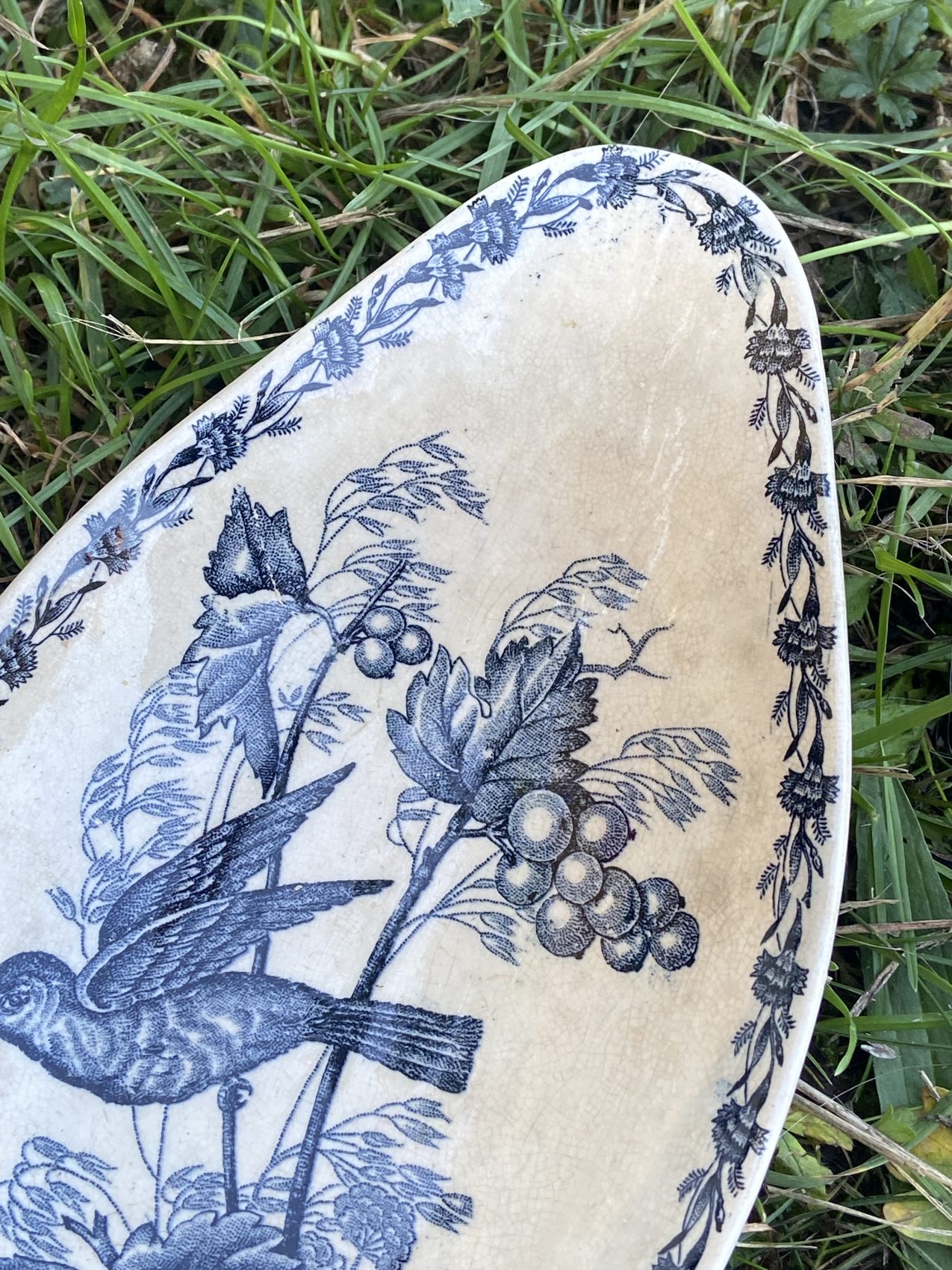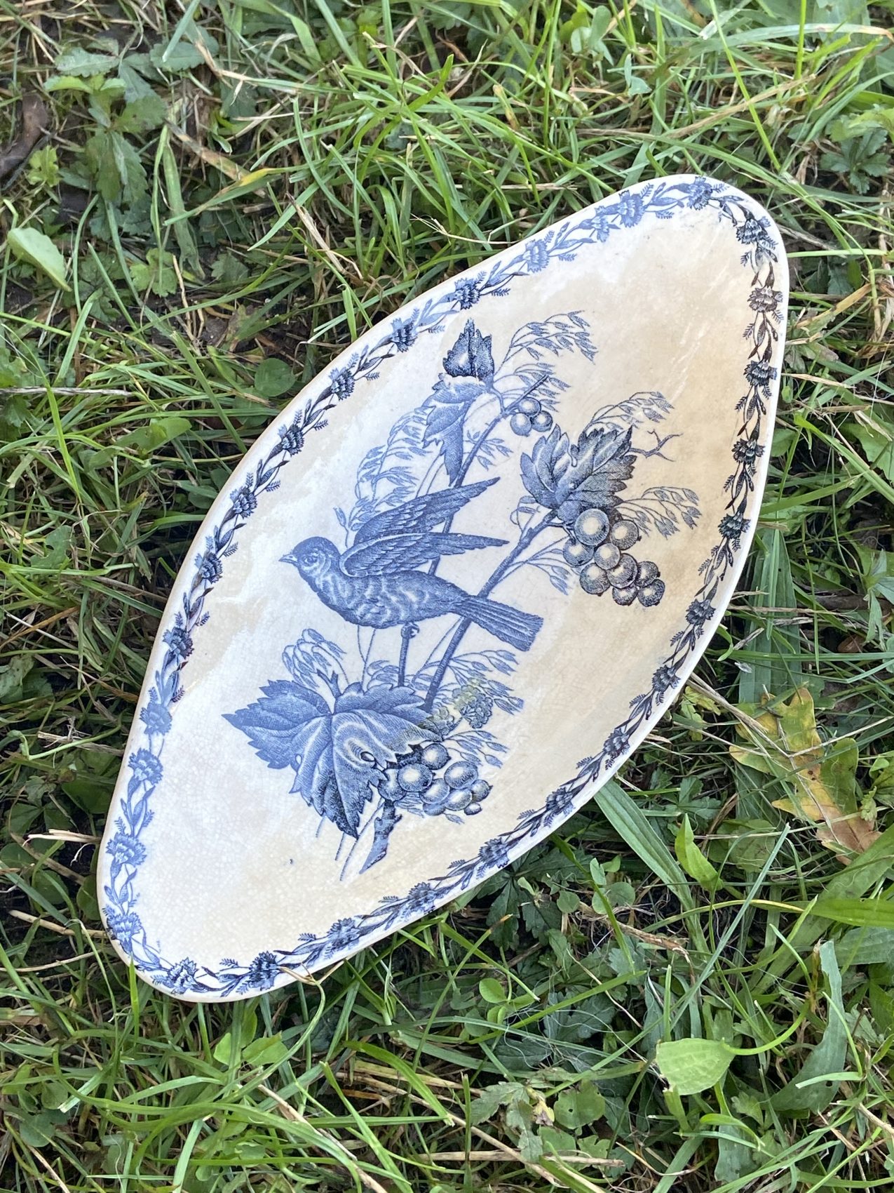 J’aime beaucoup le décor bucolique de ce ravier, avec son petit oiseau et son ambiance très bucolique propre à la vaisselle du XIXe