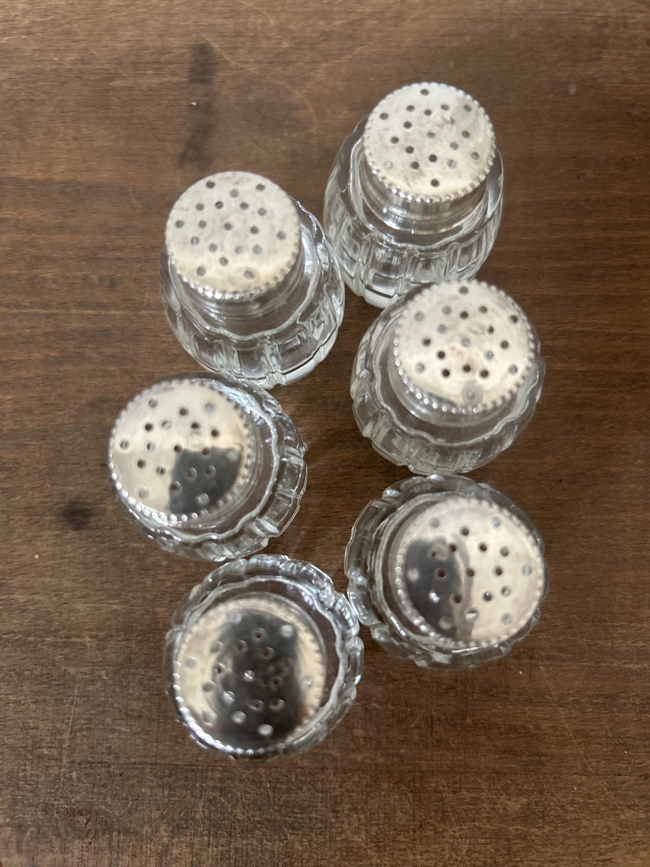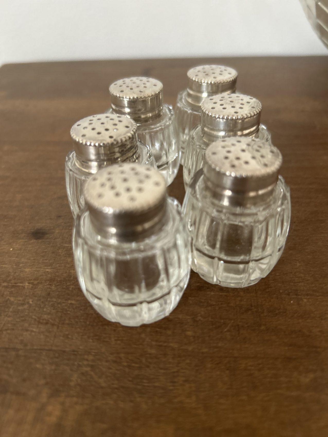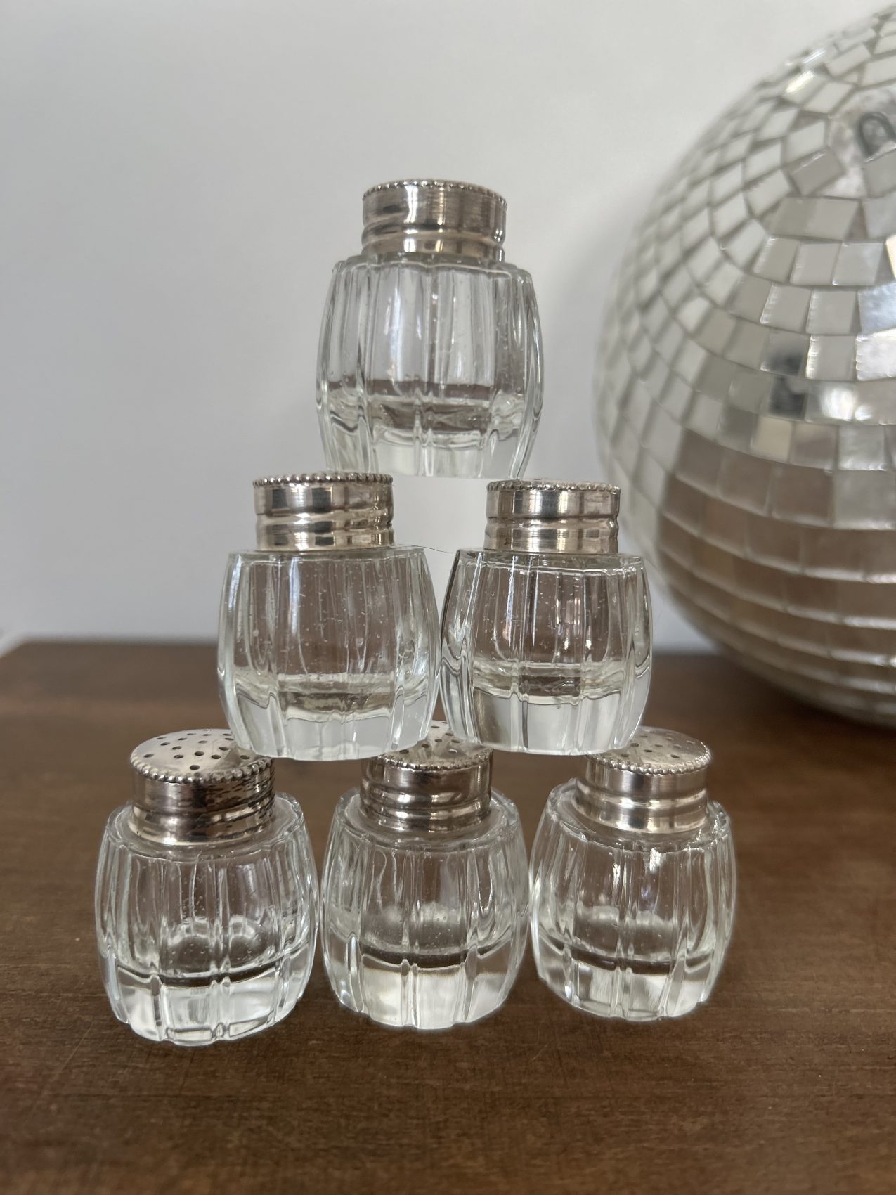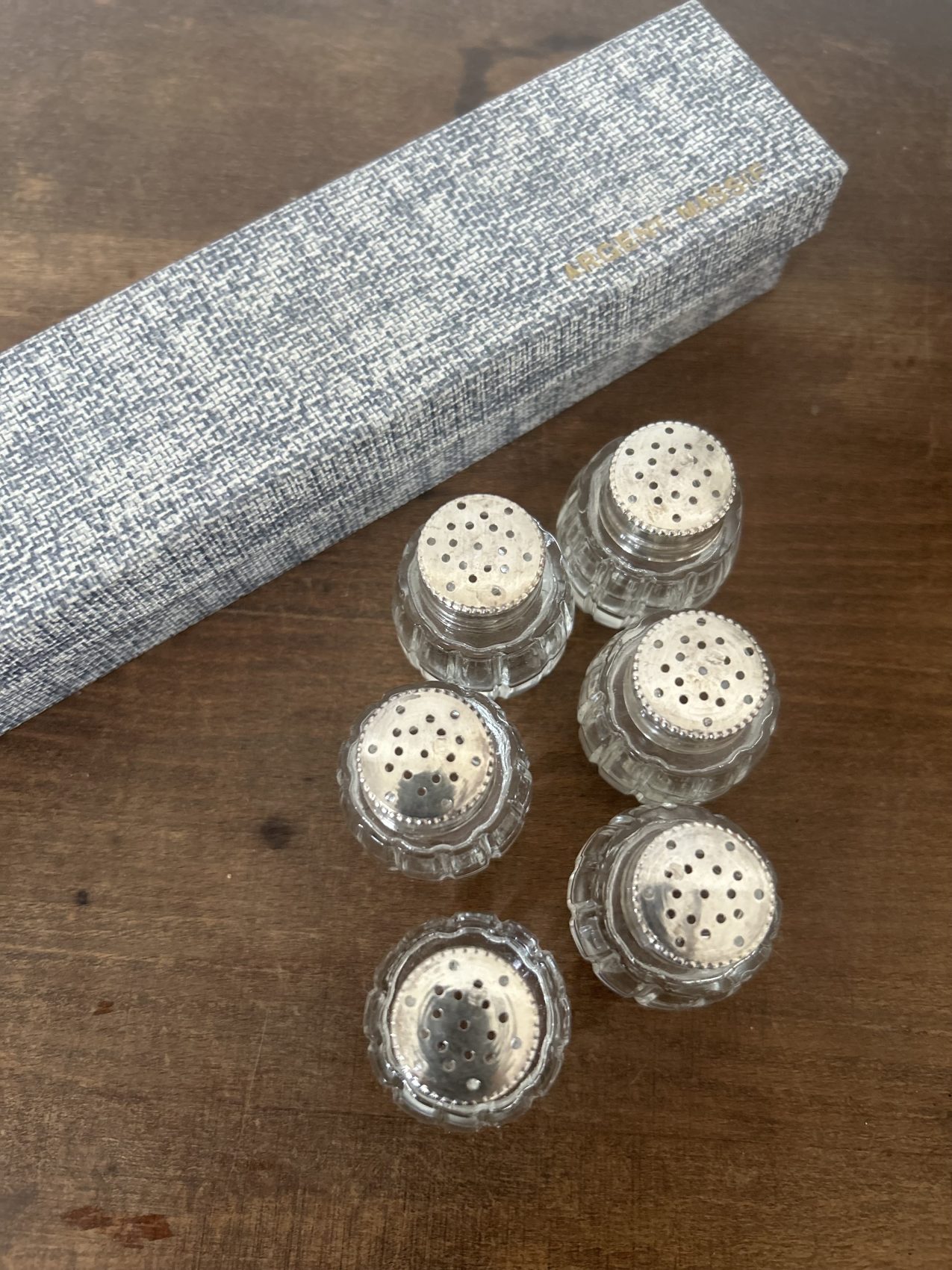Salières et poivrières anciennes en argent massif – Série de 6 (3 paires) le détail qui fait toute la différence