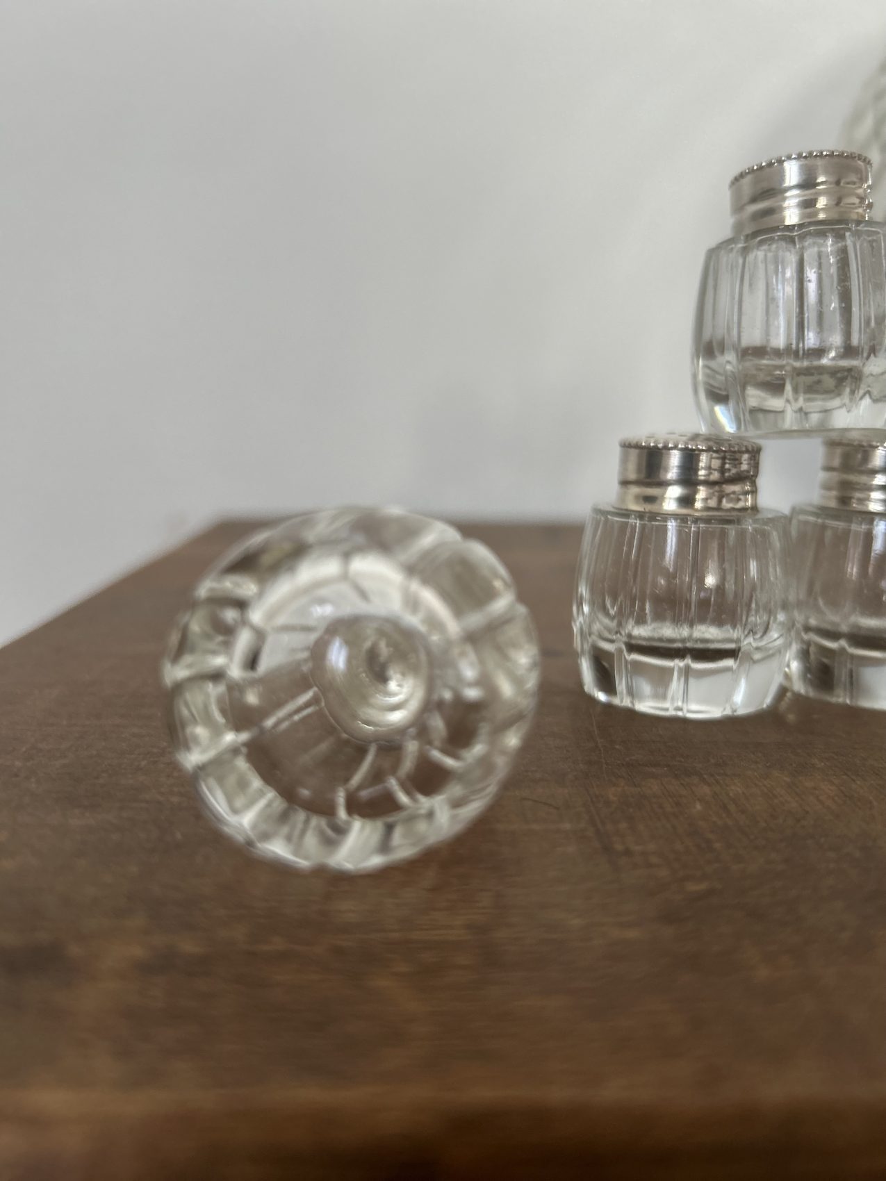 Argent massif, corps en verre – Hauteur 3 cm – Diamètre 2 cm elles sont livrées dans leur boîte d’origine