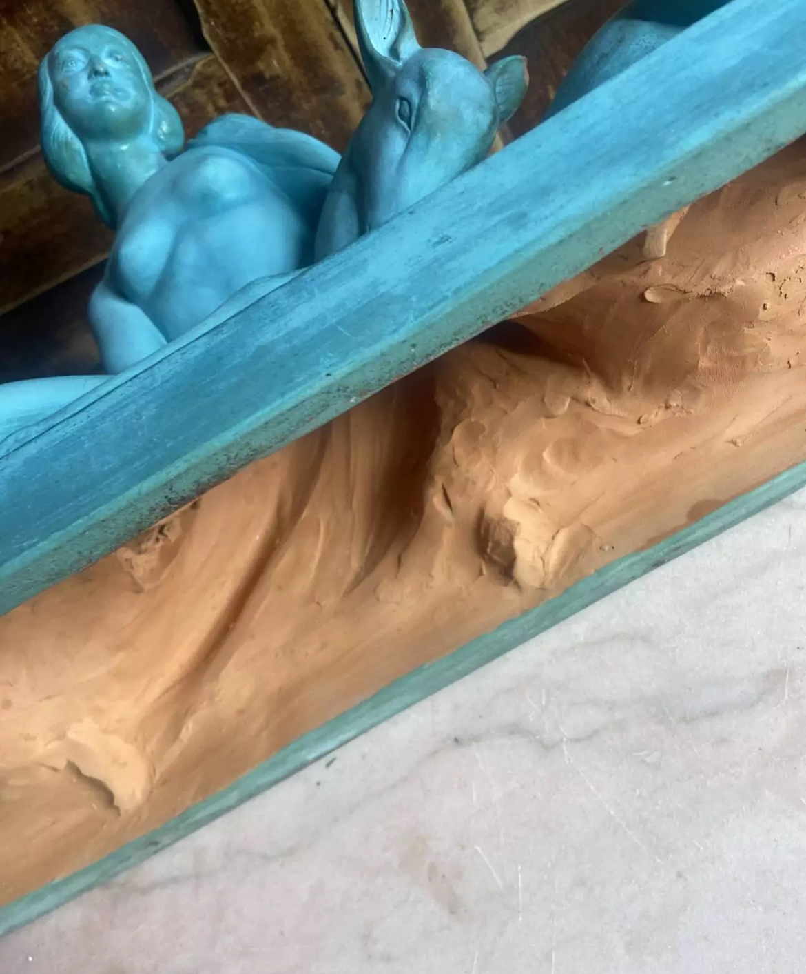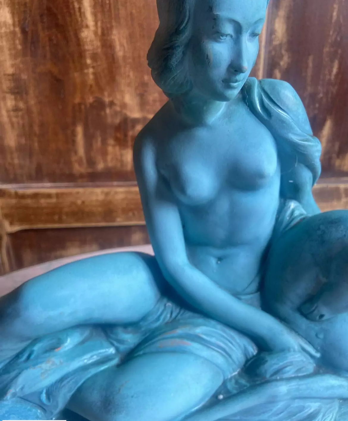 J’aime cette sculpture à la fois classique et atypique avec une patine turquoise aussi lumineuse… c’est un très joli choix par le thème et la qualité d’exécution.
