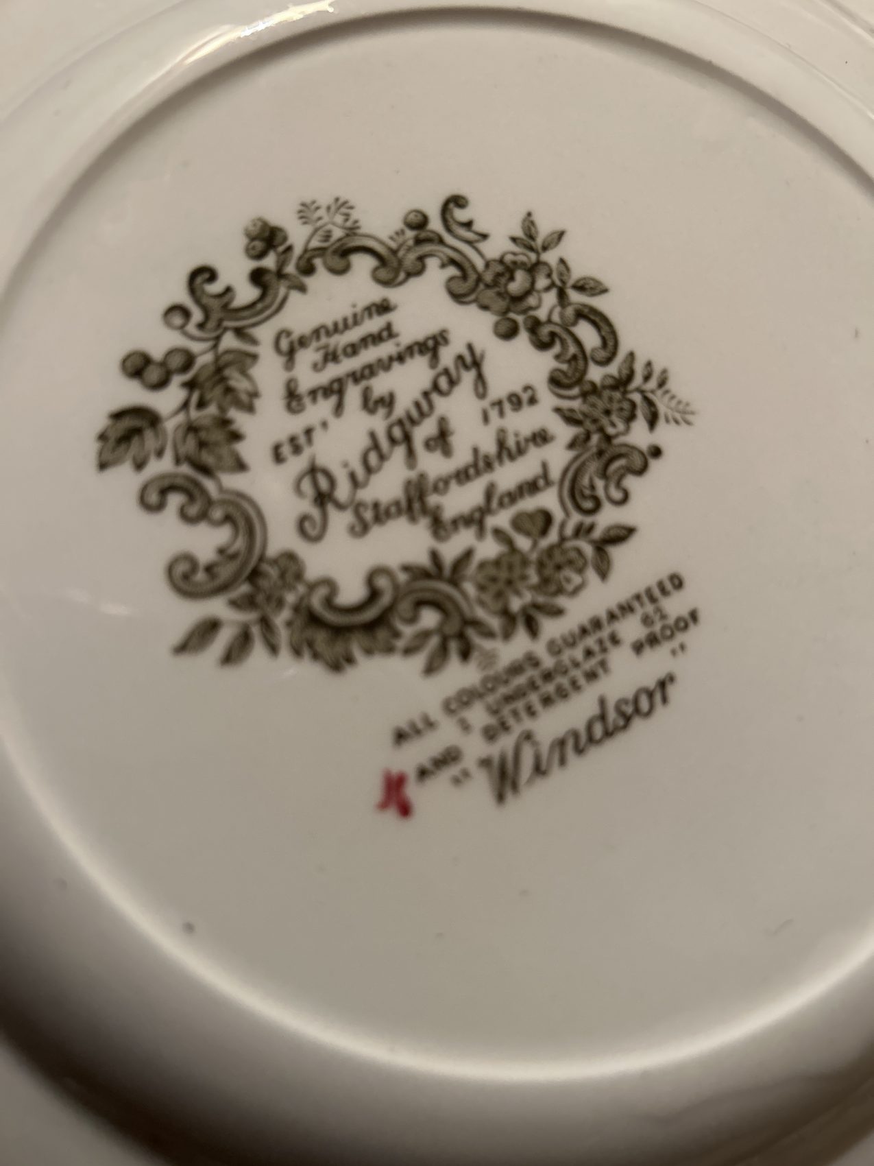 Genuine hand engraving by Ridgway – Staffordshire – England – Est. 1792 – Windsor.