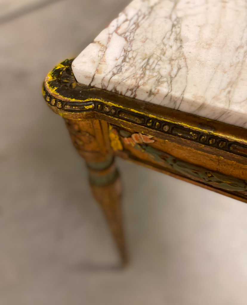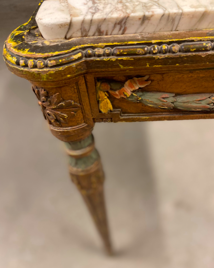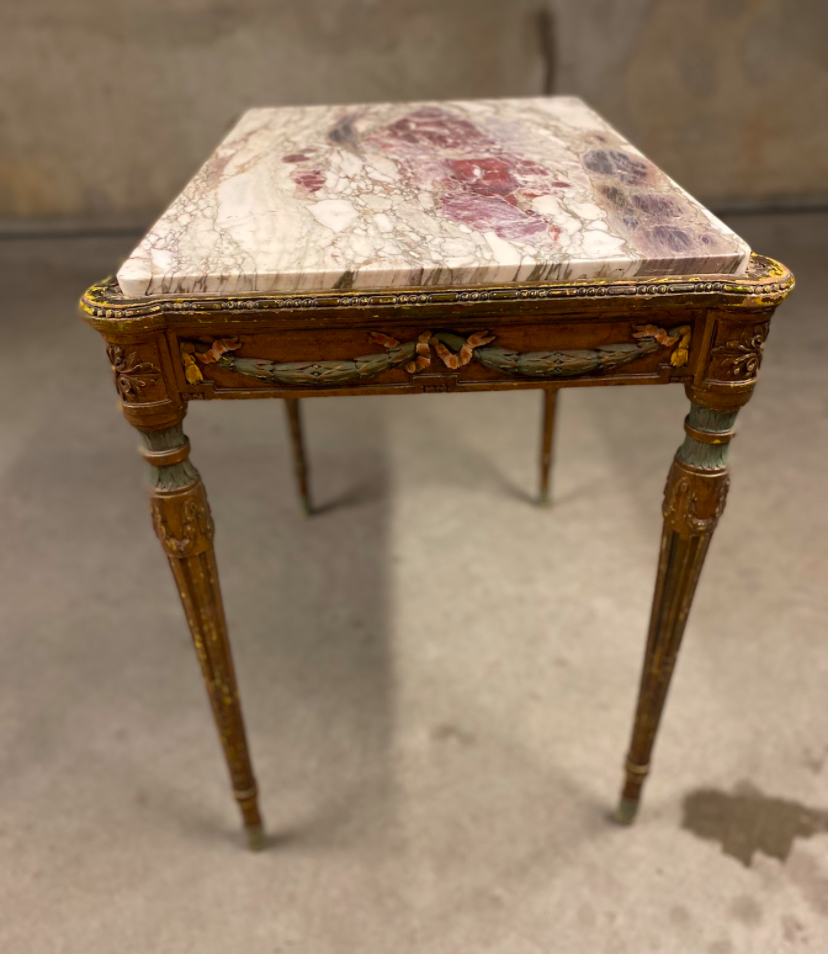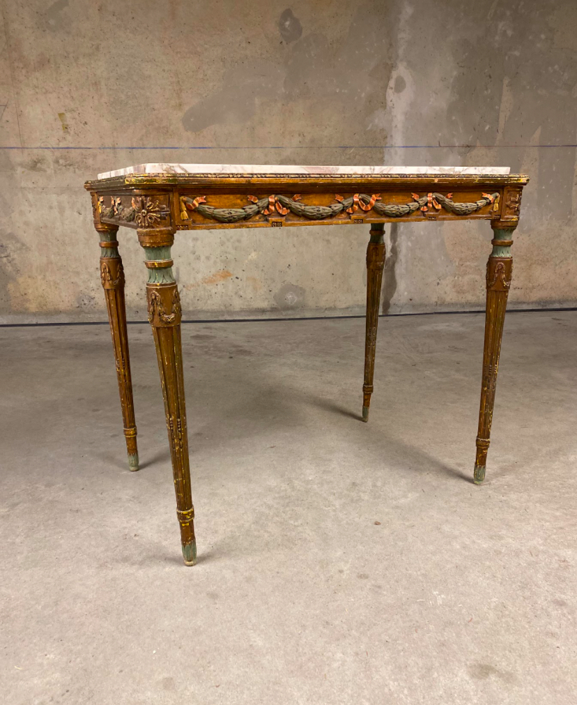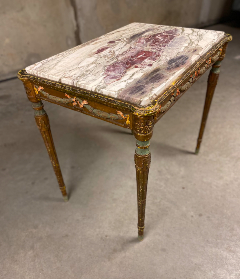 Table de milieu ancienne de style Louis XVI – Époque 1900 Plateau en marbre amovible