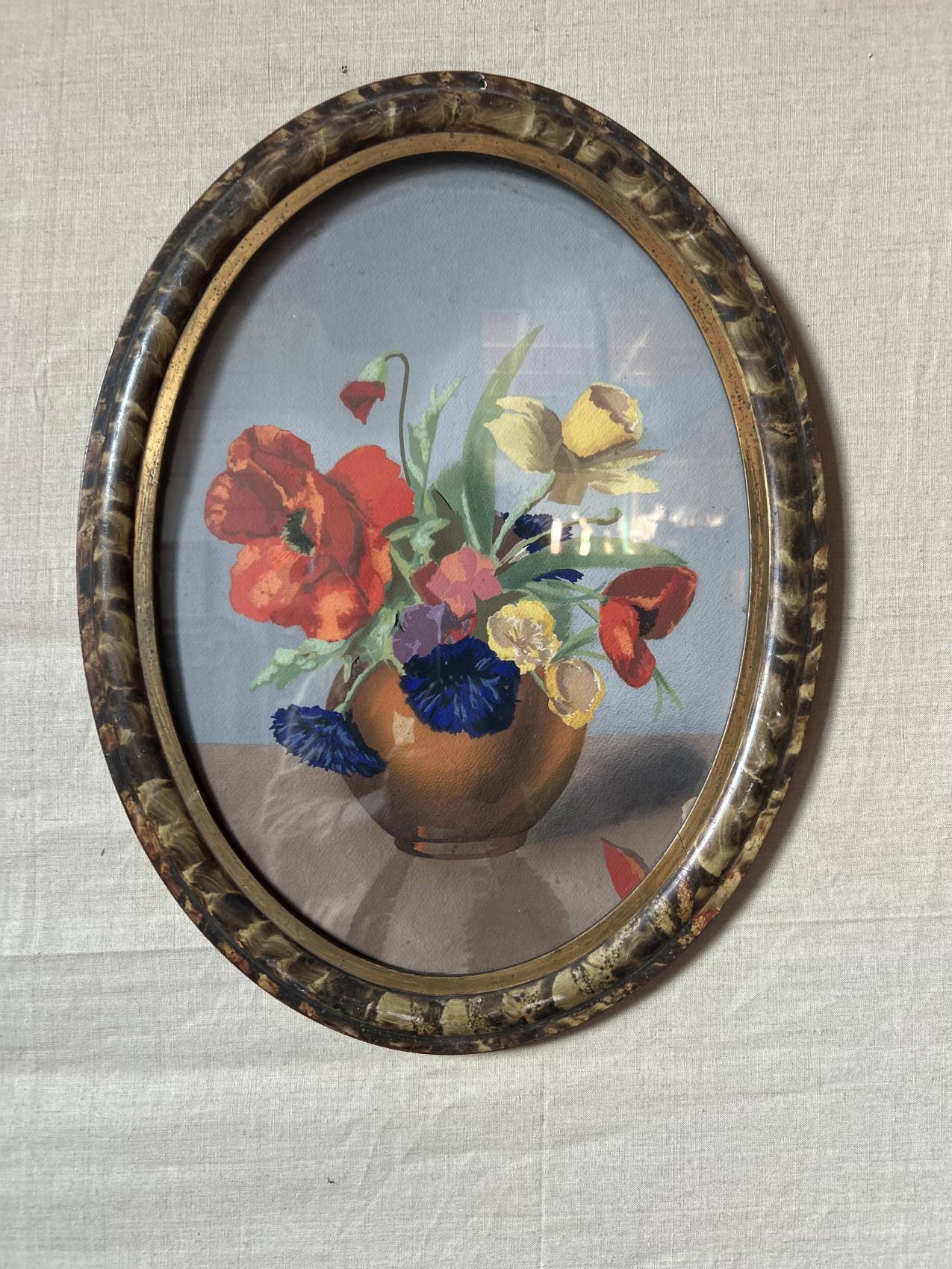 Oui, la lithographie date du milieu du XXe siècle et le cadre est encore plus ancien. L’ensemble est cohérent et harmonieux.