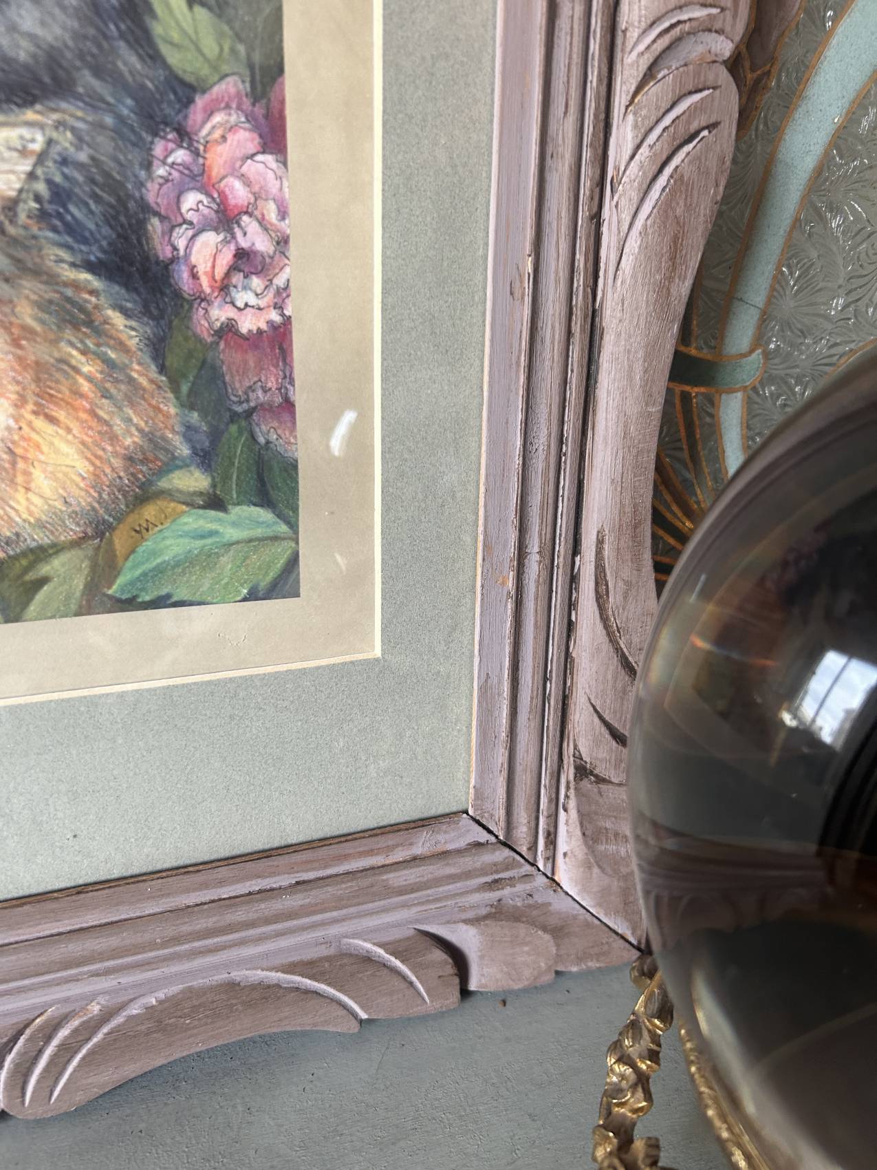 L’encadrement est plus ancien que l’œuvre, ce qui crée un contraste assez réussi.
