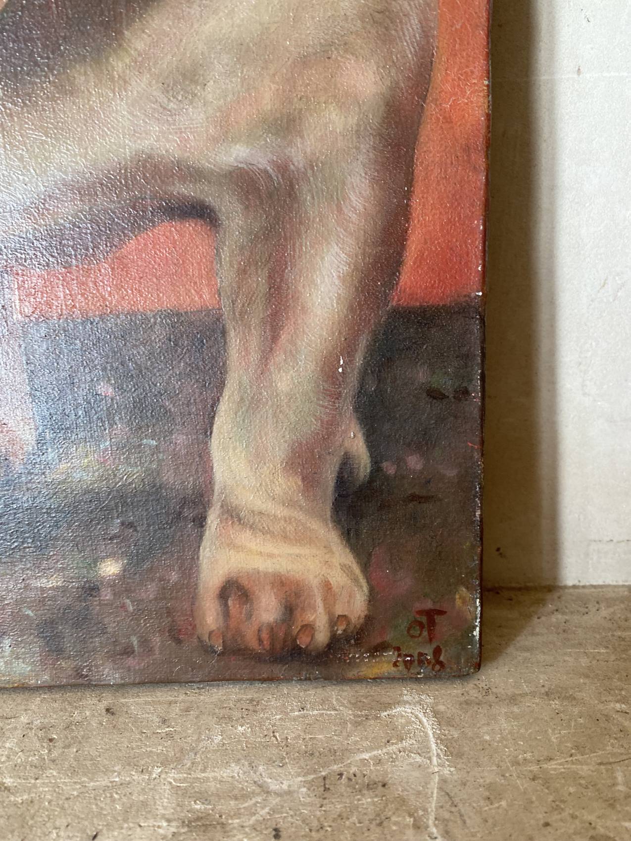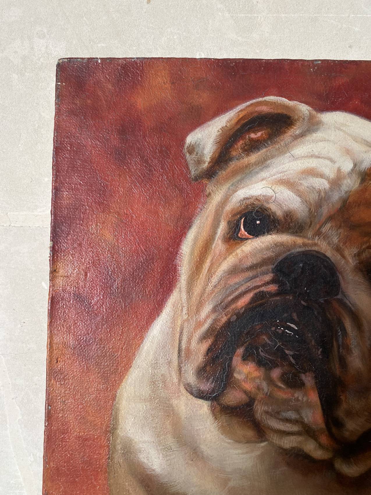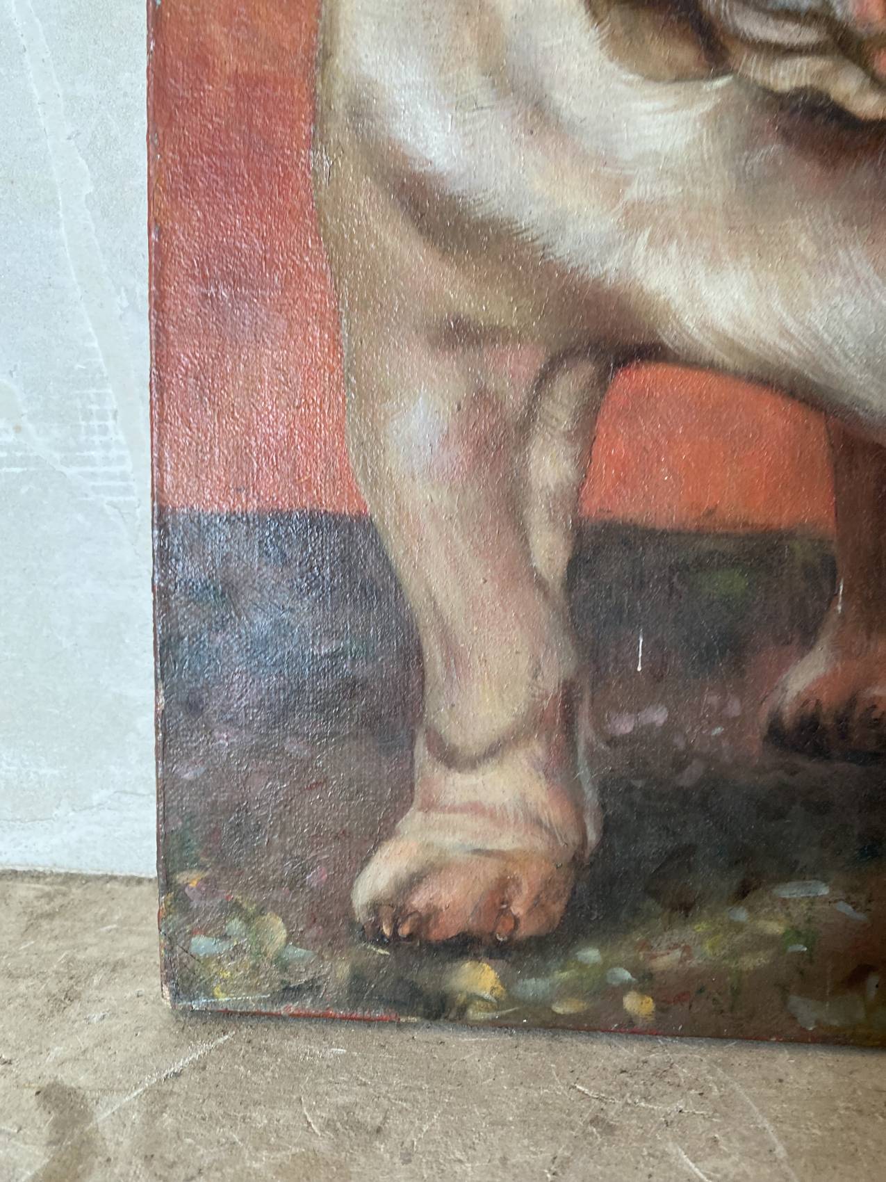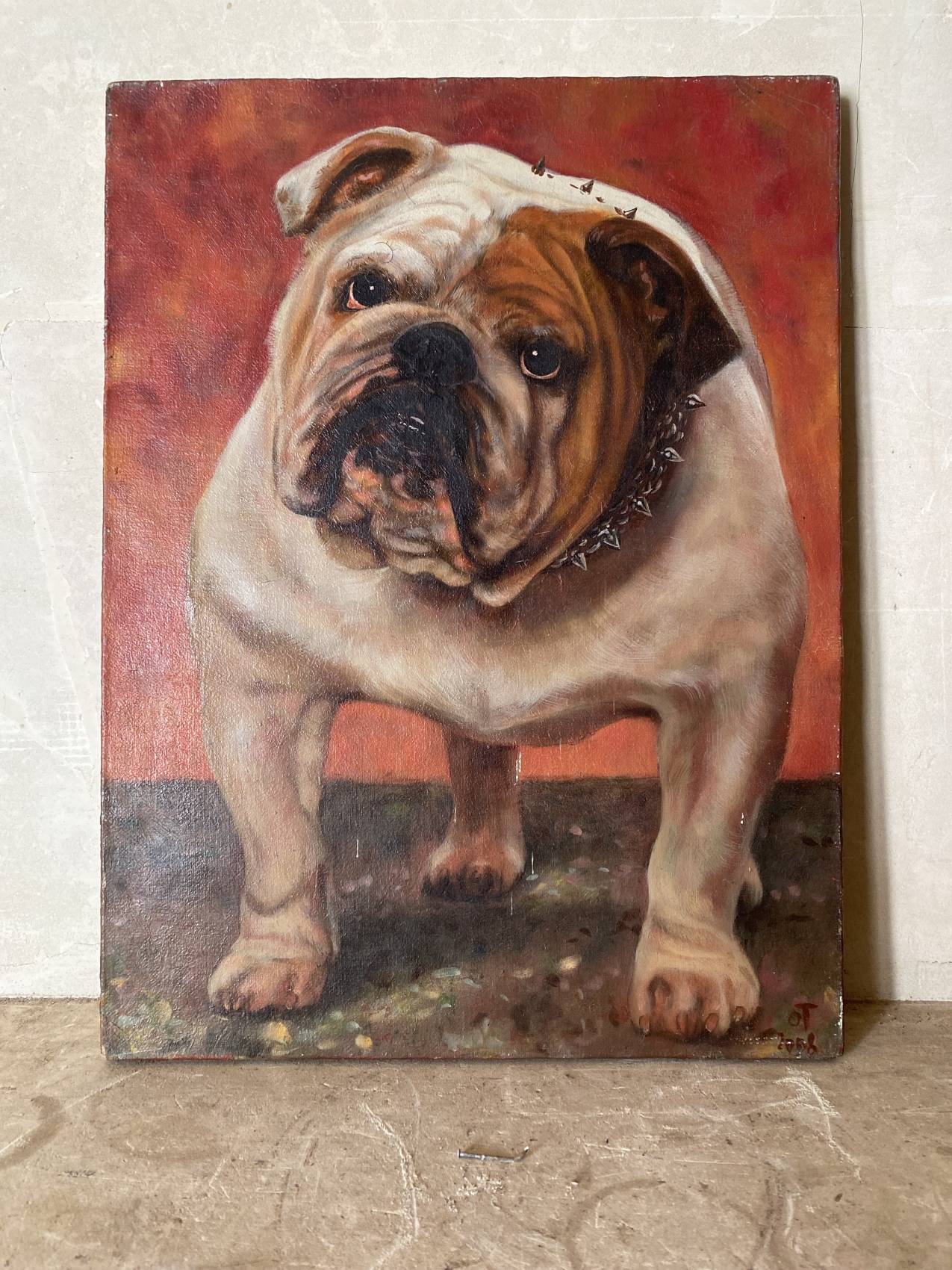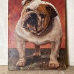 Amoureux des chiens et du charme vintage, voici une pièce qui ne laisse pas indifférent. Ce tableau à l’huile représente un imposant bulldog anglais ,le regard aussi attendrissant qu’autoritaire.