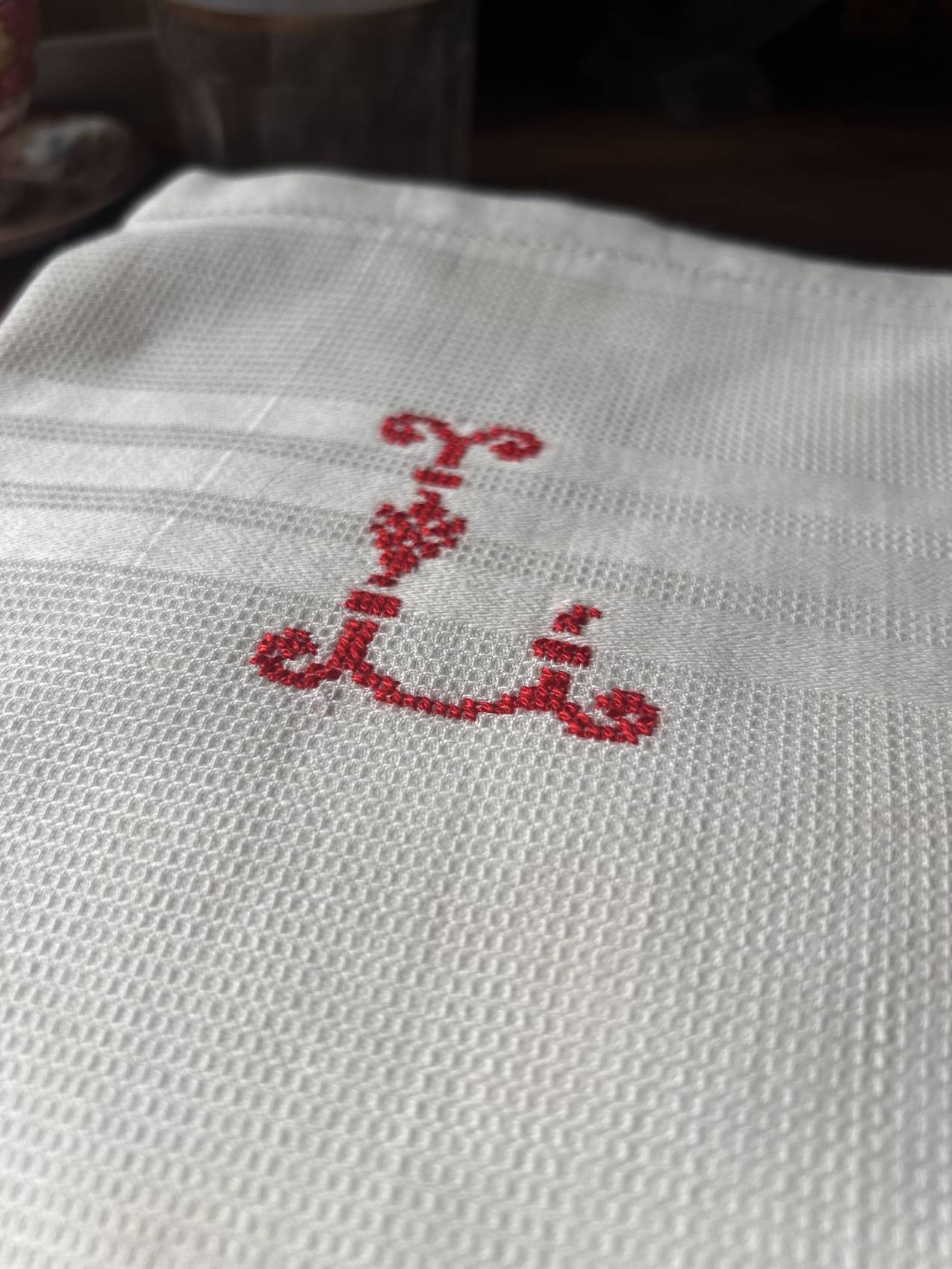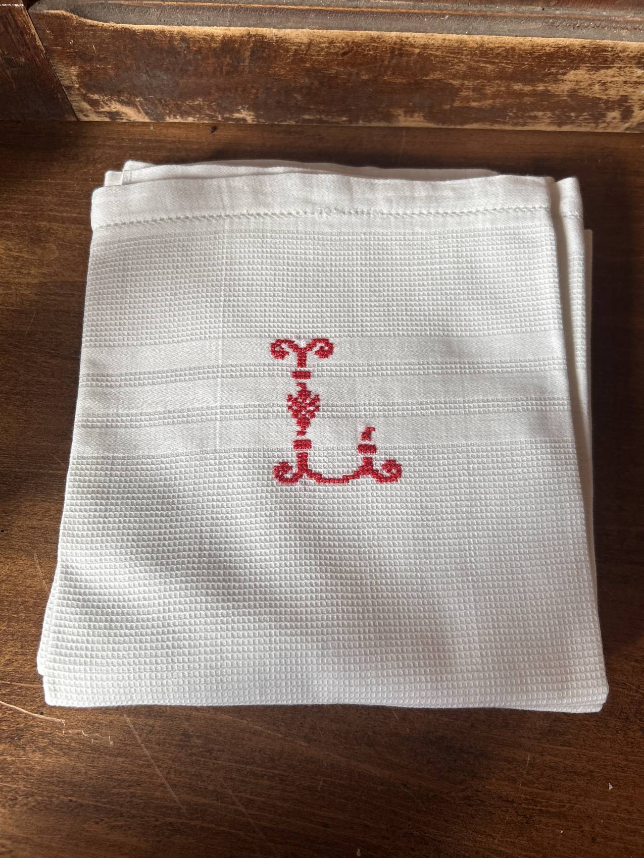 - Monogramme L brodé au point de croix