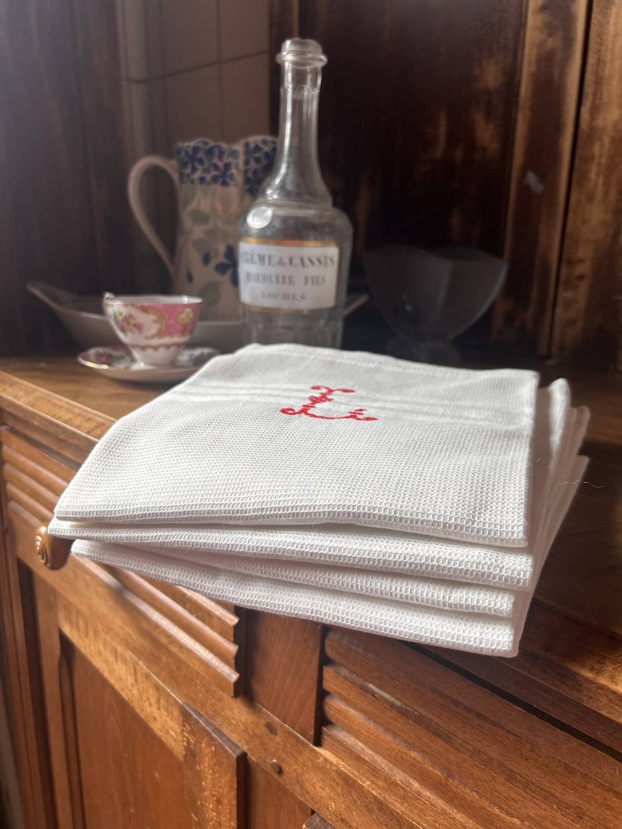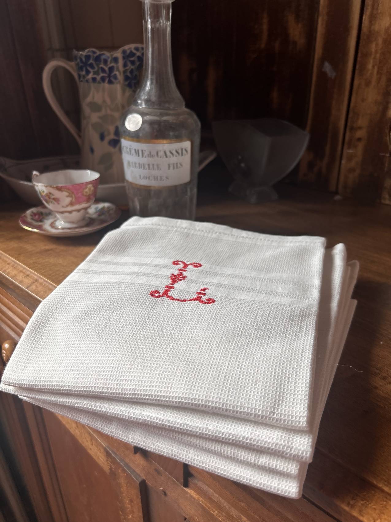 Lot de 4 torchons en lin ancien – linge de maison authentique et intemporel