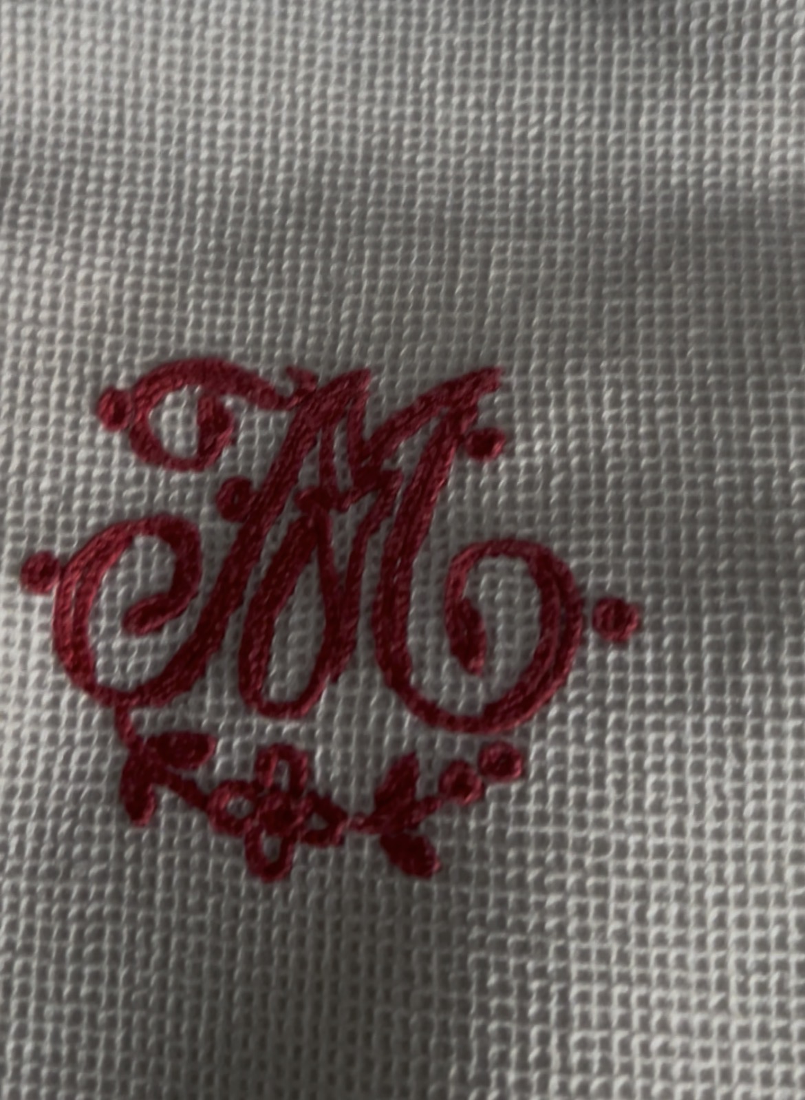 - Monogramme : lettre M brodée à la main