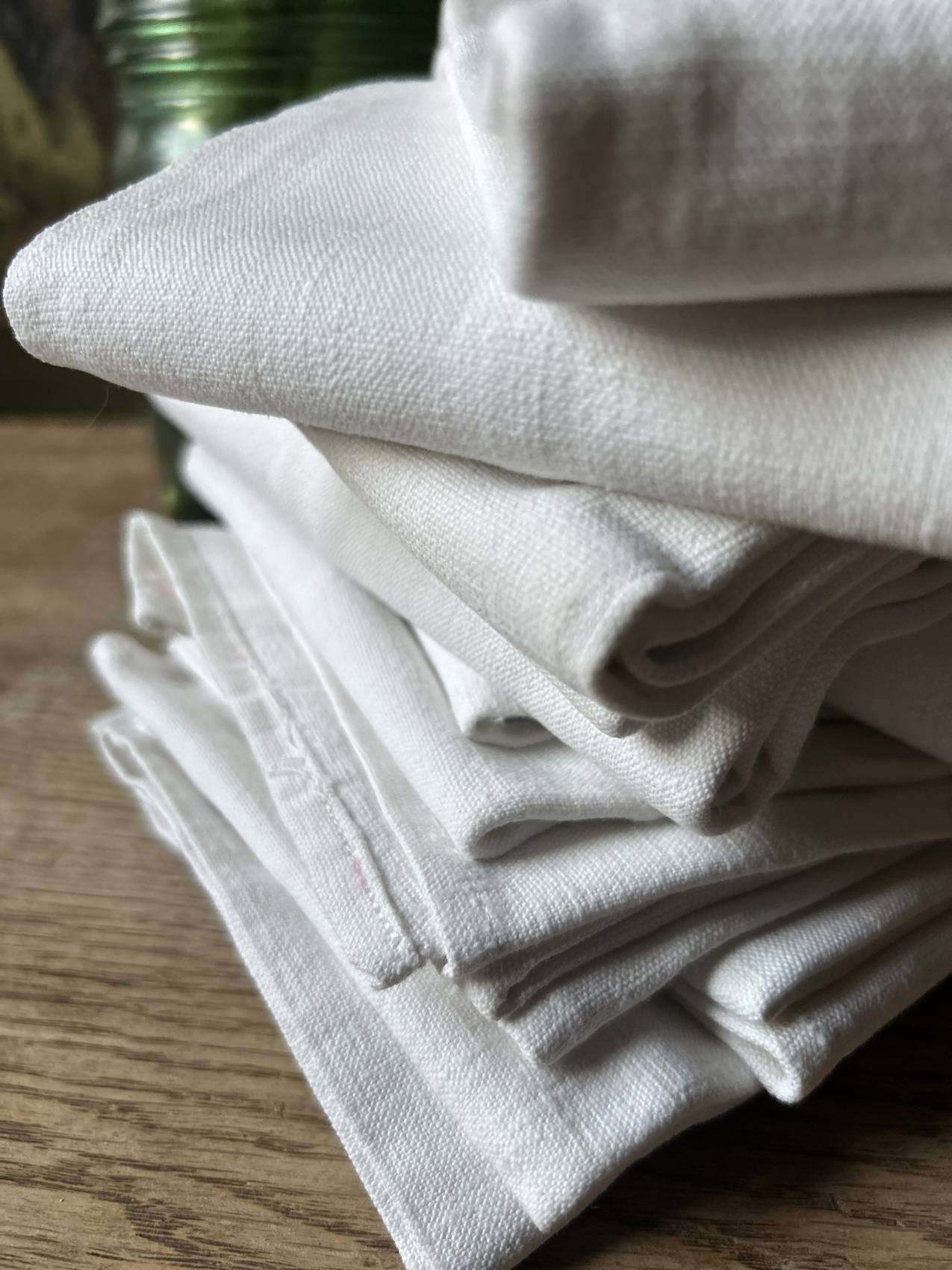 Lot de 4 torchons en lin ancien – linge de maison authentique et intemporel