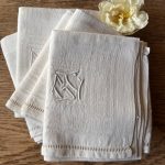 Serviettes de table anciennes en coton mercerisé brodé à la main – lot de 6 – monogrammes anciens – linge de maison début XXe siècle