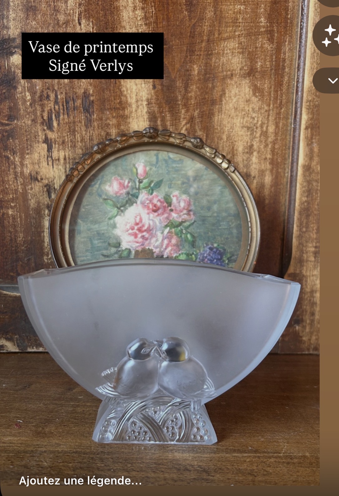 Petit vase Verlys en pâte de verre – décor oiseaux, Epoque art déco