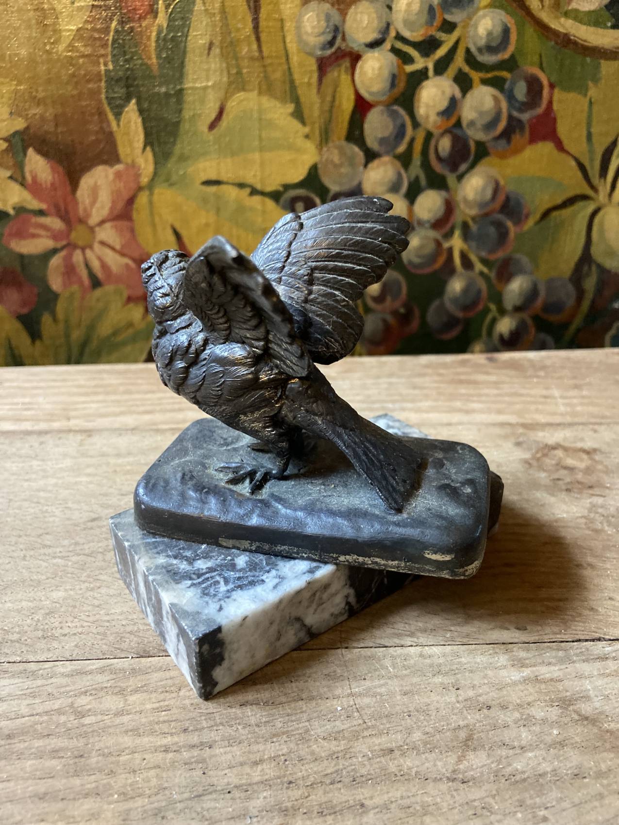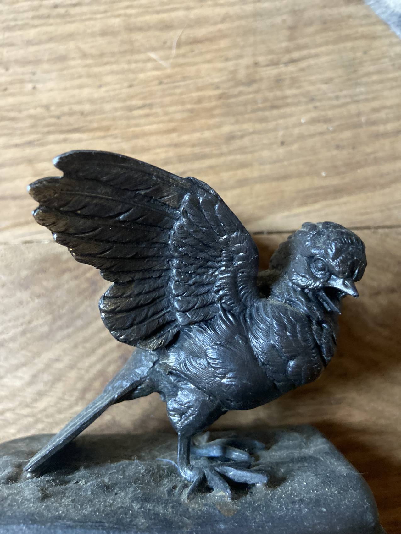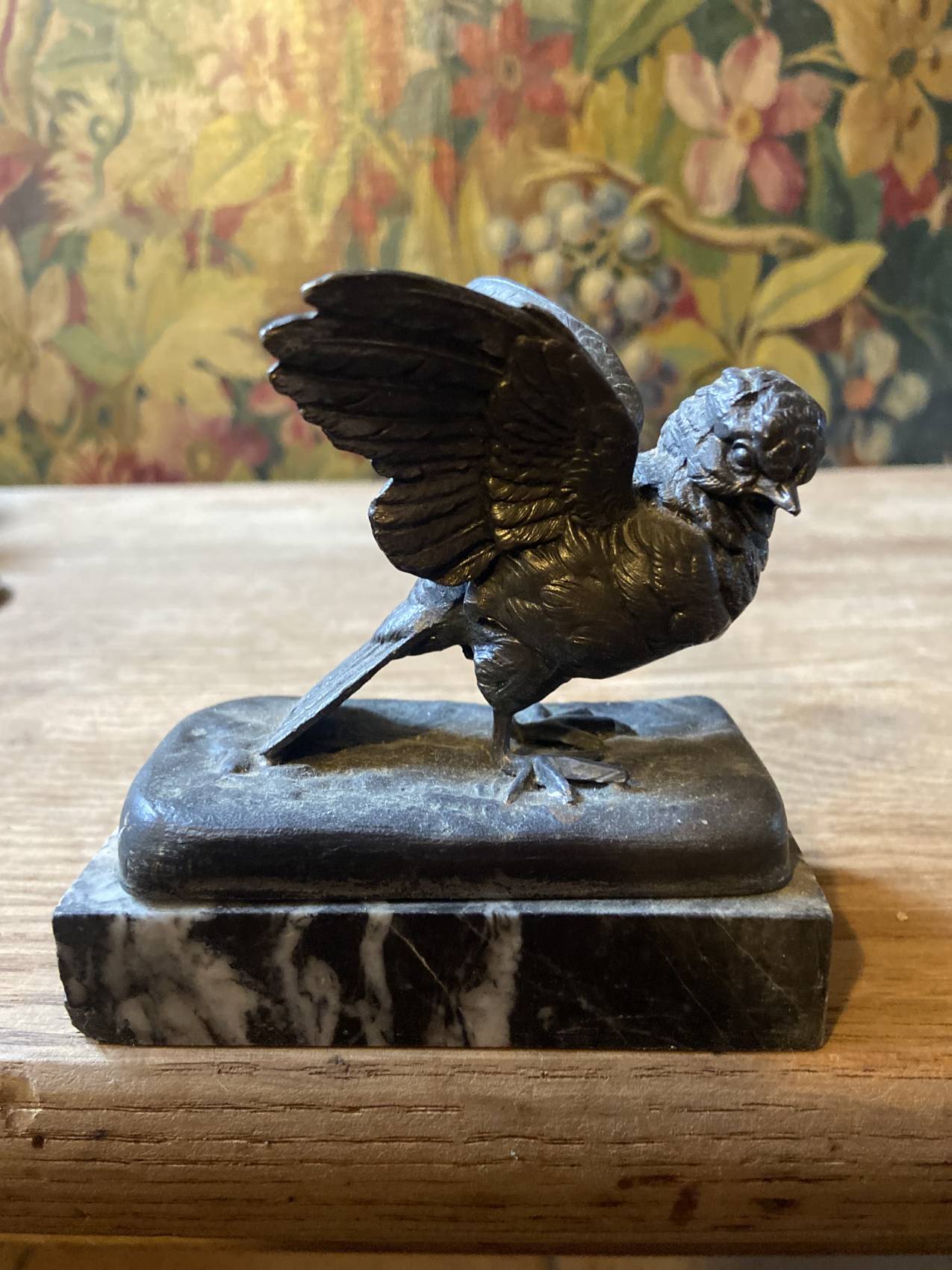 Sculpture en régule époque 1900, l’oiseau le moineau