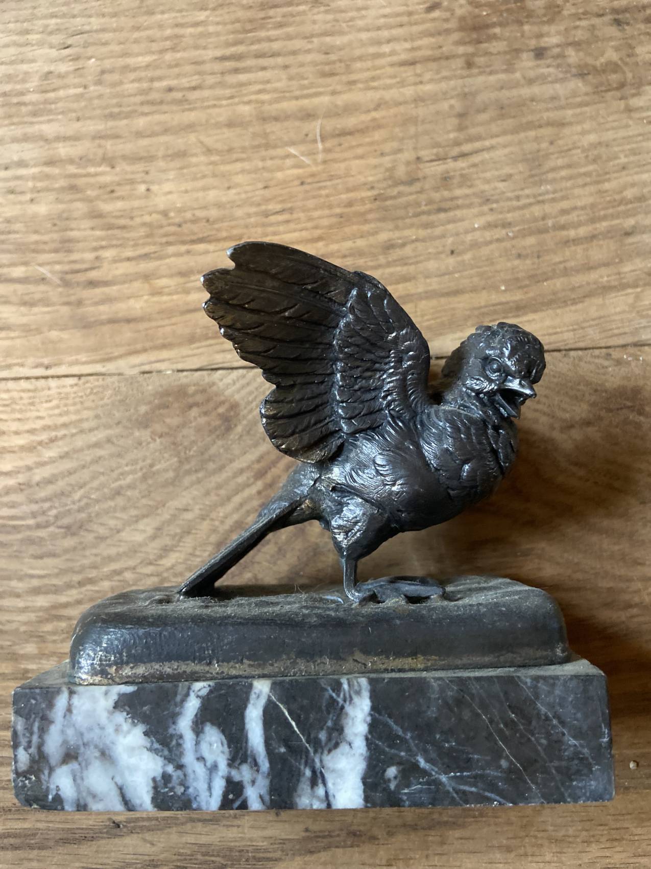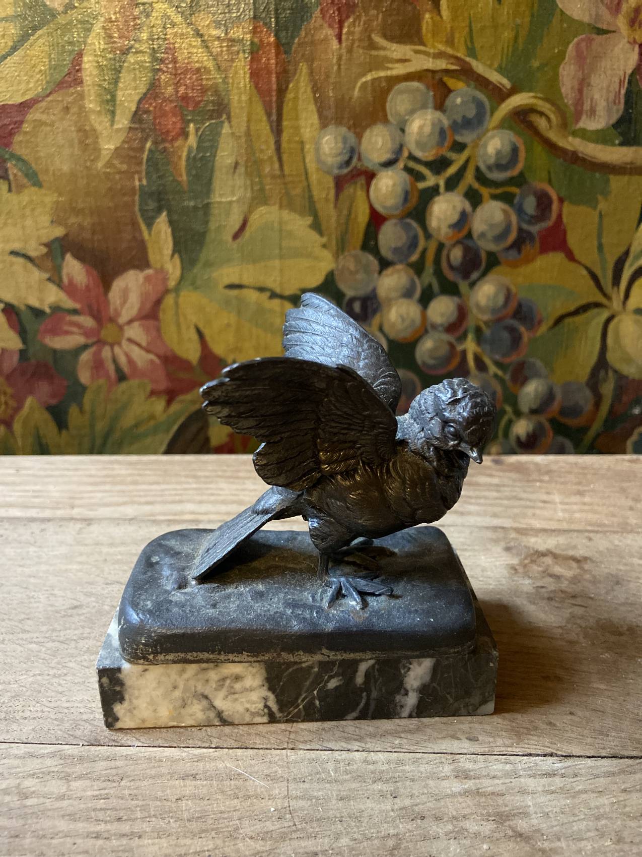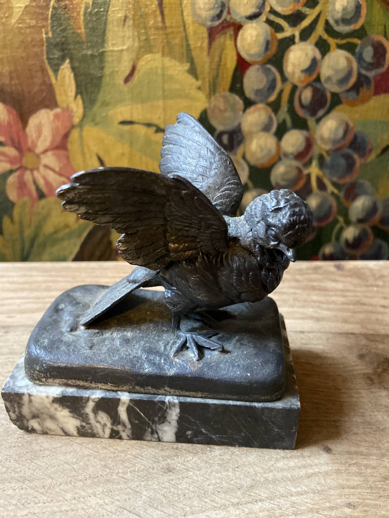 Sculpture en régule époque 1900, l’oiseau le moineau