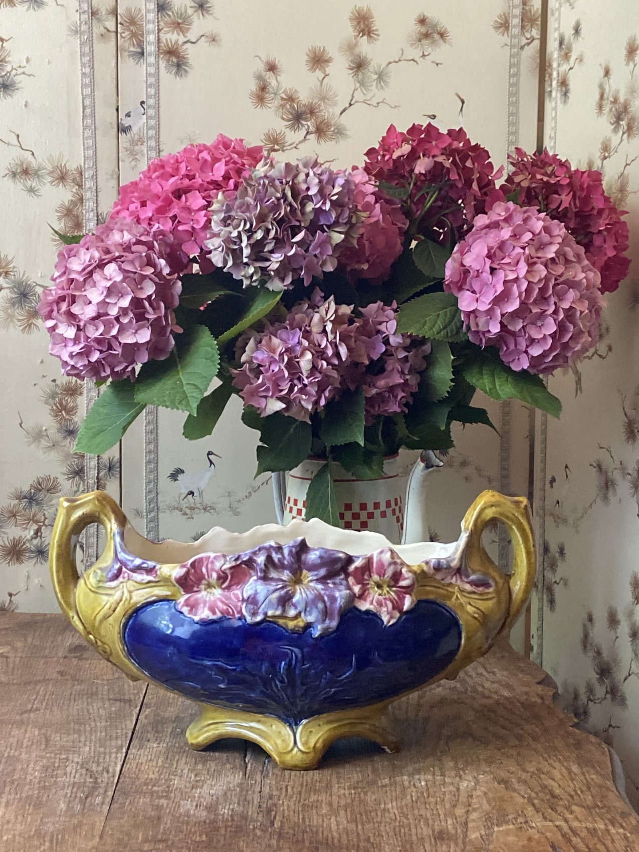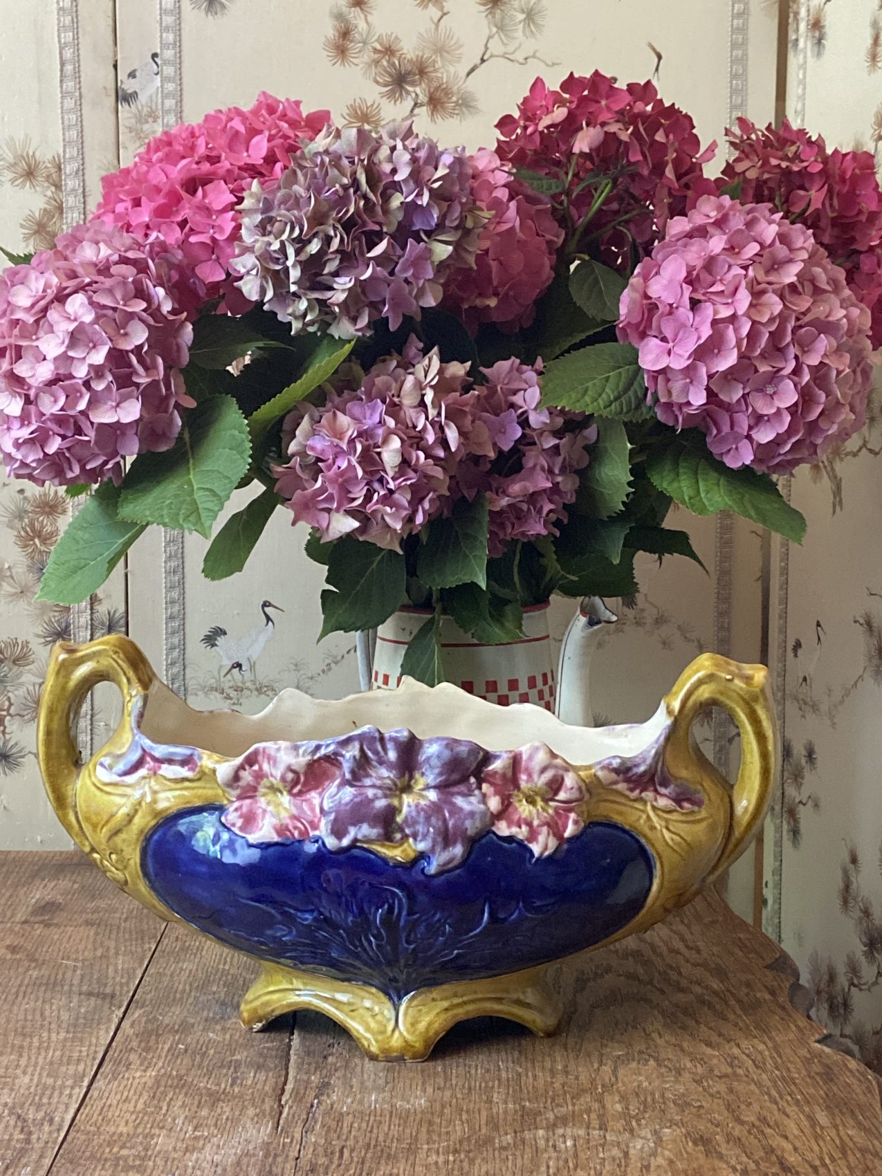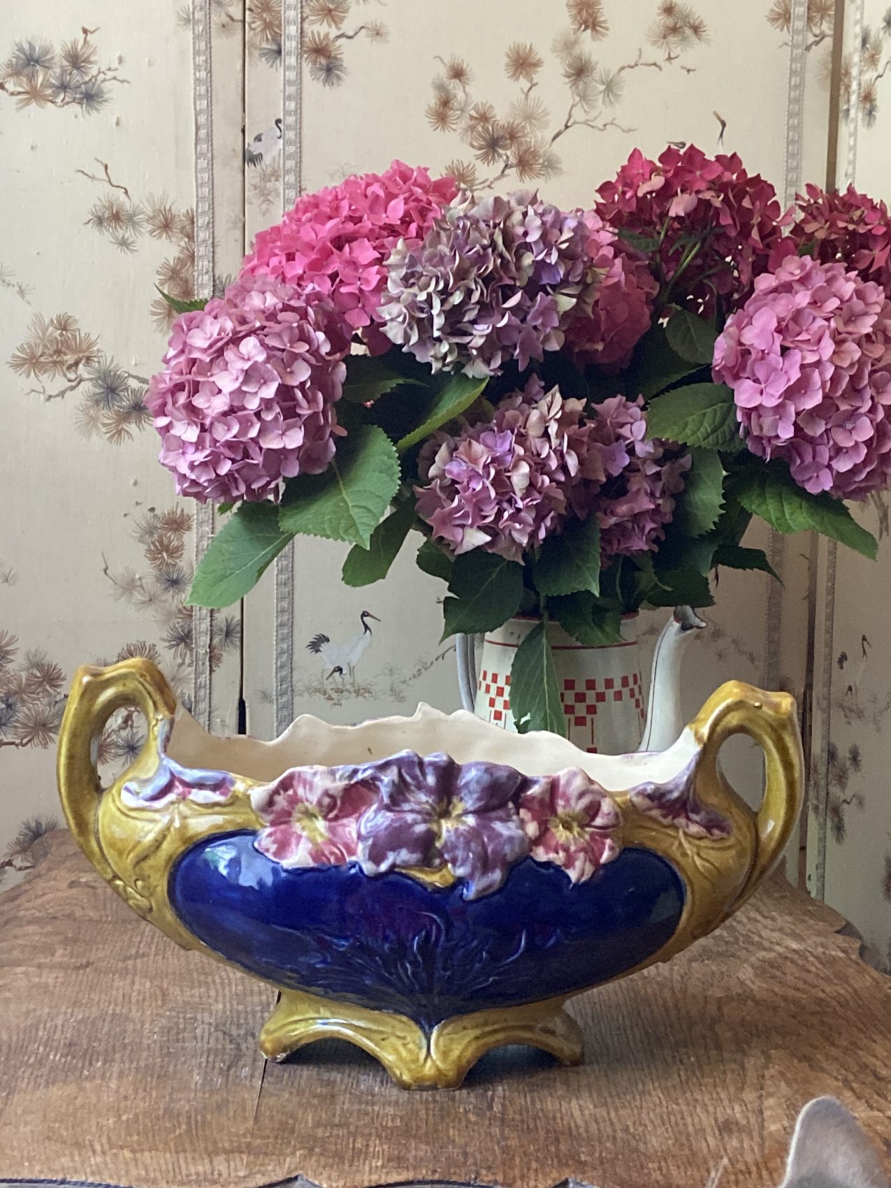Cette jardinière là, c’est un opéra fleuri à elle seule : les couleurs sont subtiles, les reliefs délicats, et il y a ce charme ancien, presque bucolique, qui donne envie de cueillir des pensées sauvages rien que pour la remplir Et puis la signature Francis Masse, ce n’est pas rien : on est sur une pièce de collection, mais sans snobisme. Juste ce qu’il faut de beauté, sans forcer.