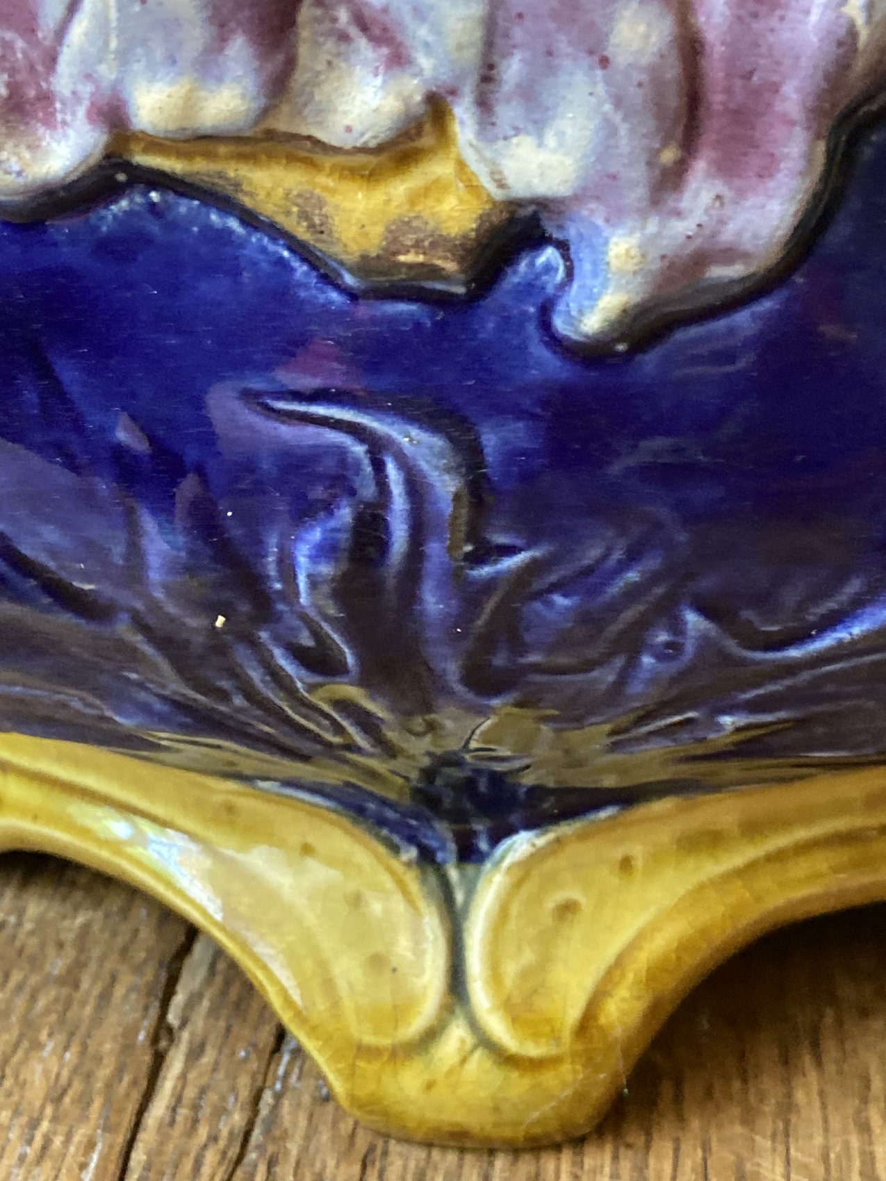 Cette jardinière en barbotine date du tout début du XXe siècle.