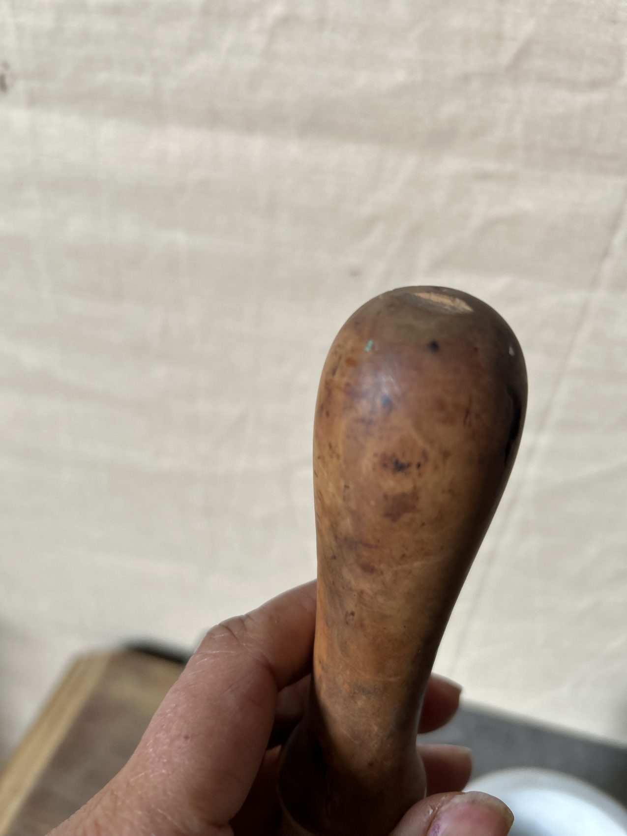 Ce pilon n’est pas parfait, et tant mieux. Il présente les marques du temps qu’il faut, celles qui racontent une vie de travail, sans altérer sa solidité ni son charme. Il est en bel état général, cohérent avec son âge, et conserve une présence forte, aussi bien dans une décoration intérieure que dans une collection d’objets anciens de pharmacie.