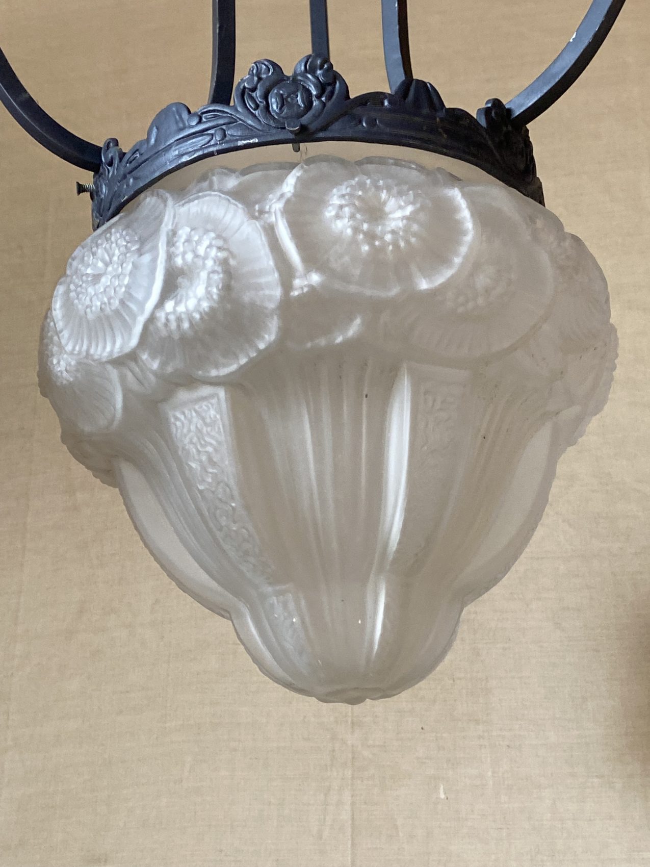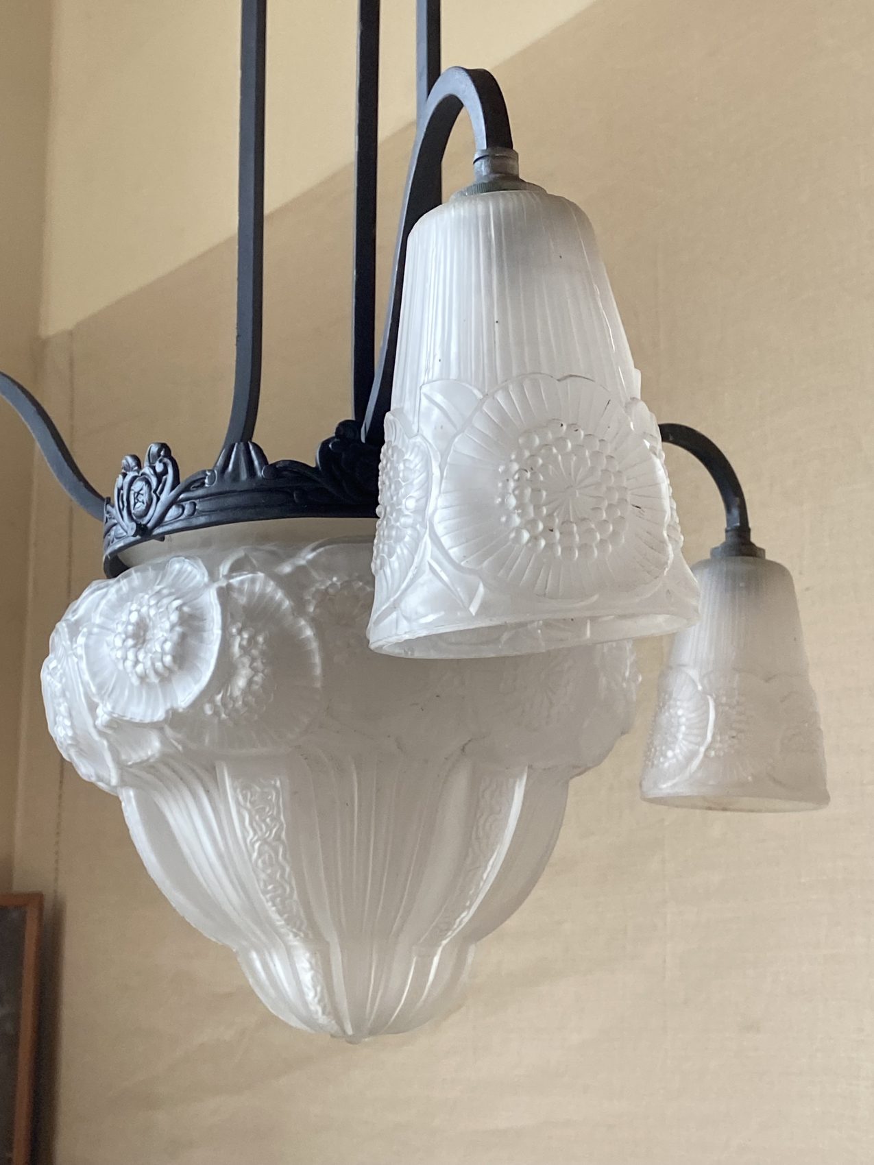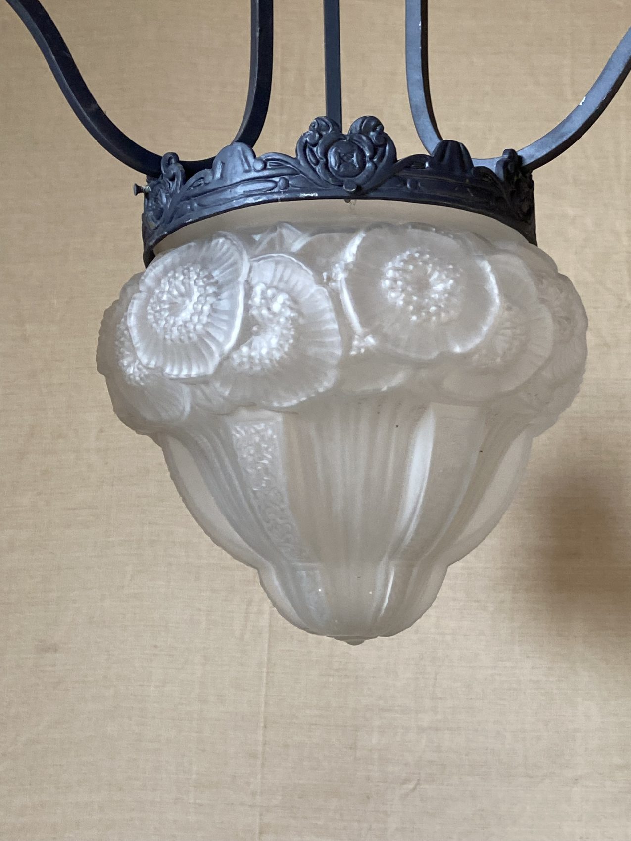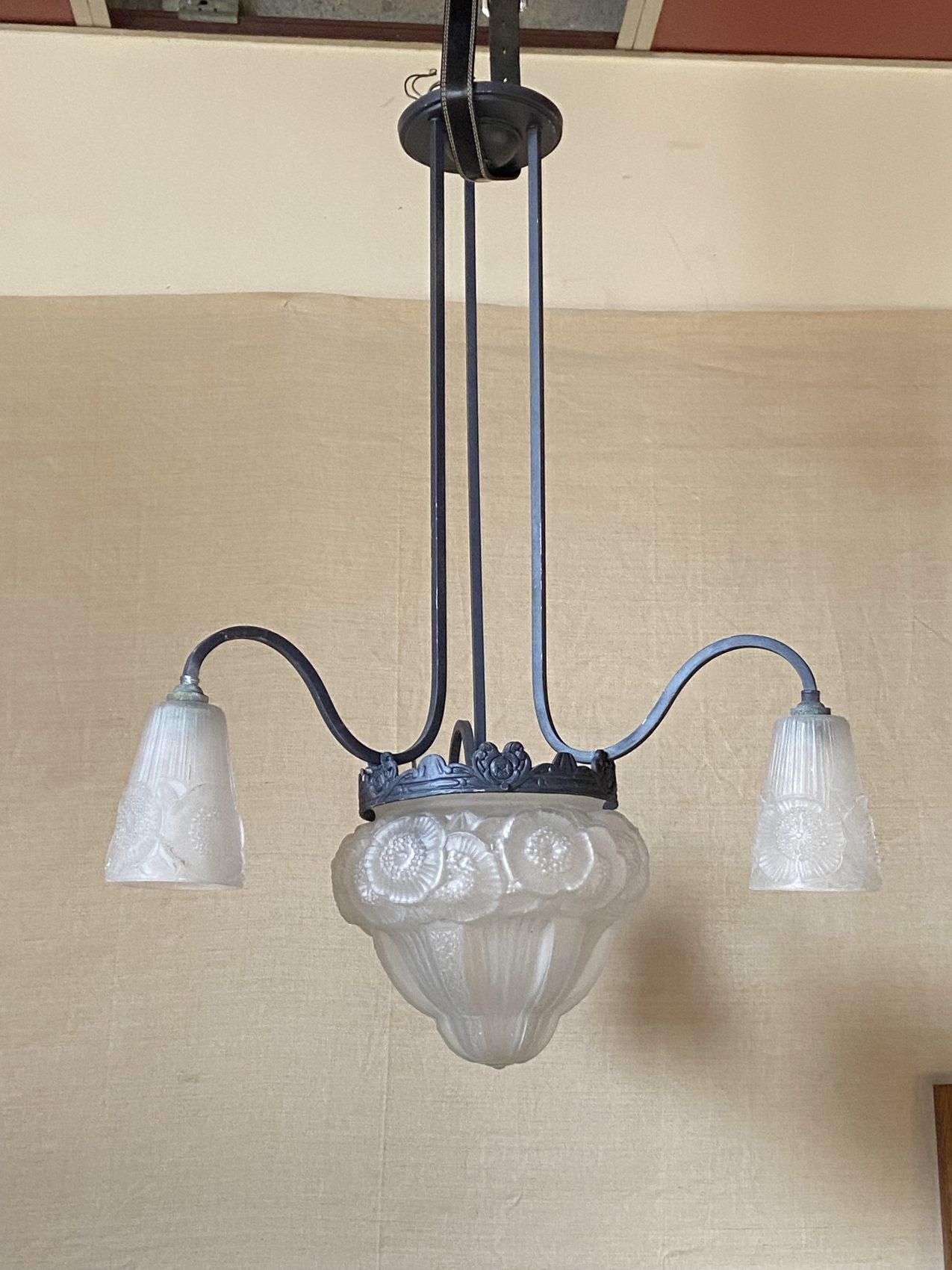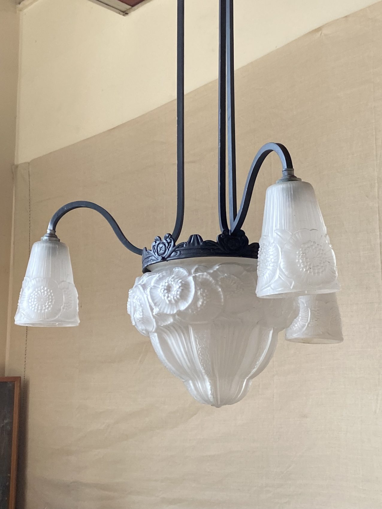 Lustre Art déco – 3 bras de lumière – à motifs de fleurs les anémones