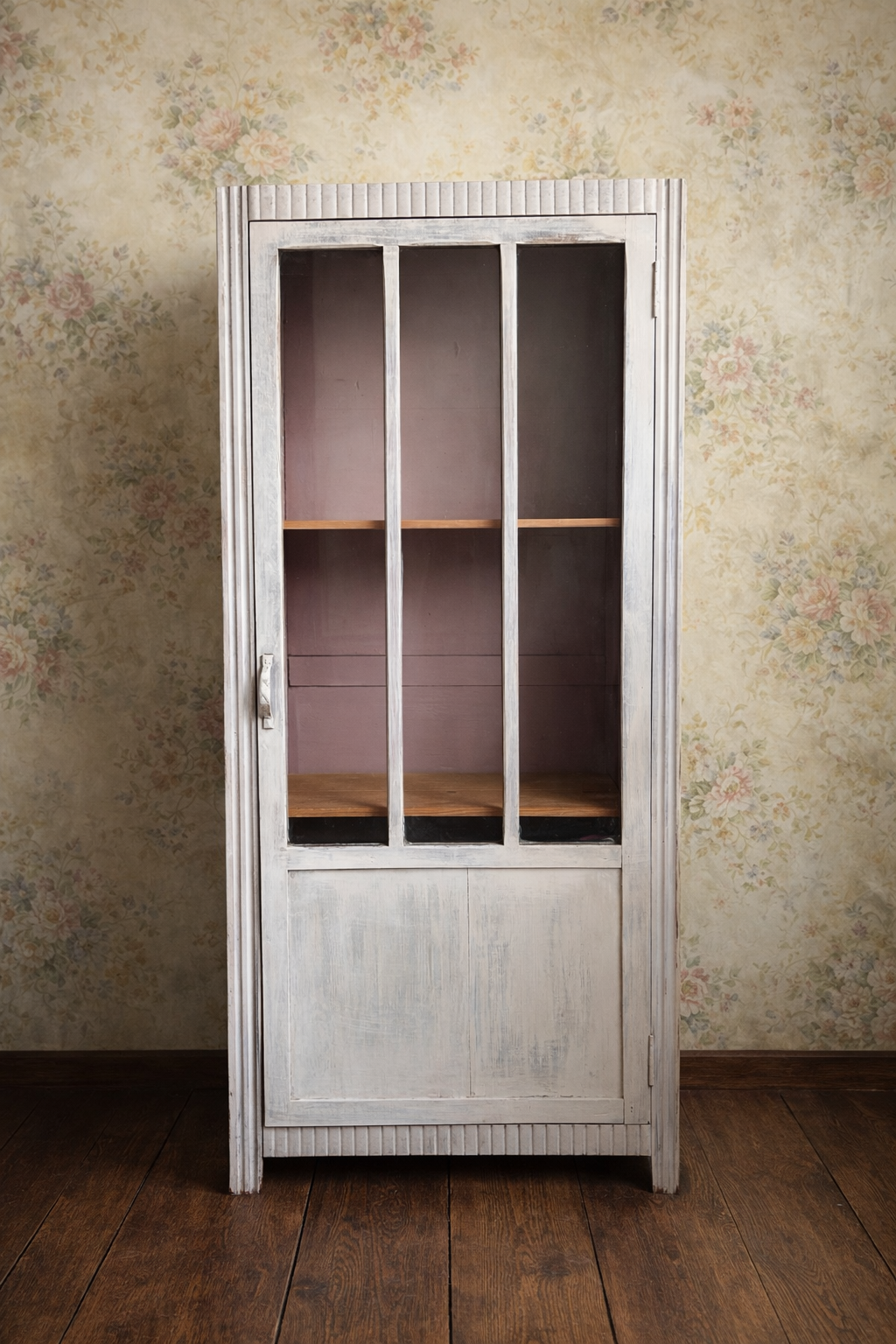 Petite armoire parisienne art déco vitrée patine blanche- un classique intemporel