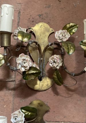 Paire d’appliques murales italiennes années 60 – roses en porcelaine style Capodimonte
