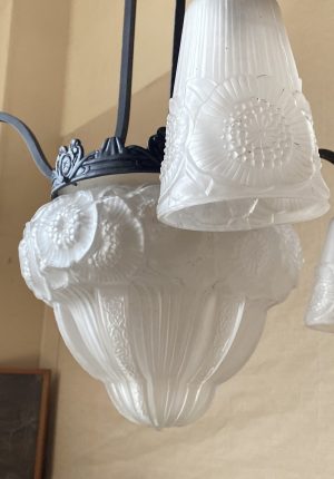 Lustre Art déco – 3 bras de lumière – à motifs de fleurs les anémones