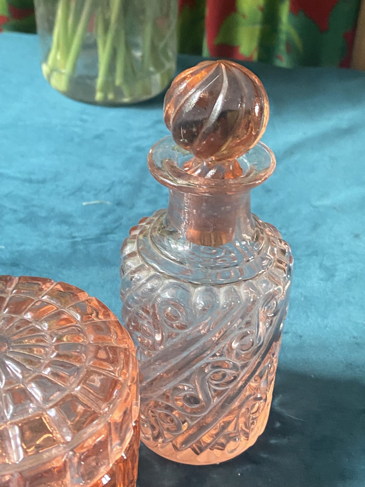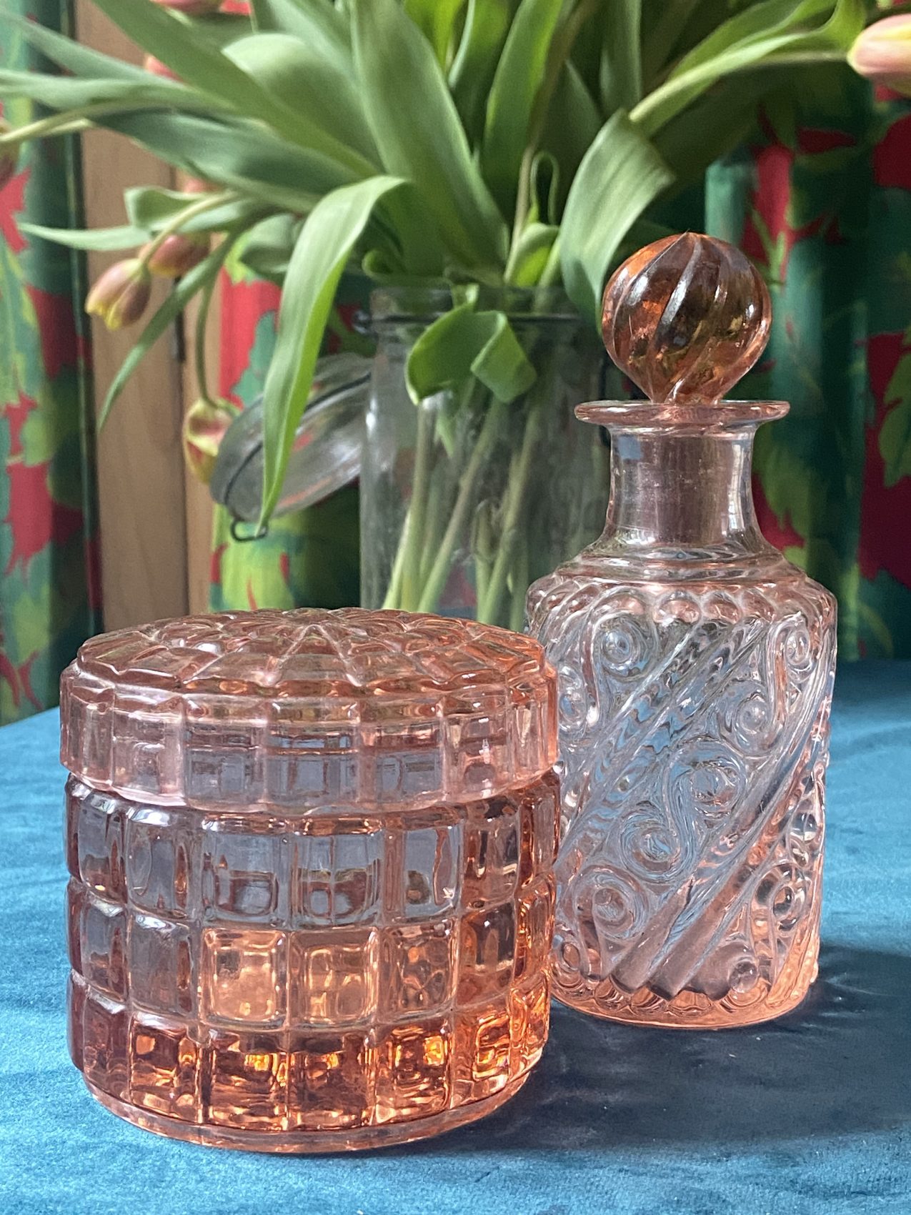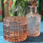 Un duo comme je les aime : tendre, raffiné, mais jamais guindé. Le genre d’objet qui aurait trôné sur une coiffeuse Belle Époque, mais qui aujourd’hui se glisse volontiers dans une cuisine ou sur un plateau de service.