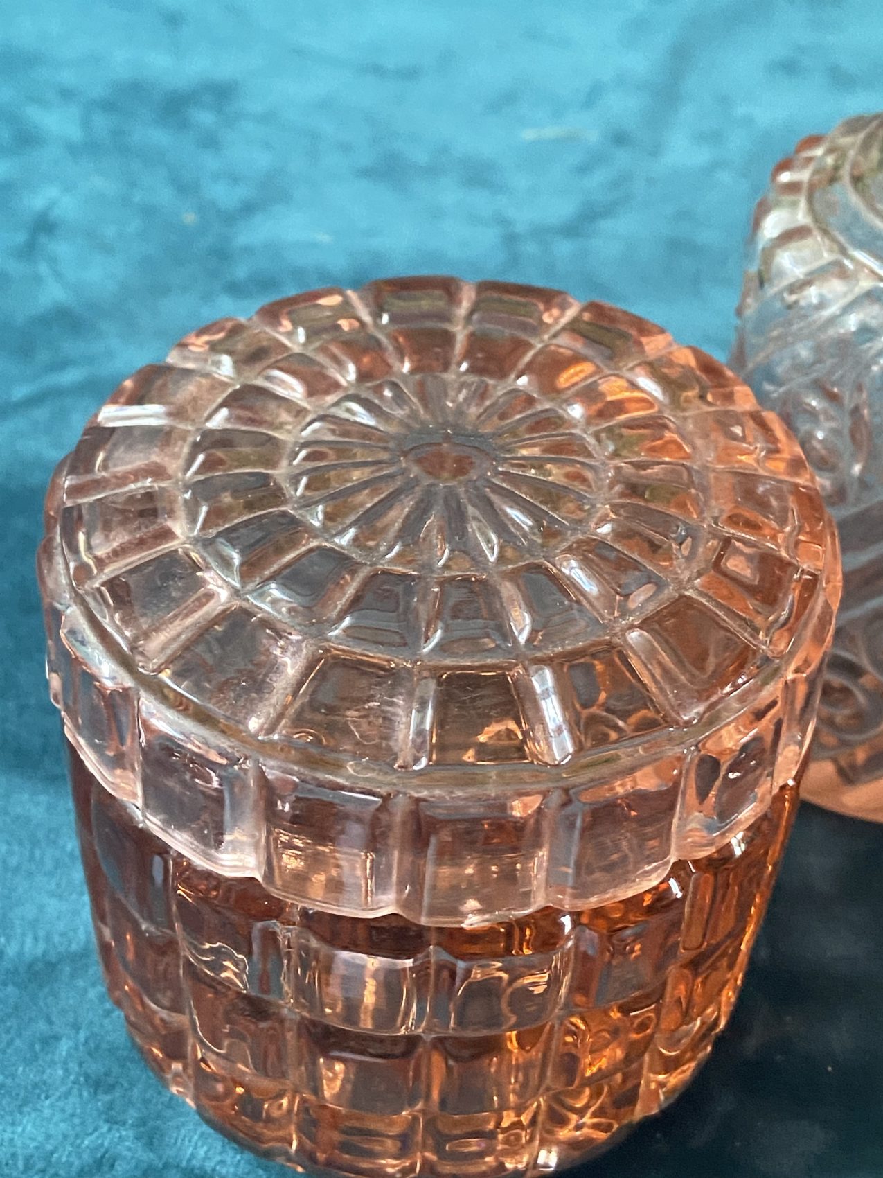 - Un pot à coton en cristal signé Baccarat, au rose tendre et lumineux, typique de l’élégance 1900. 9 X 8