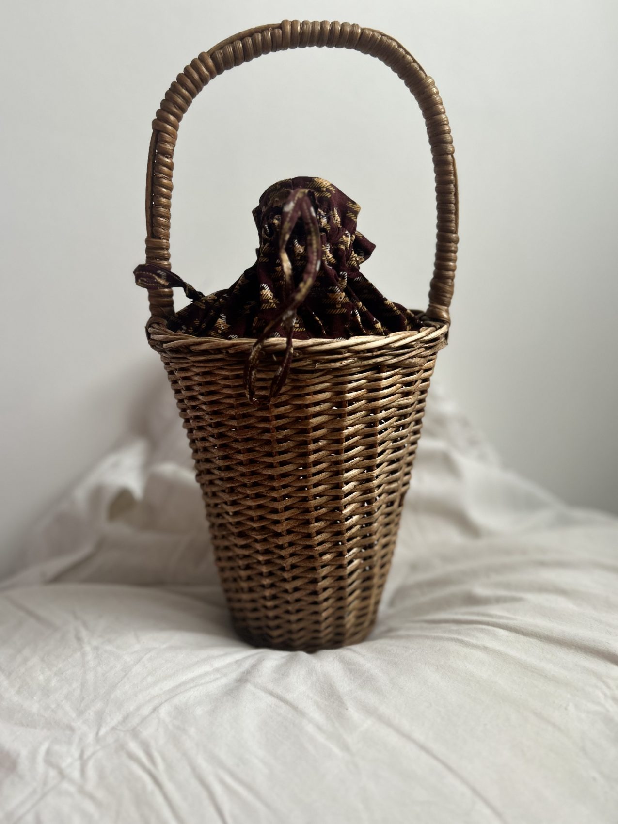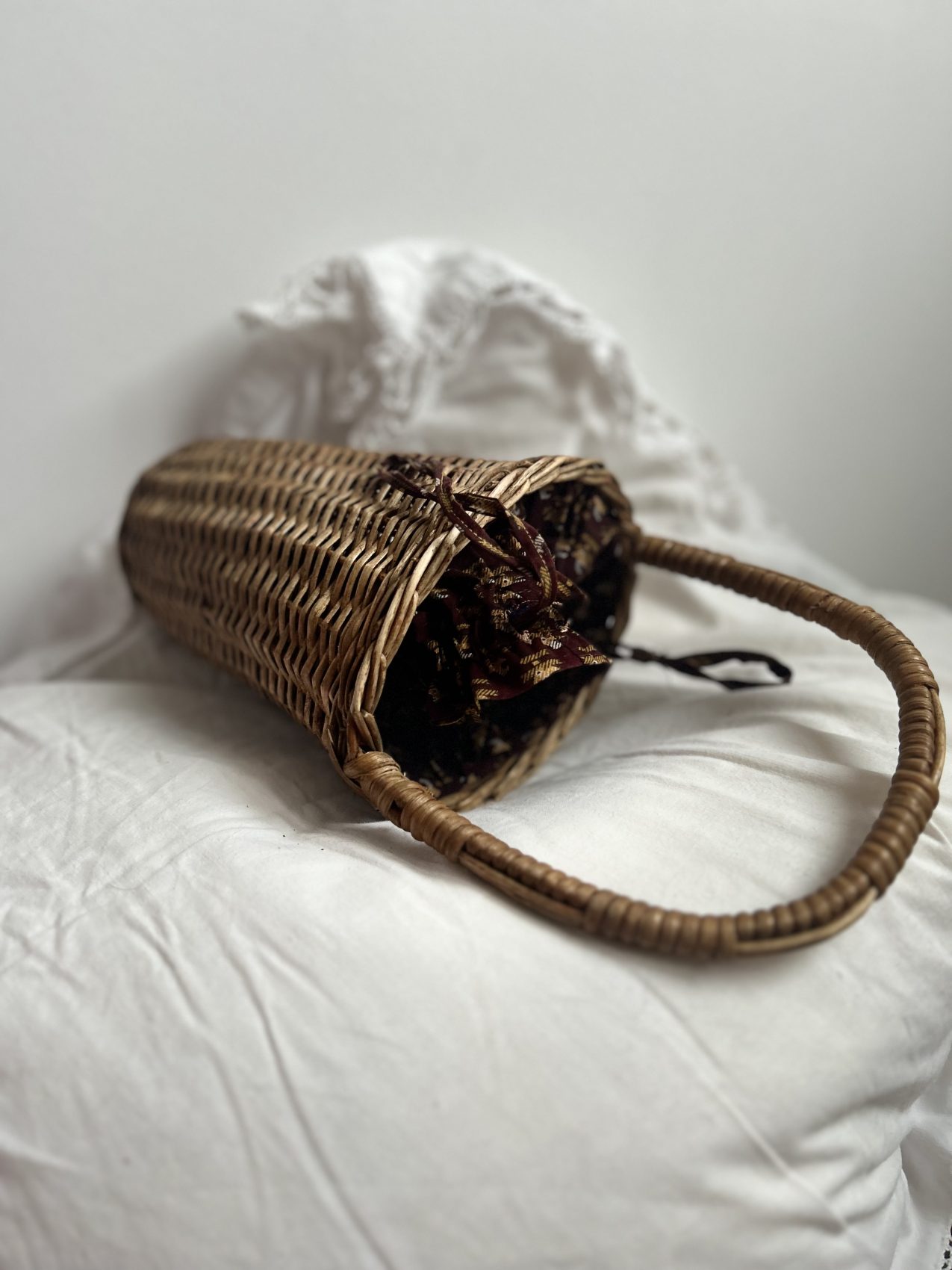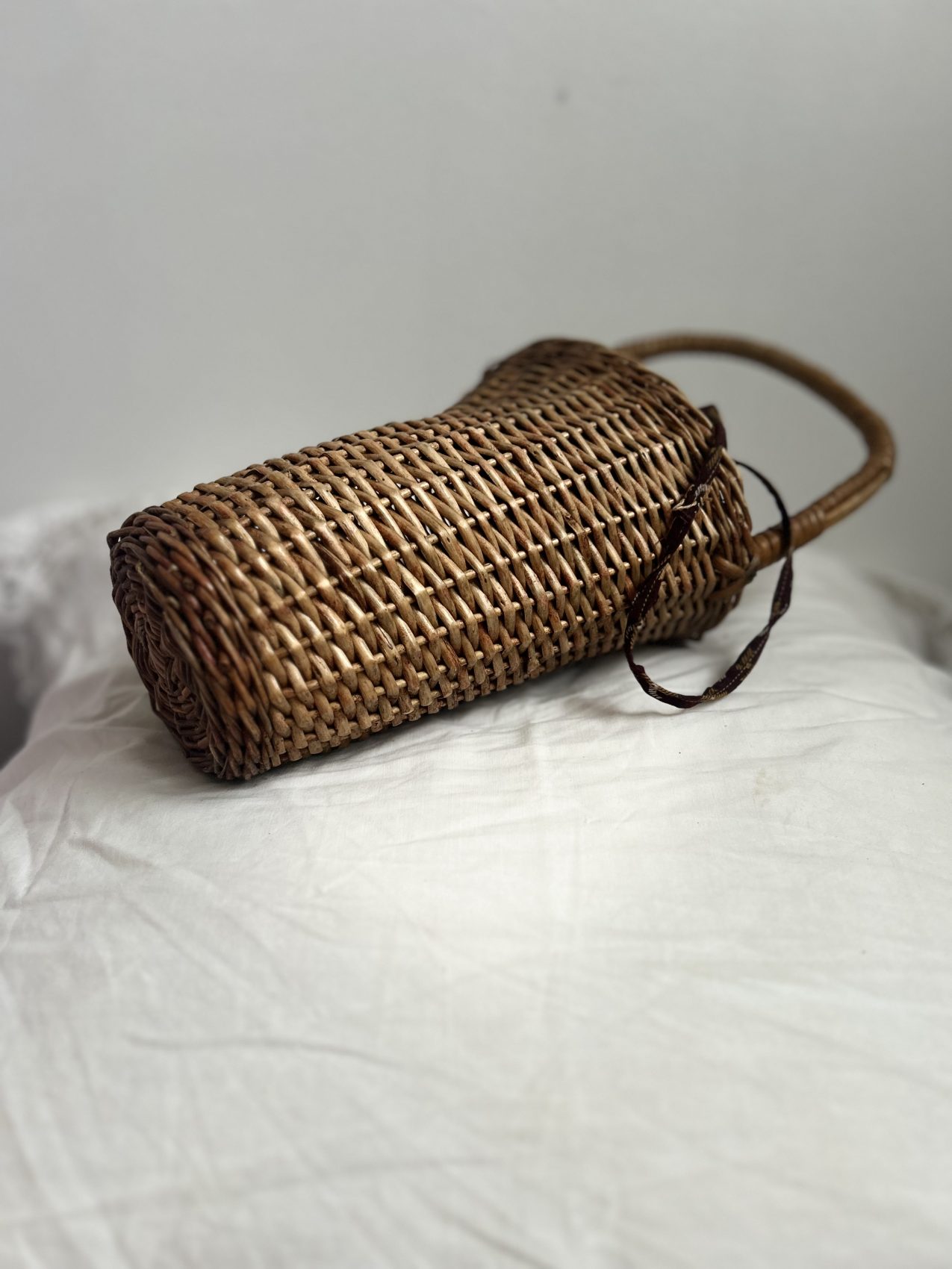 Petit Panier tonneau en osier – années 60 – mini sac qui fait parler