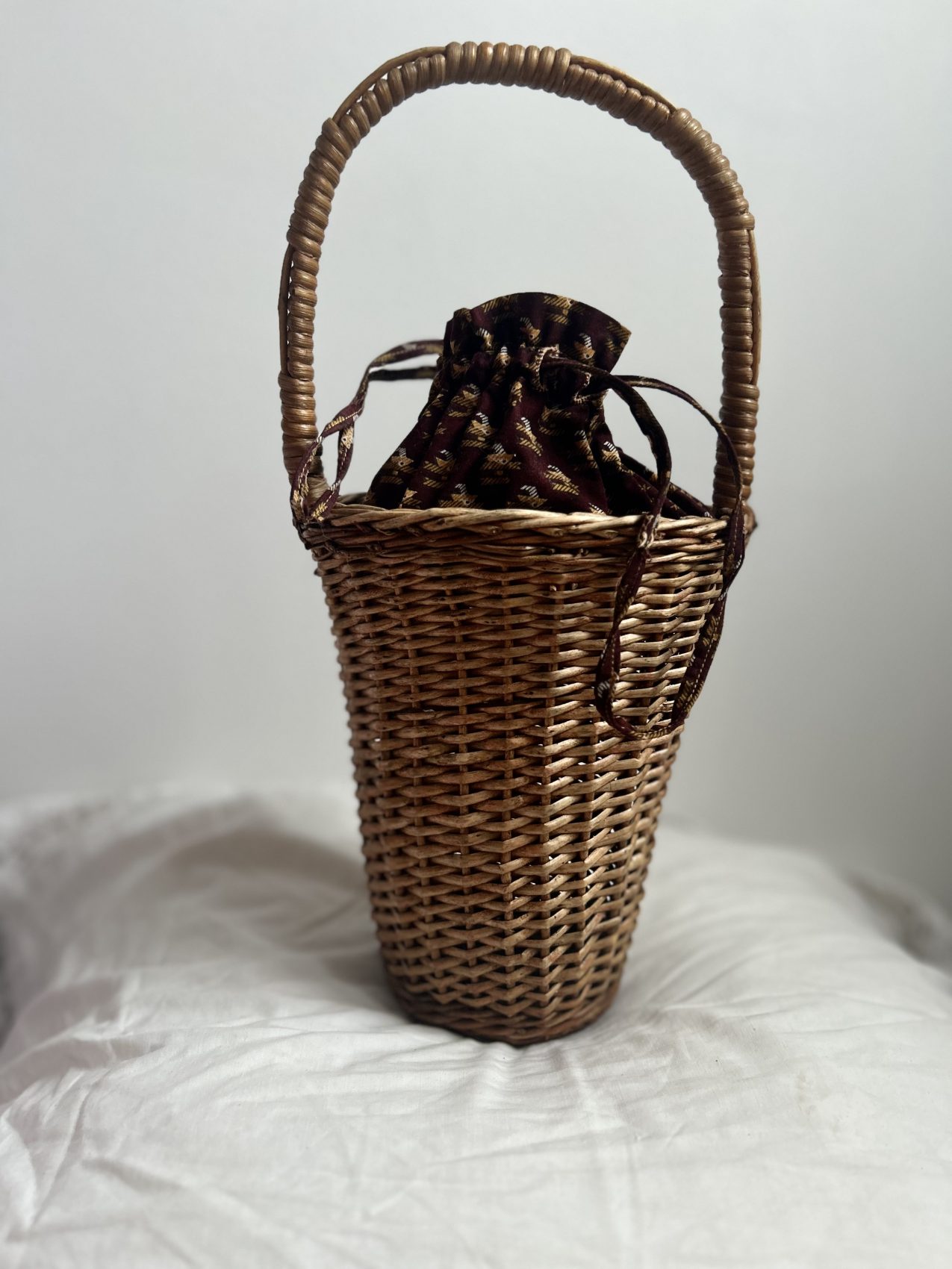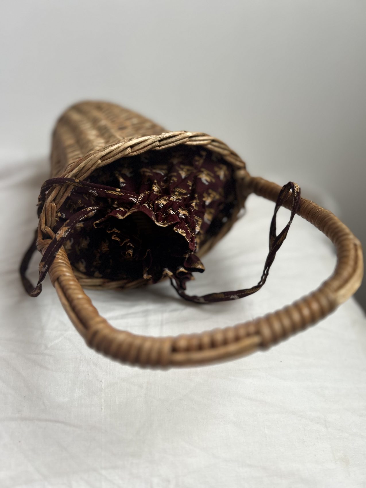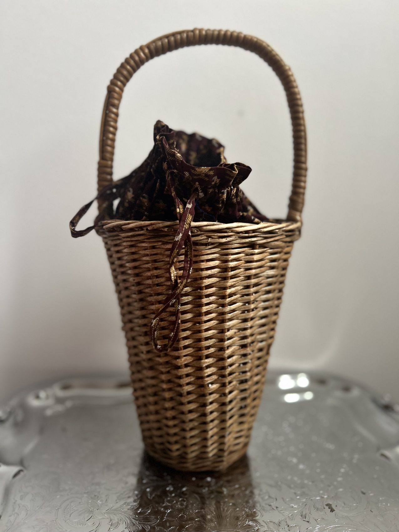 Petit Panier tonneau en osier – années 60 – mini sac qui fait parler