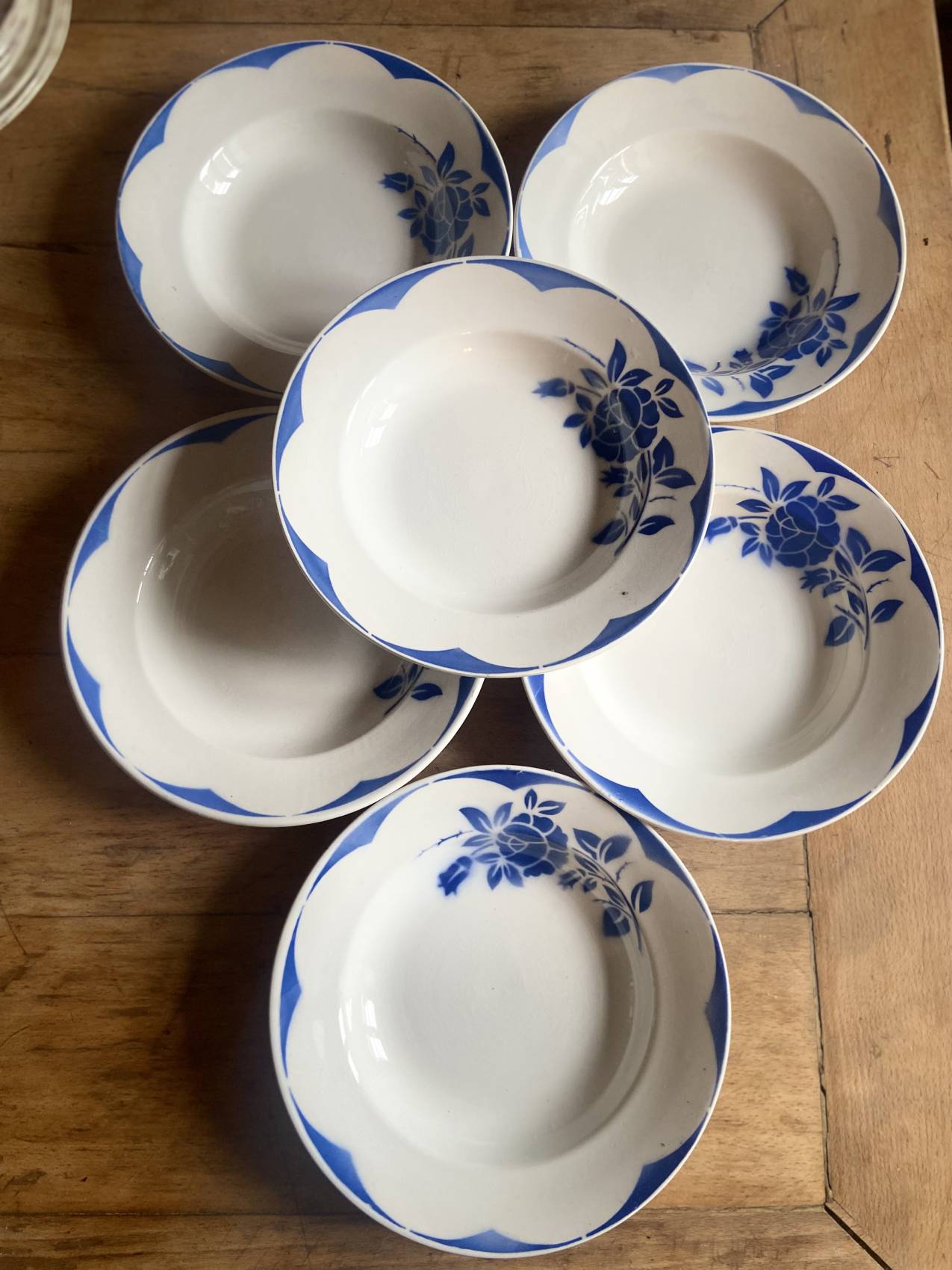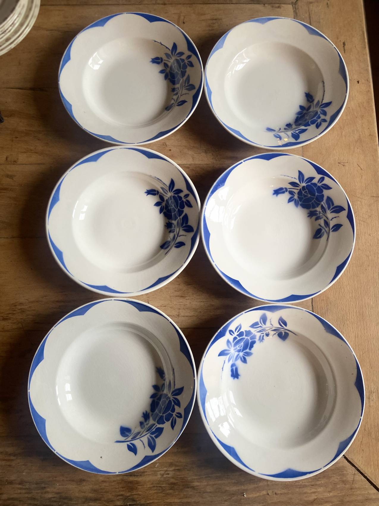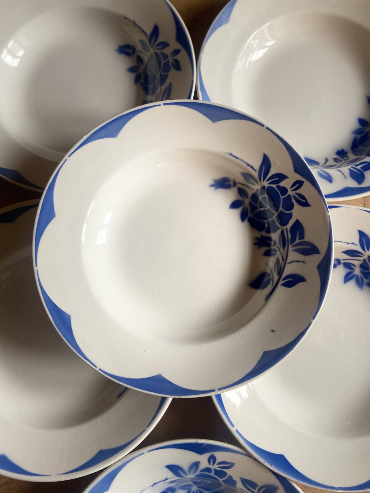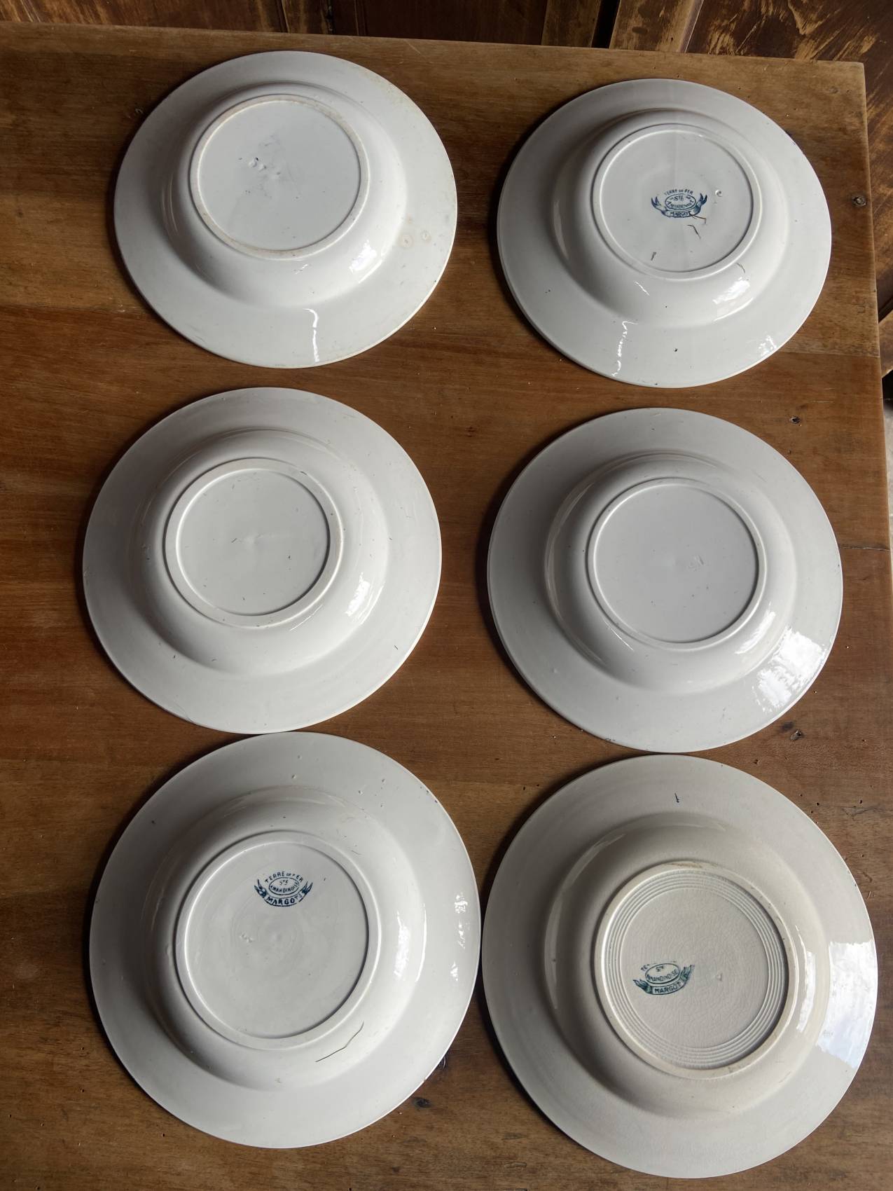 Série de six assiettes creuses anciennes en faïence – Modèle Corsica – Digouin Sarreguemines