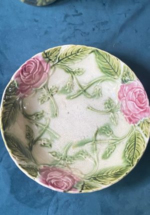 Grand saladier barbotine aux roses 1900 & mini saladier cristal en forme de chou