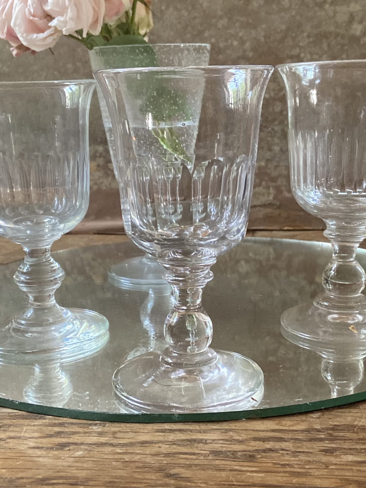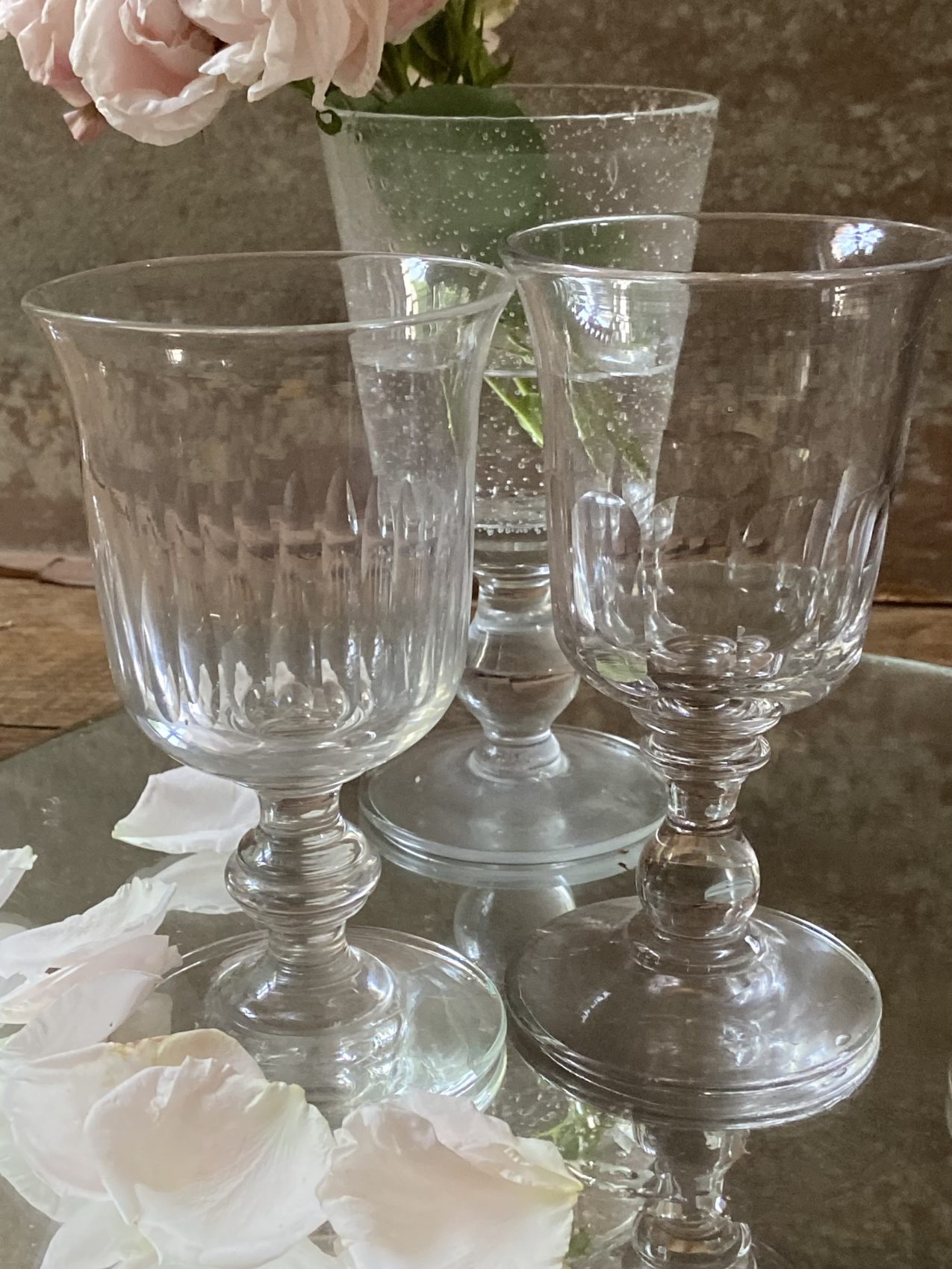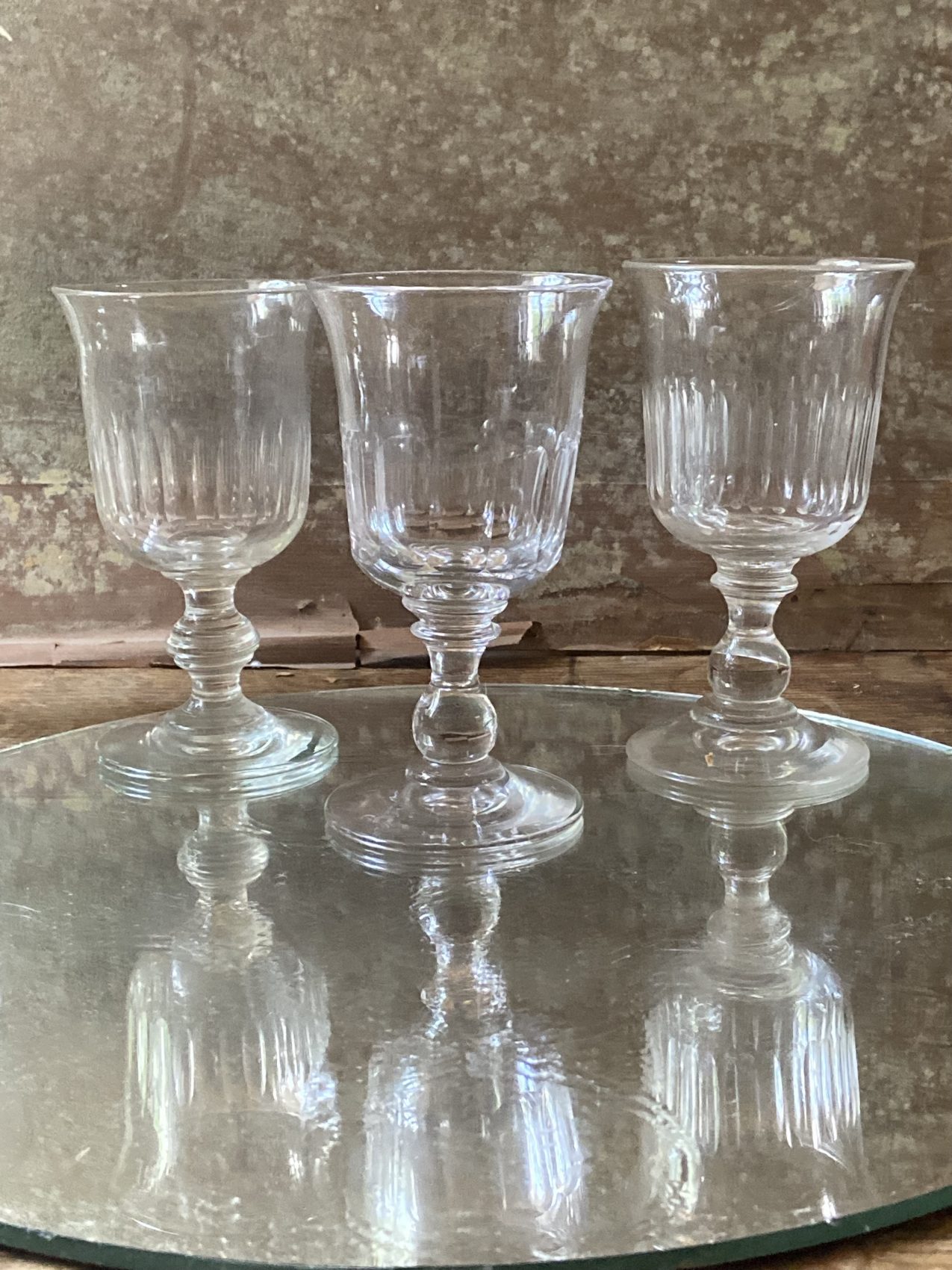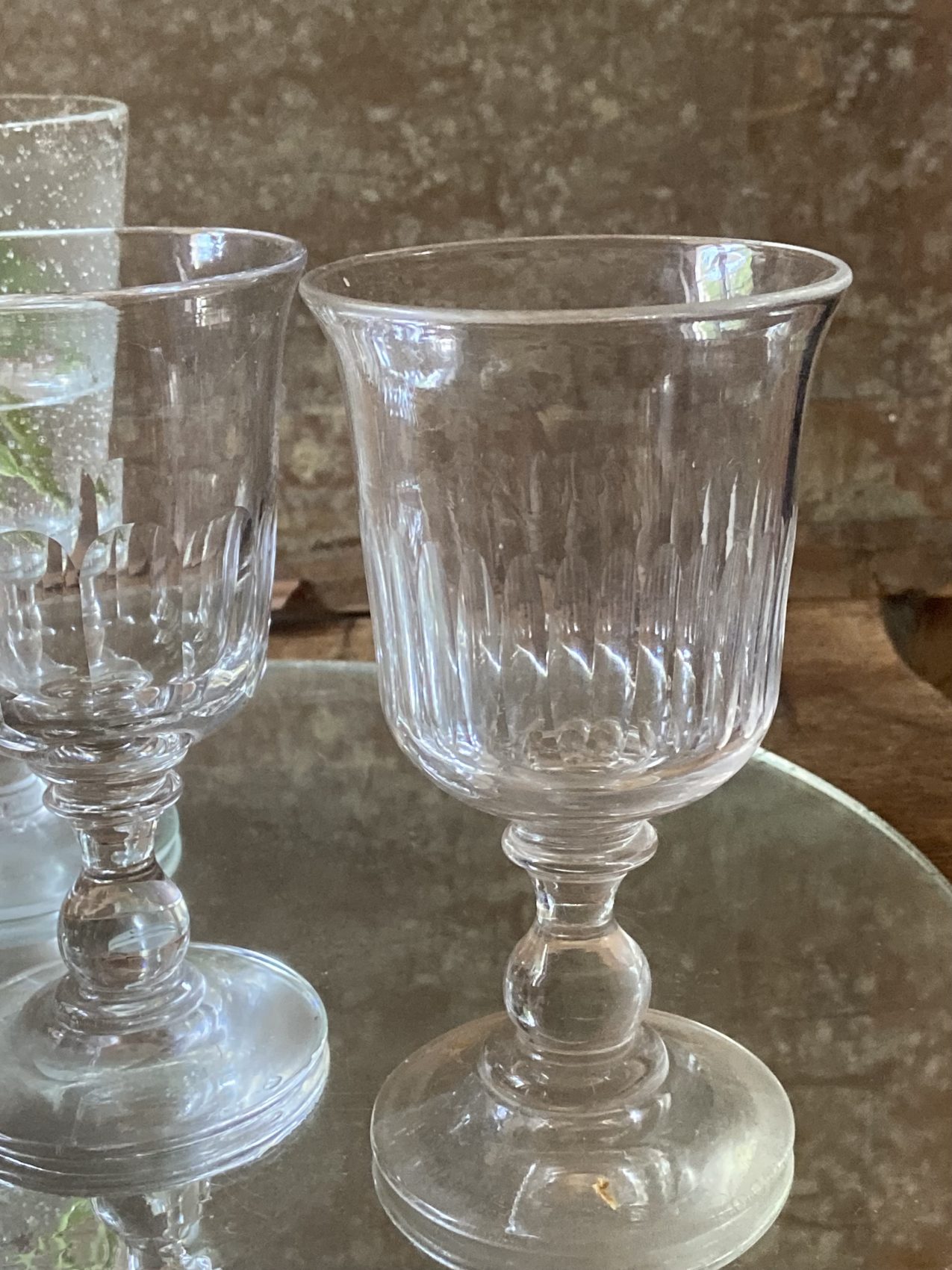 Trio de verres à pied bistrot XIXe – verre ancien artisanal