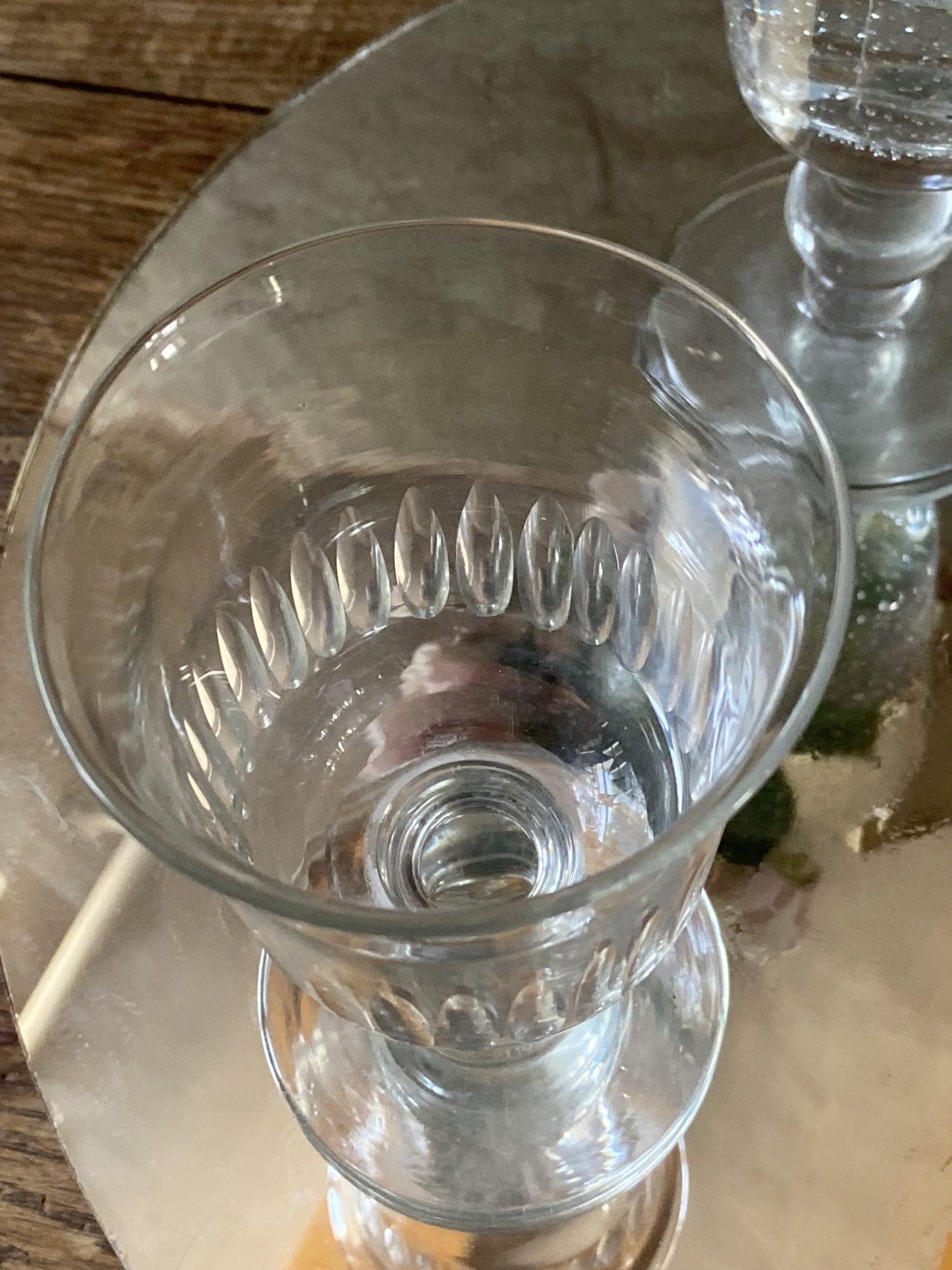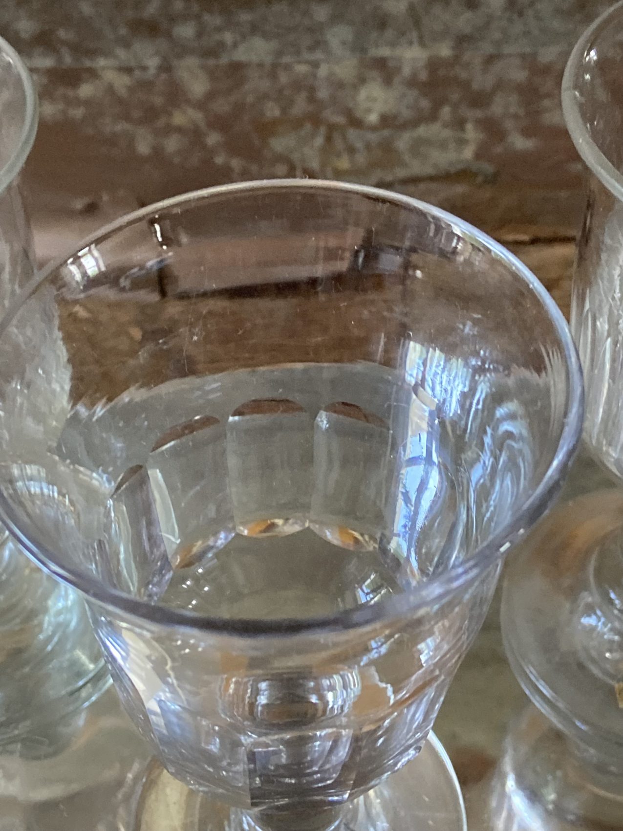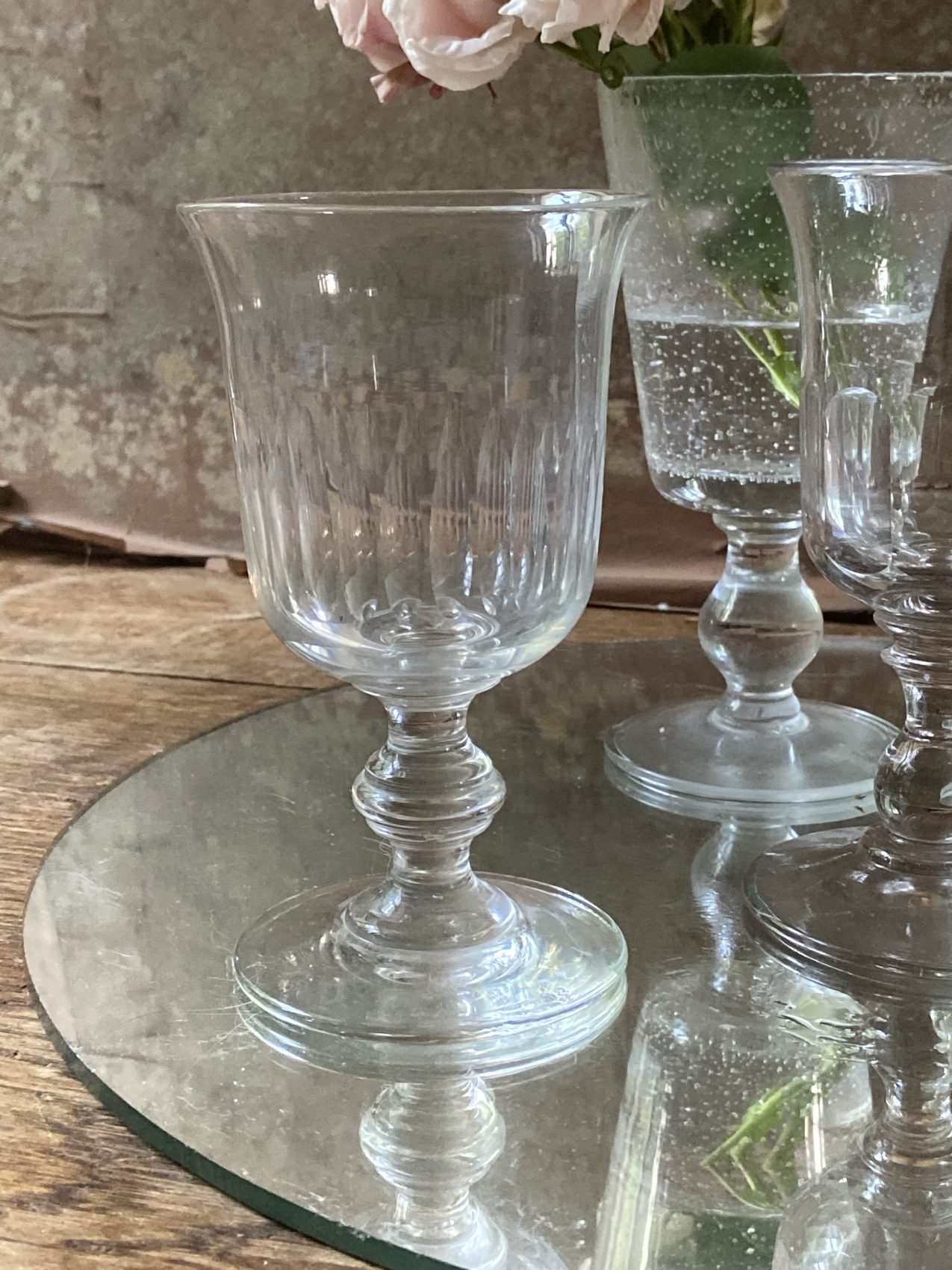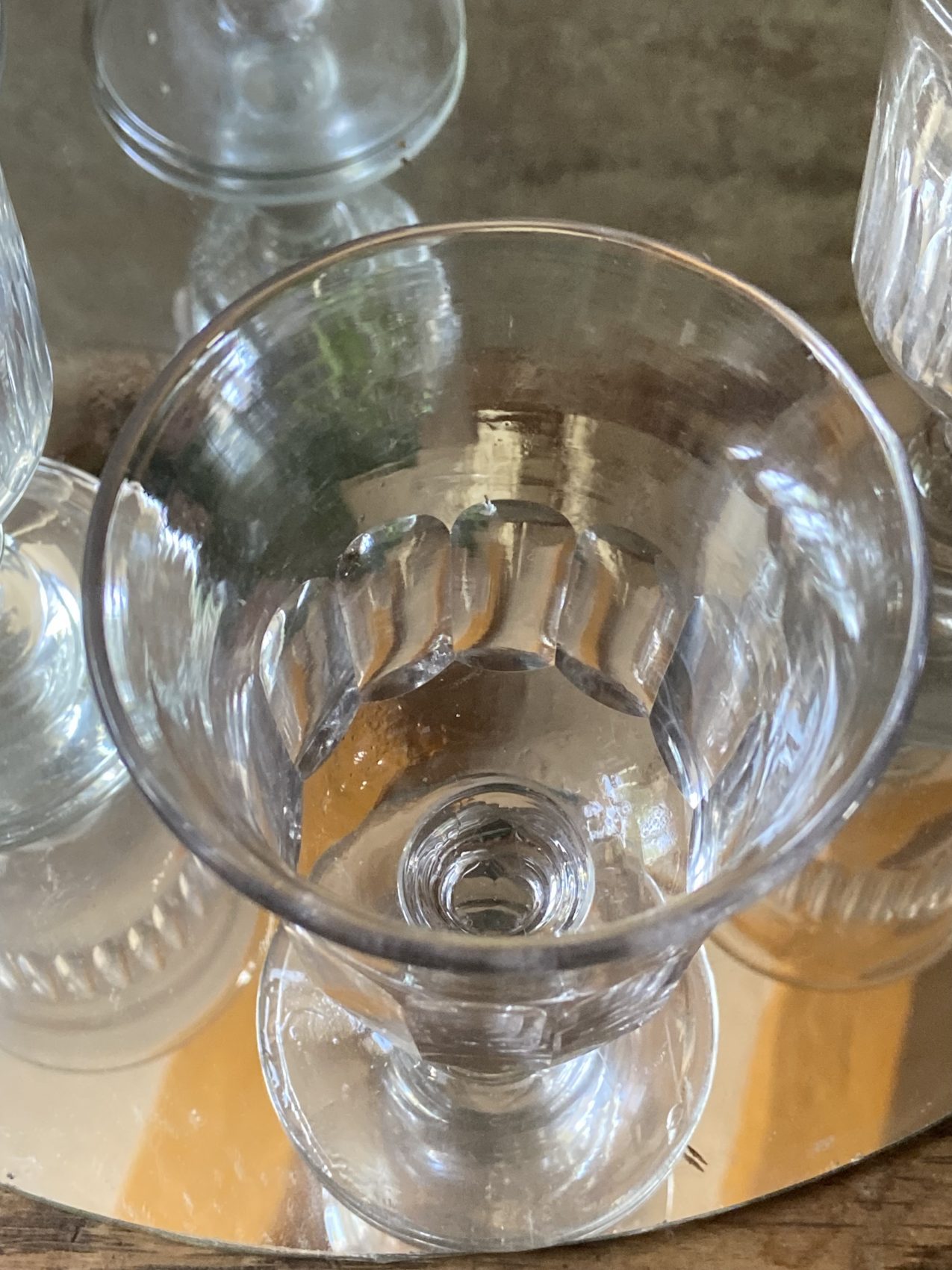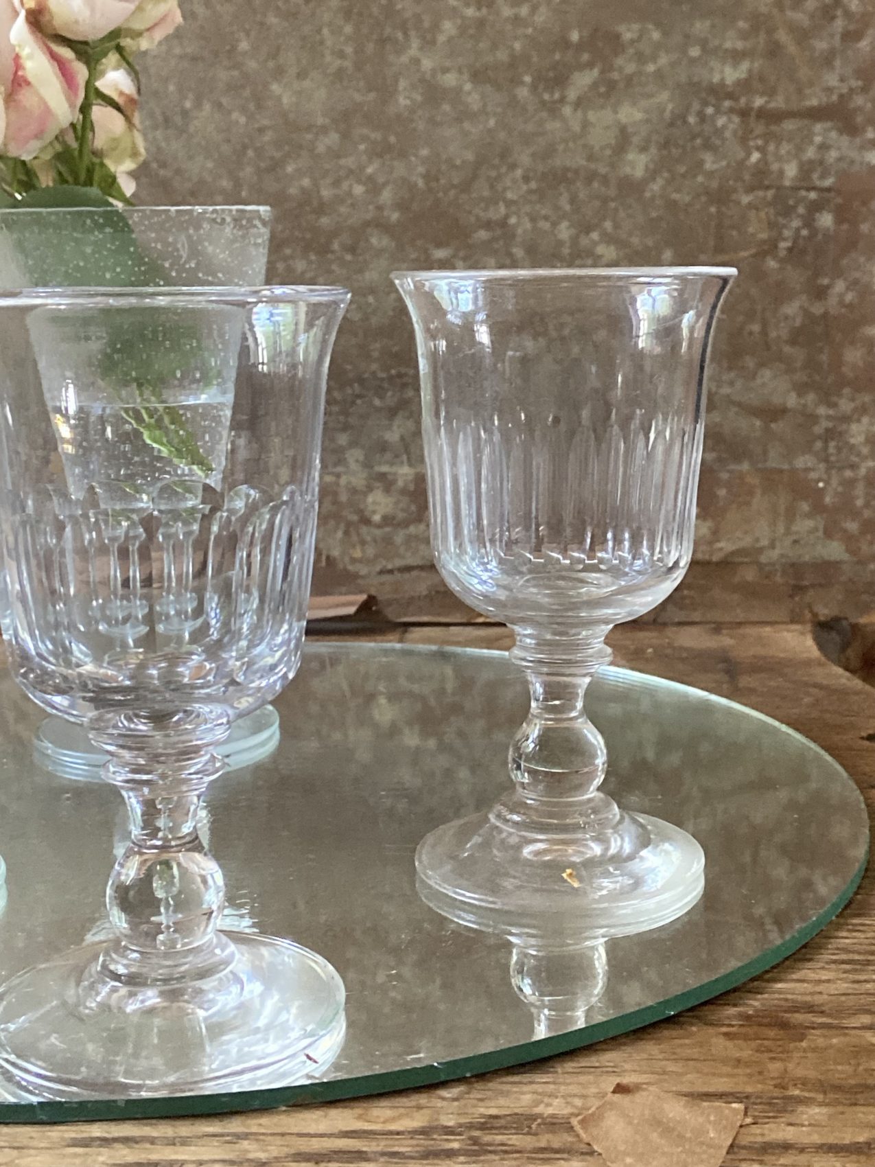 Trio de verres à pied bistrot XIXe – verre ancien artisanal
