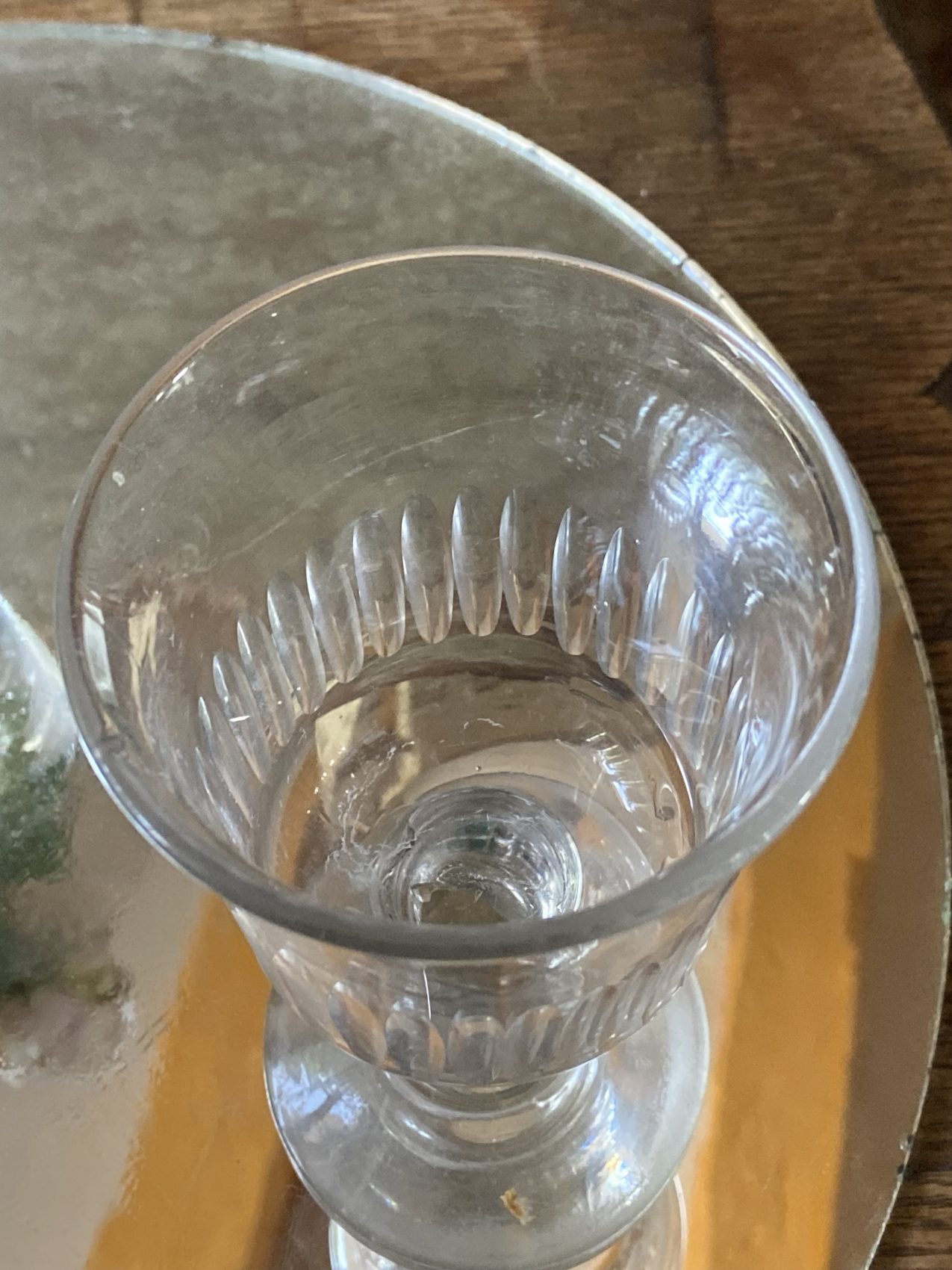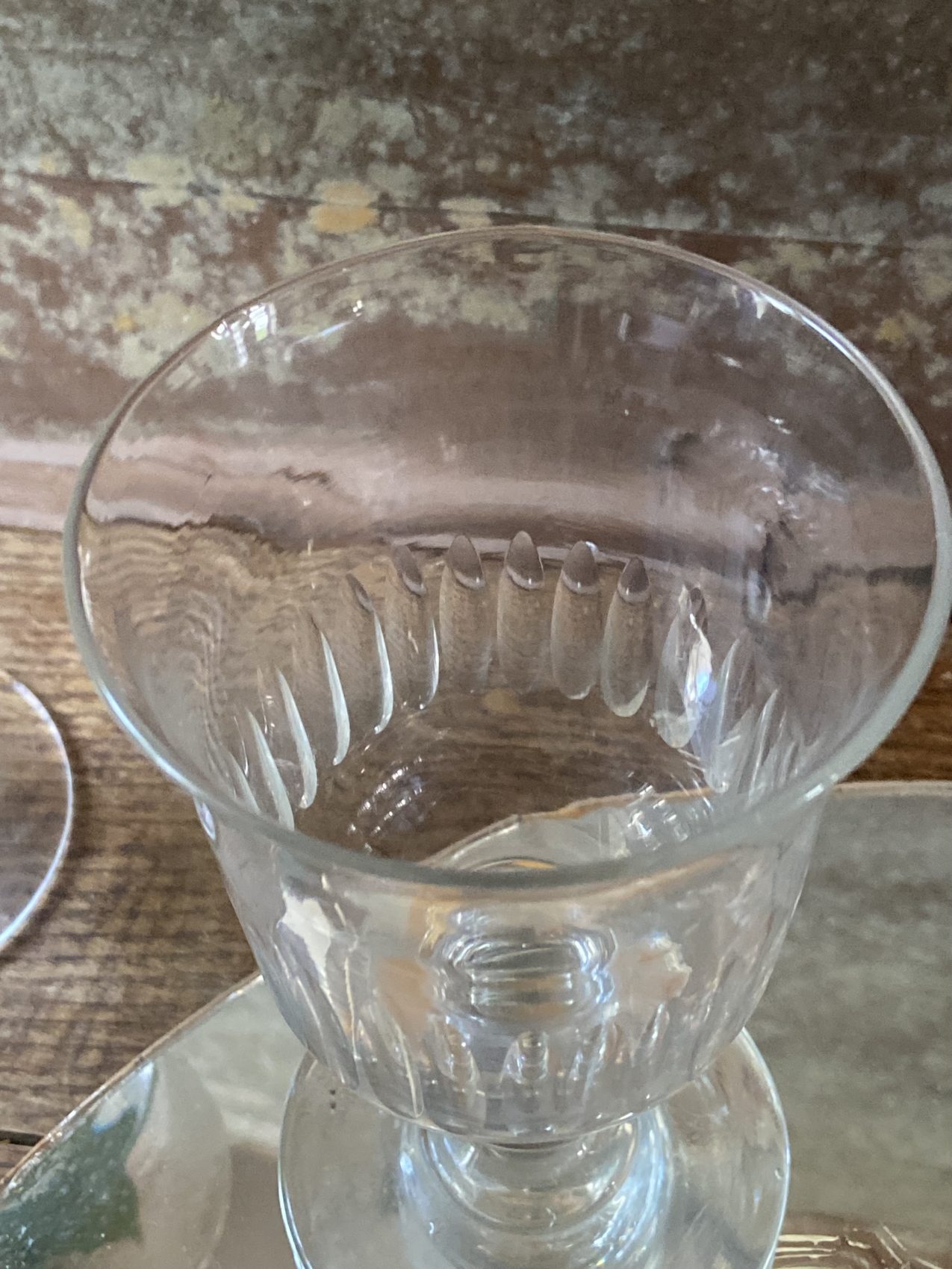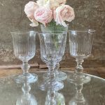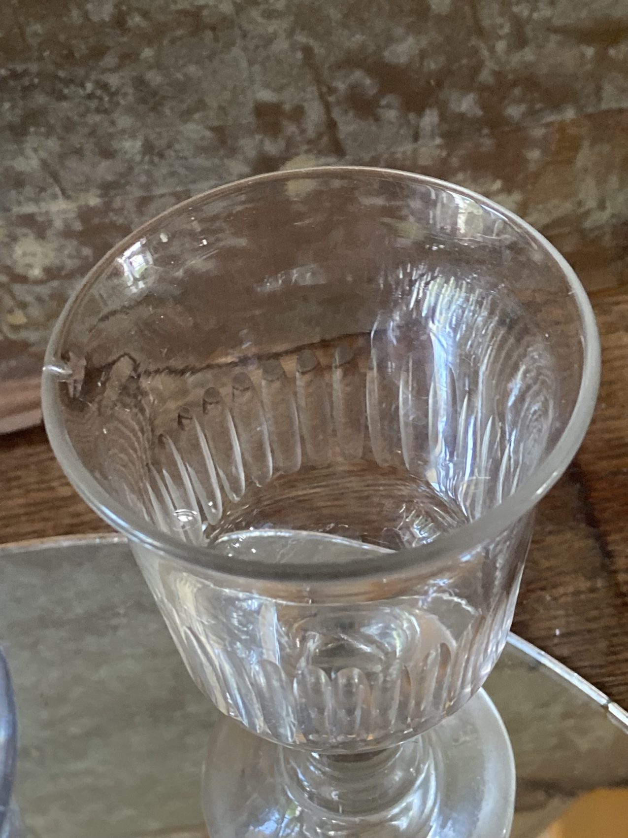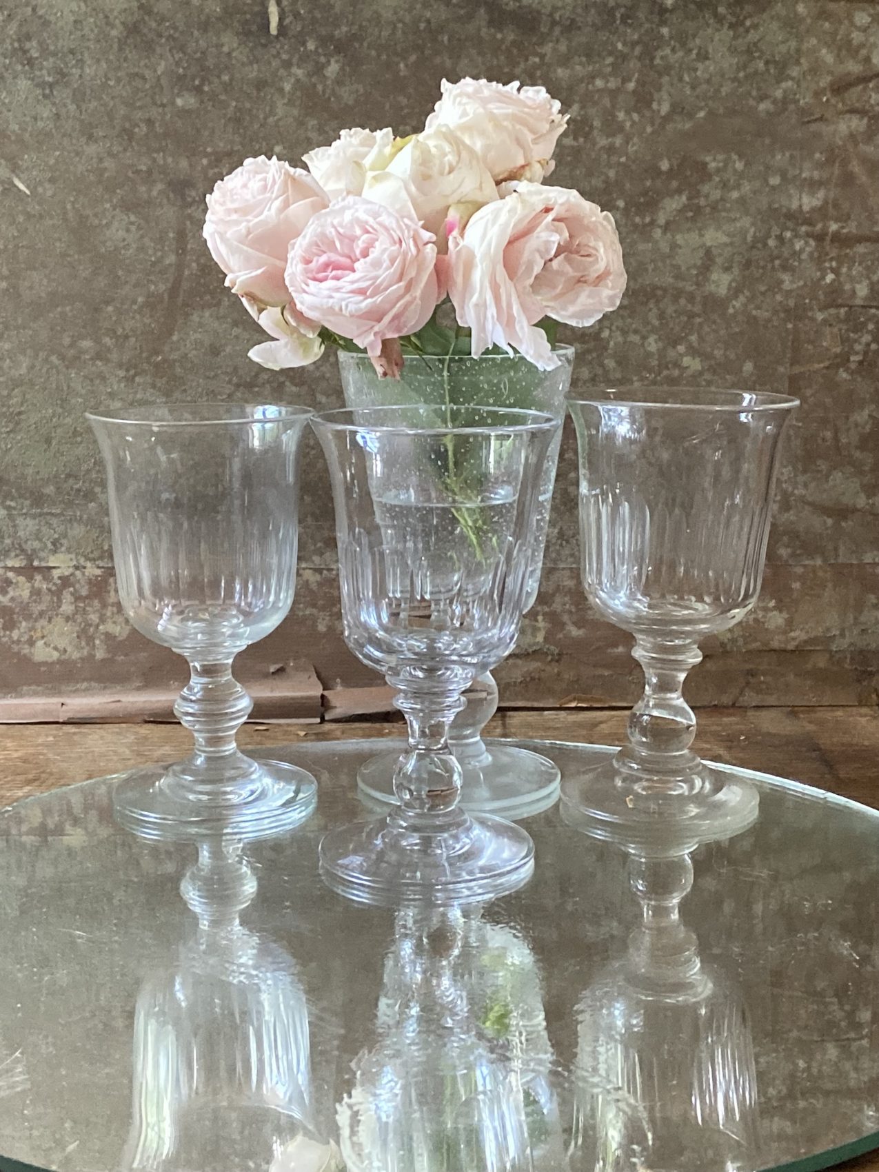 Trio de verres à pied bistrot XIXe – verre ancien artisanal