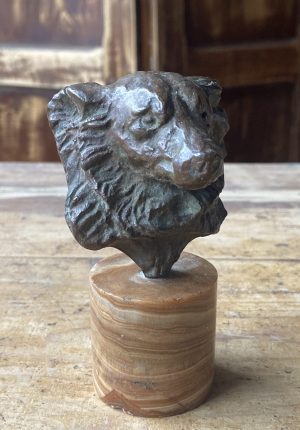 Sculpture en bronze XIXe – Tête de chien sur socle en onyx