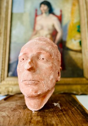 Sculpture en terre cuite – Visage d’homme réaliste, patine ancienne et charme mélancolique