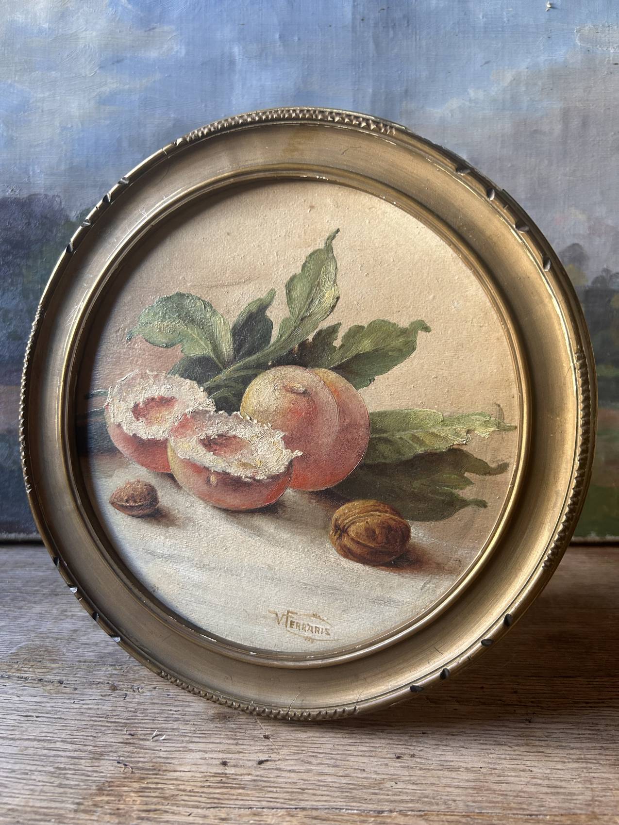 Tableau ancien nature morte aux pêches époque 1900 – Un symbole d’abondance et de sensualité