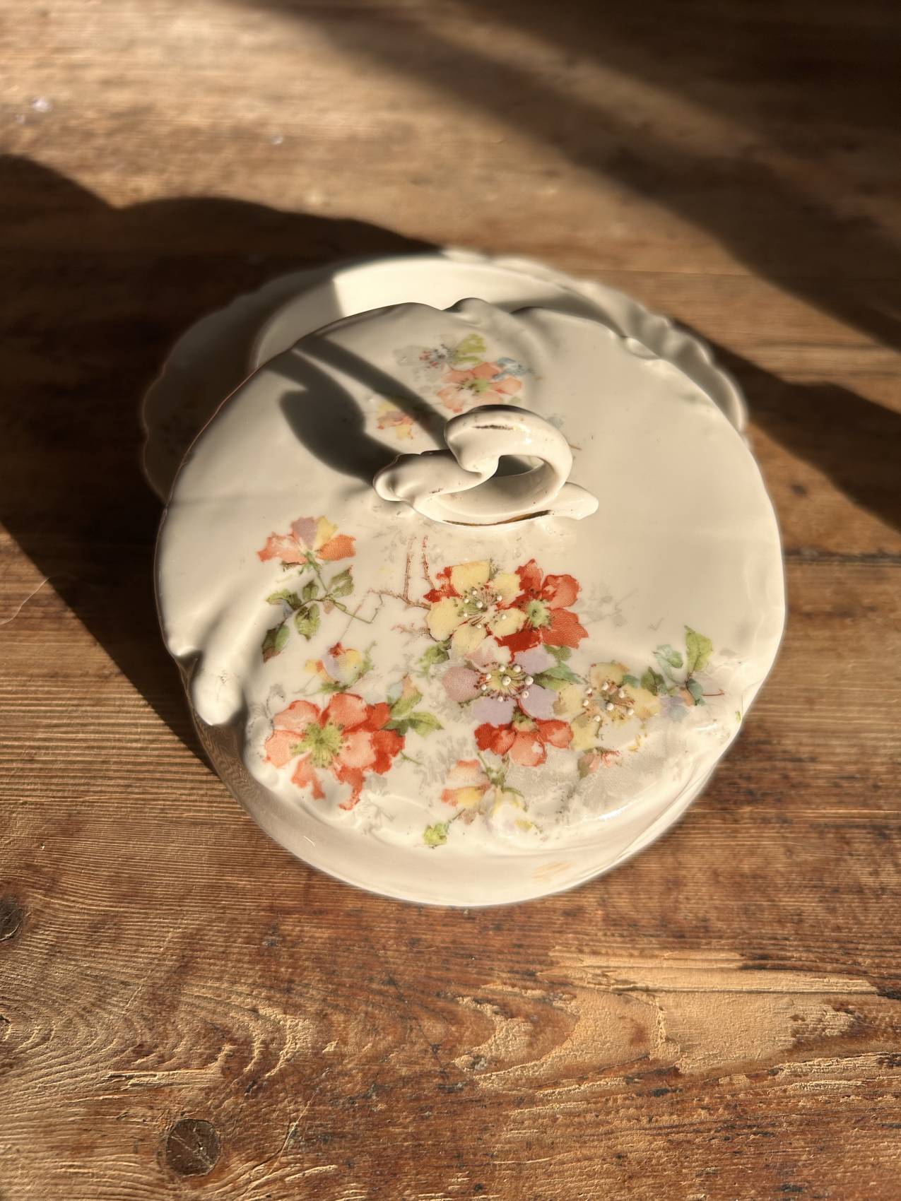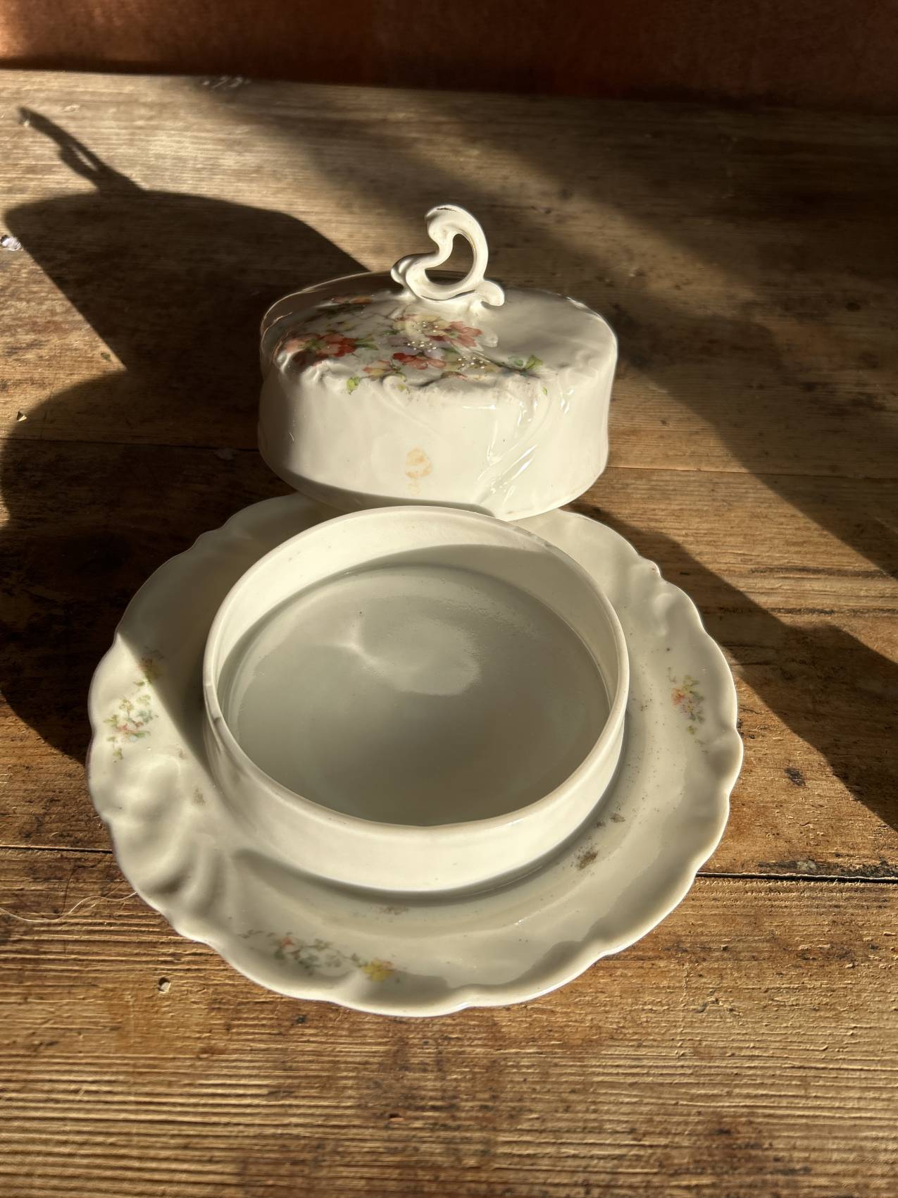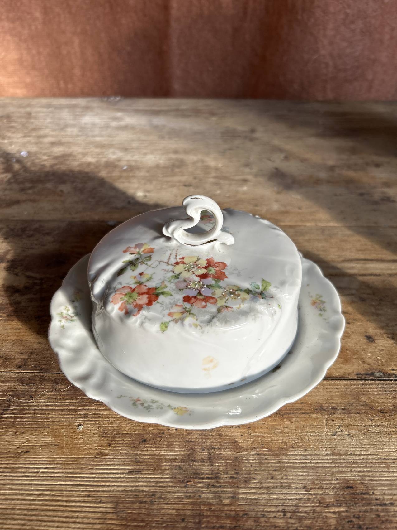 Beurrier ancien en porcelaine décor aubépine – charme romantique vers 1900