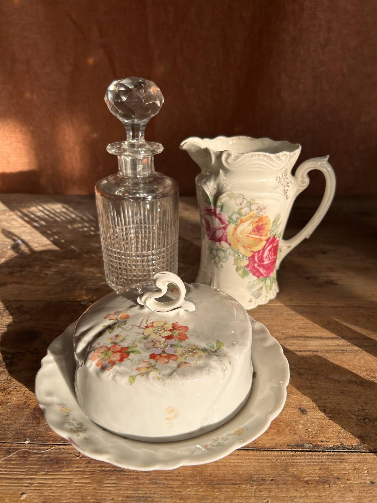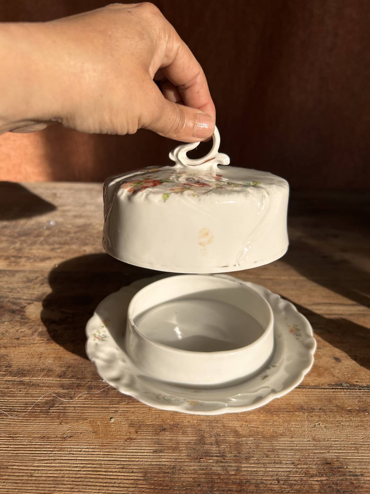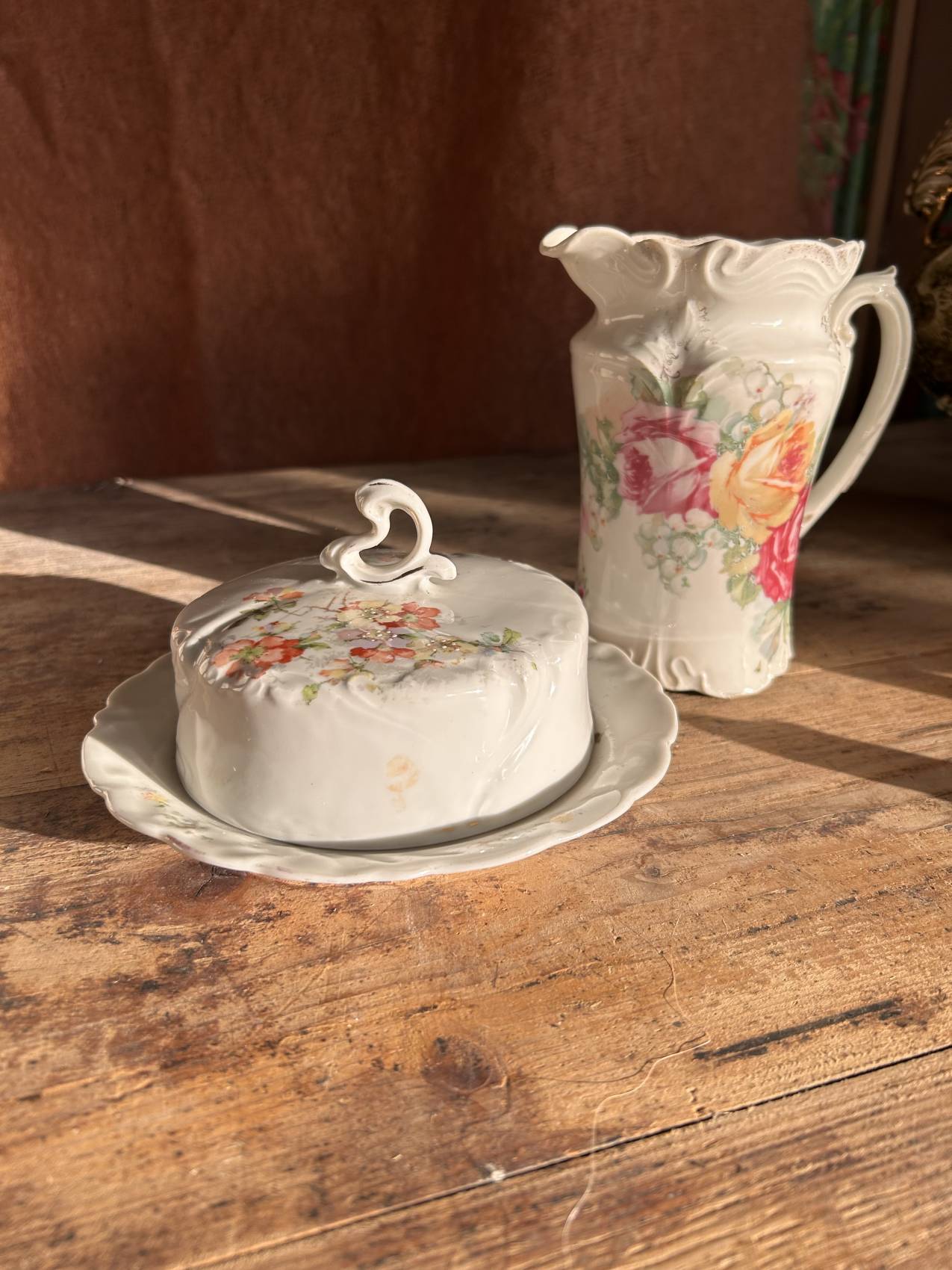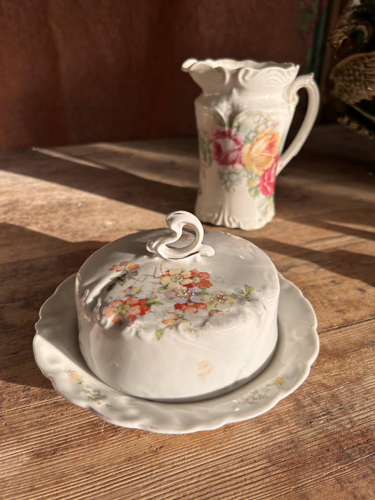 Beurrier ancien en porcelaine décor aubépine – charme romantique vers 1900