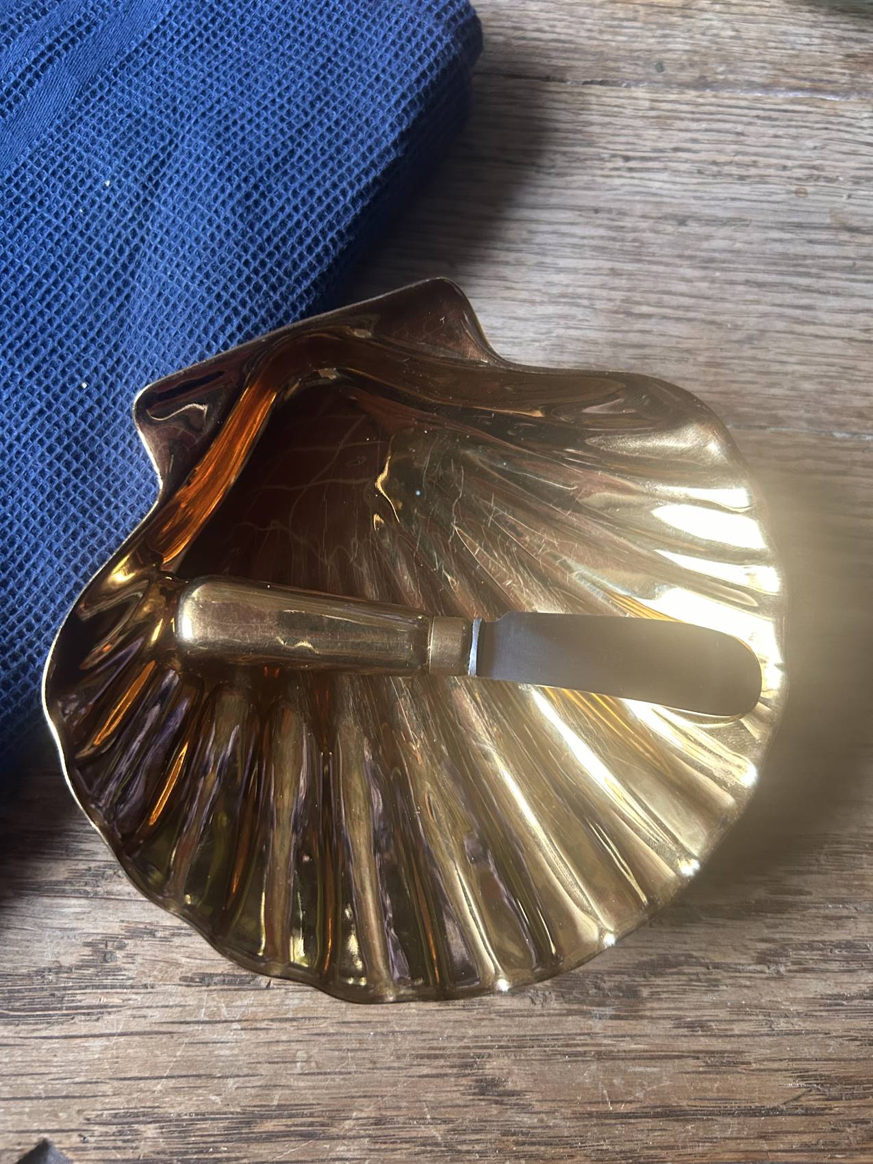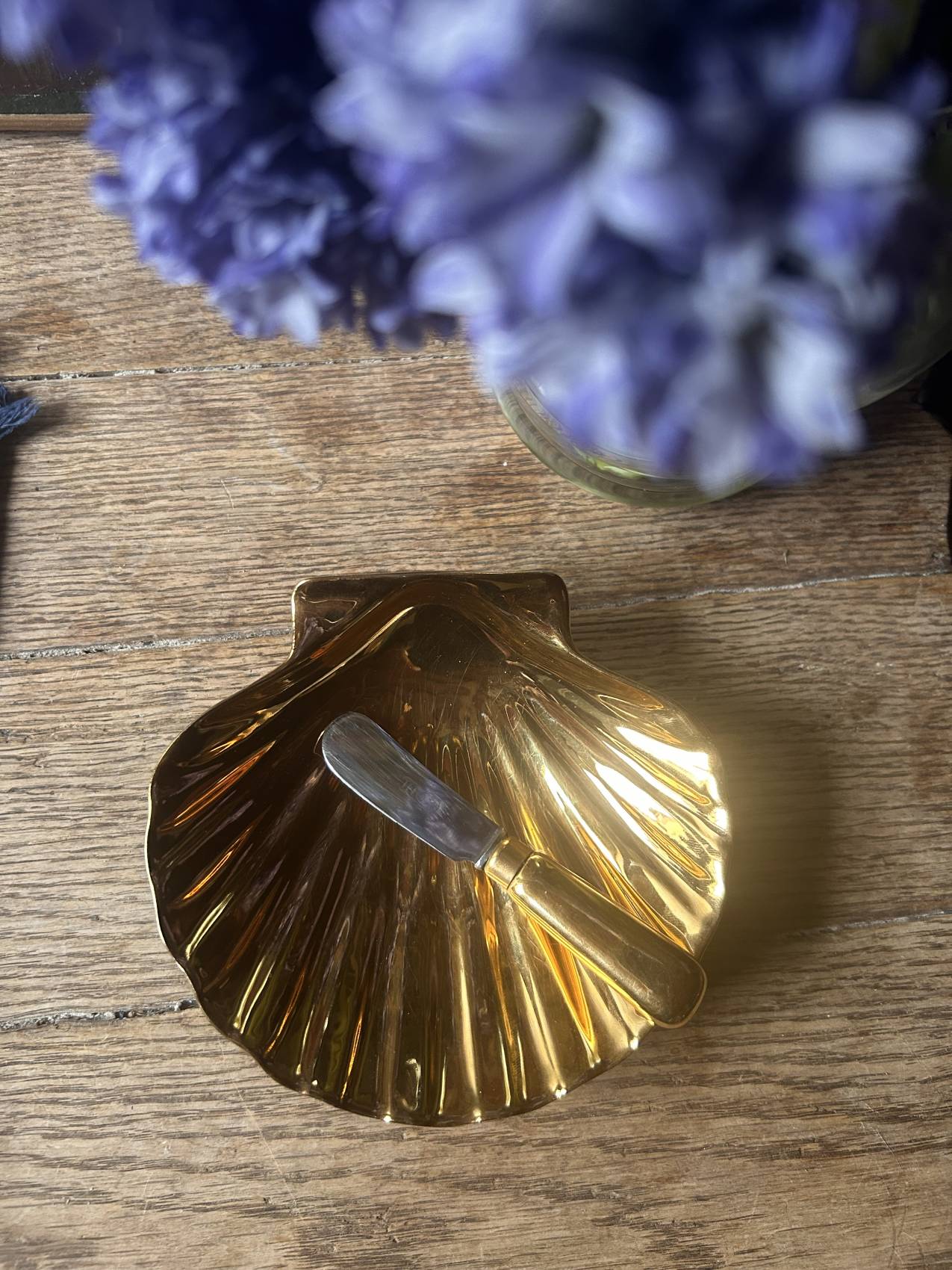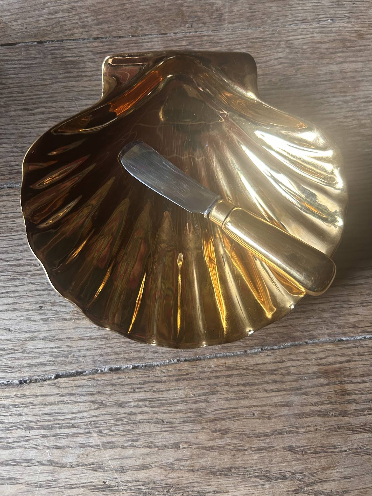 La forme est délicieuse : une coquille Saint-Jacques stylisée, avec un intérieur doré lumineux qui capte la lumière et donne tout de suite un côté très raffiné à la table.
