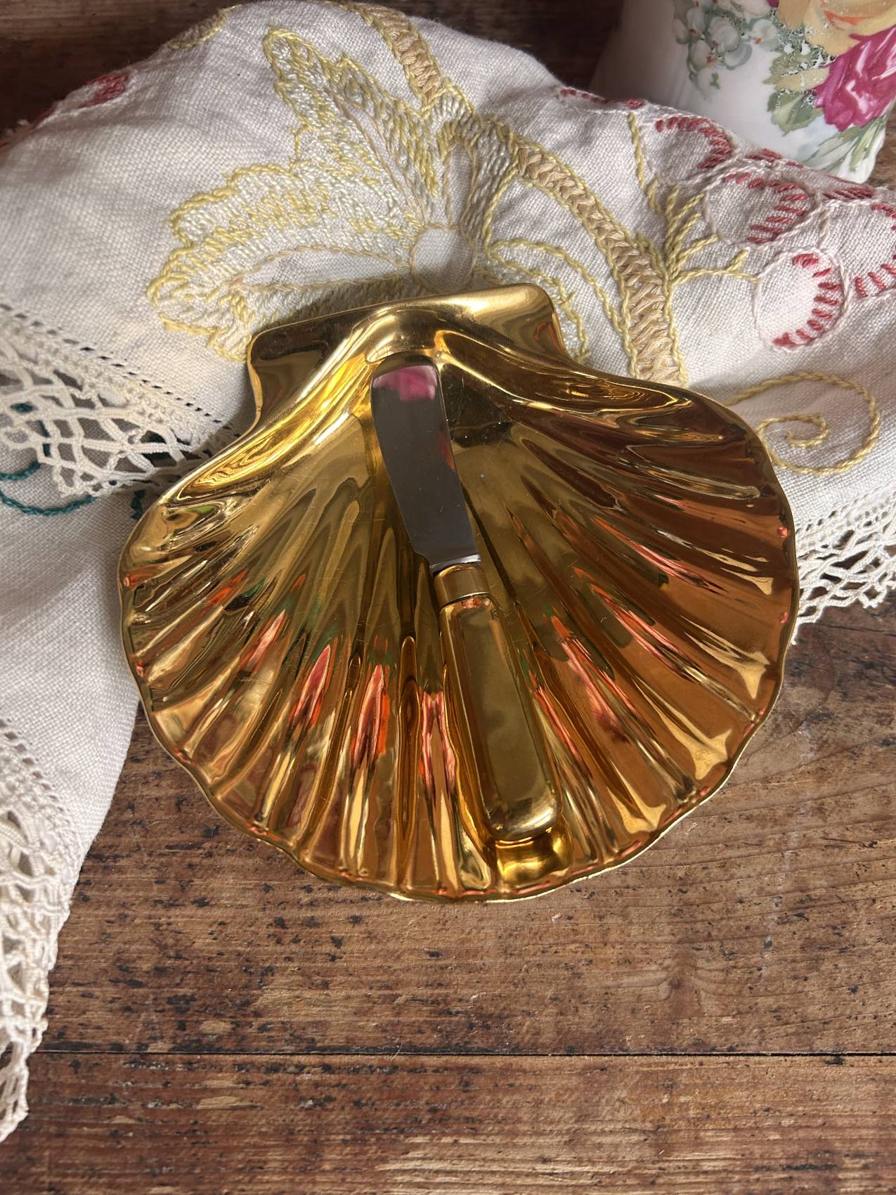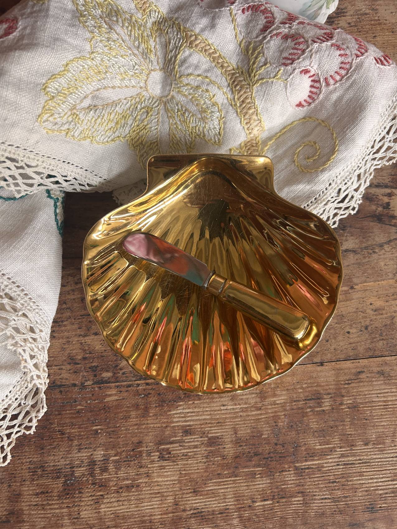 Ce beurrier coquille Saint-Jacques appartient à cette tradition élégante où chaque détail comptait.