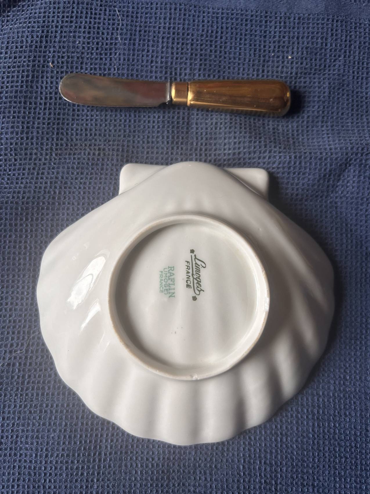 Beurrier coquille Saint-Jacques en porcelaine de Limoges – doré- Le chic passe à table