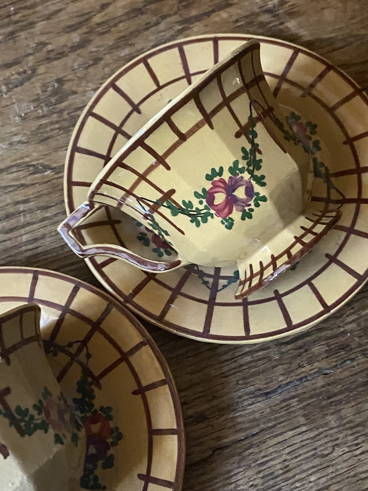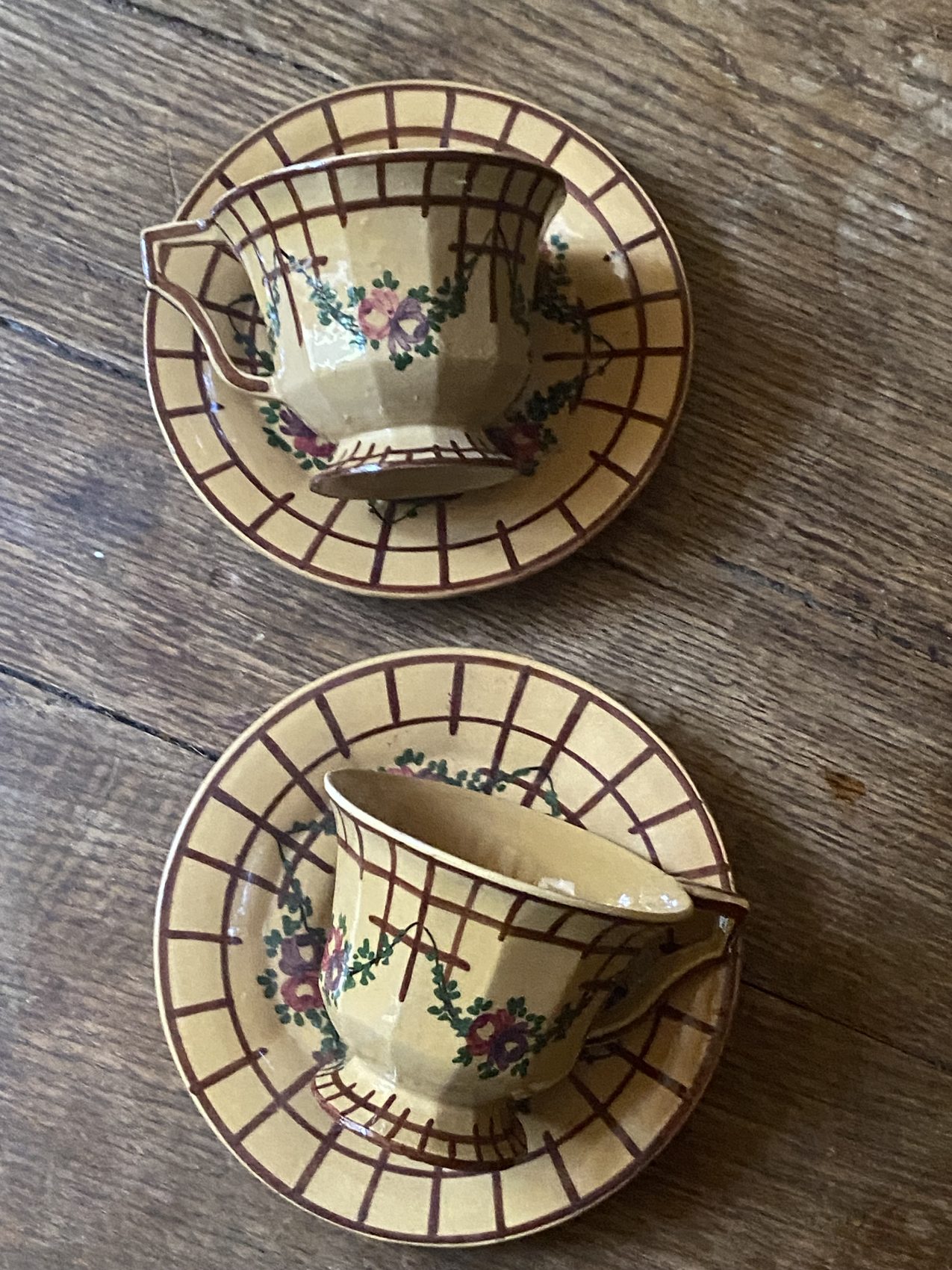 Ce duo de tasses avec leurs sous-tasses assorties est un bel exemple du savoir-faire traditionnel de la faïence de Malicorne, cette manufacture de la Sarthe qui fait battre le cœur des amateurs d’arts de la table.