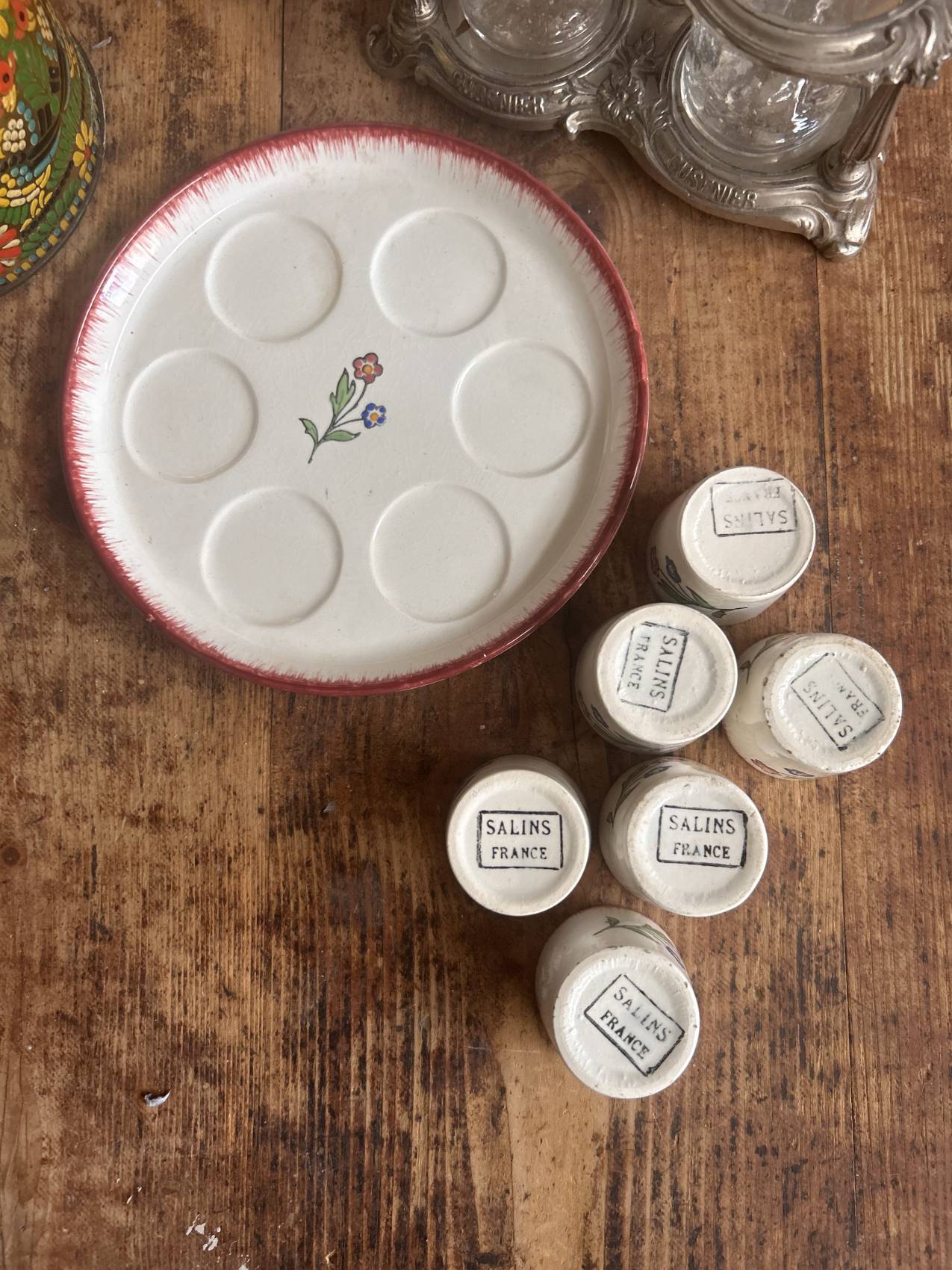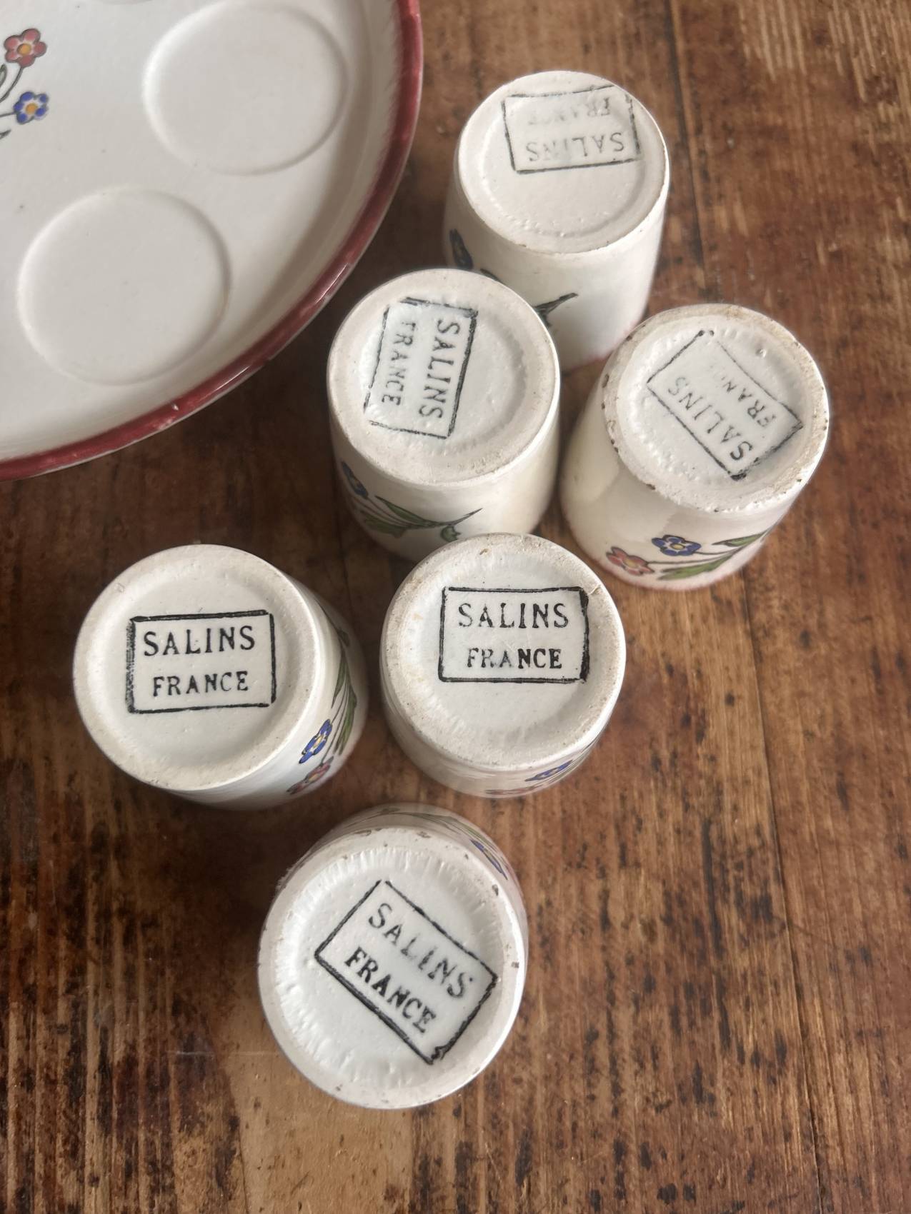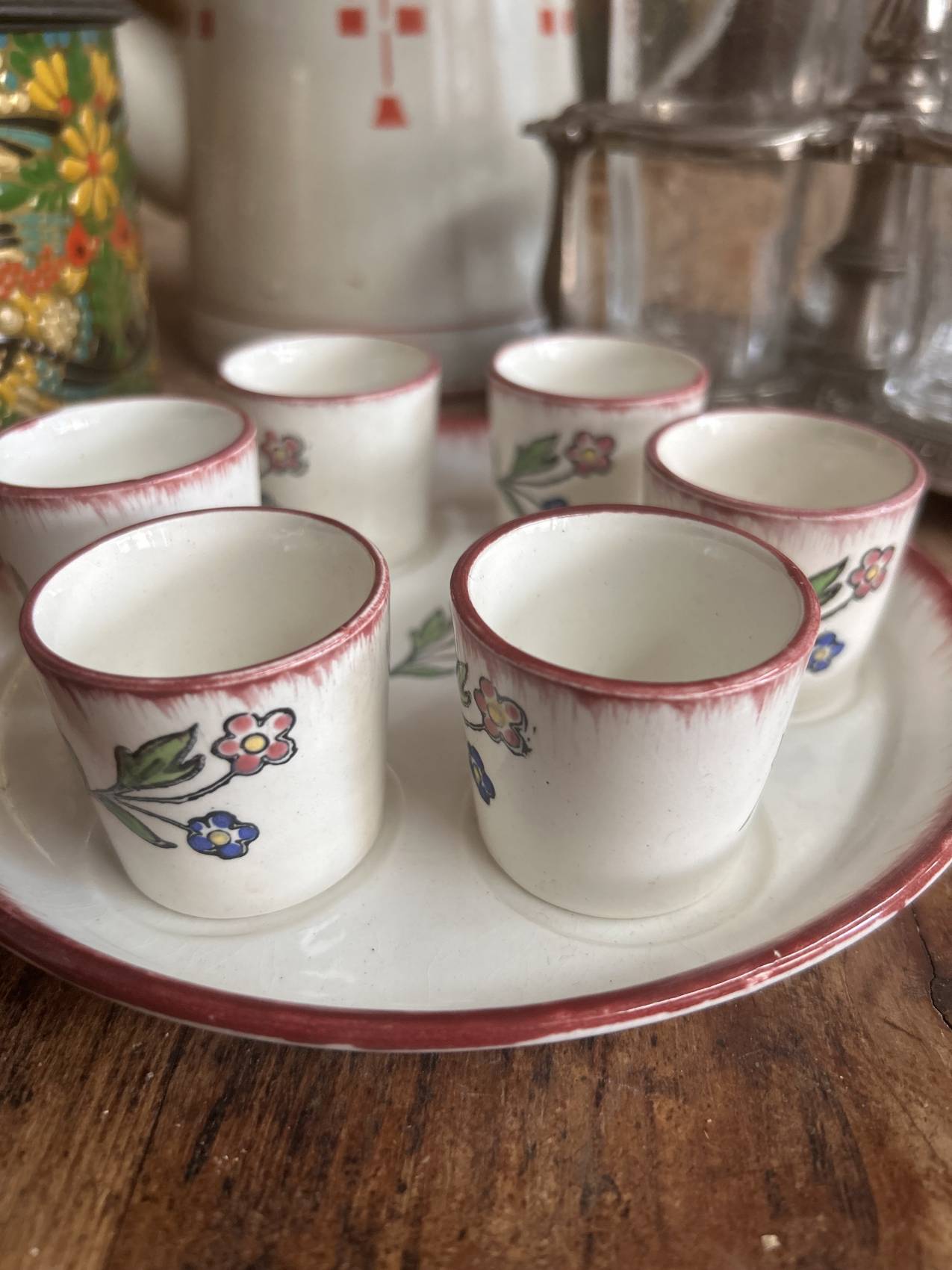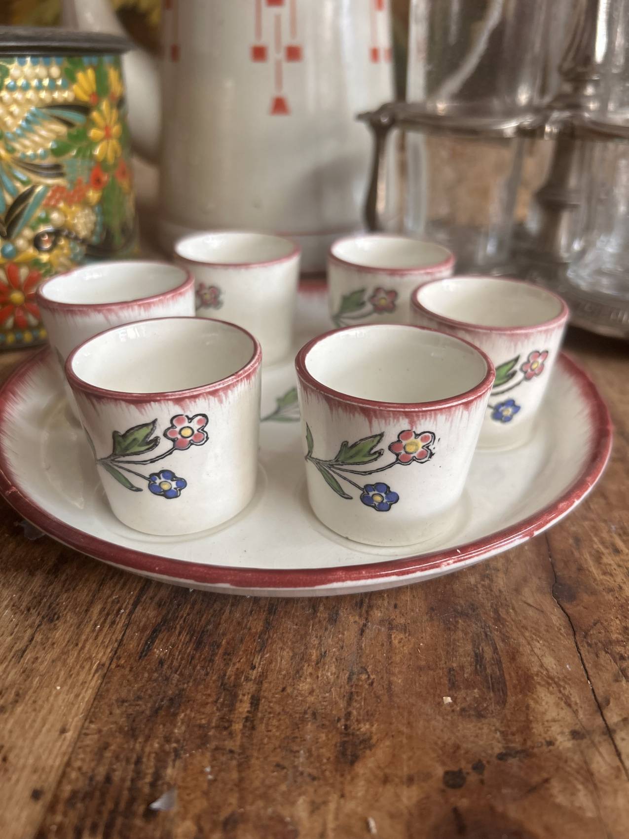- Ensemble de coquetiers anciens modèle Monique en faïence à motif de fleurs