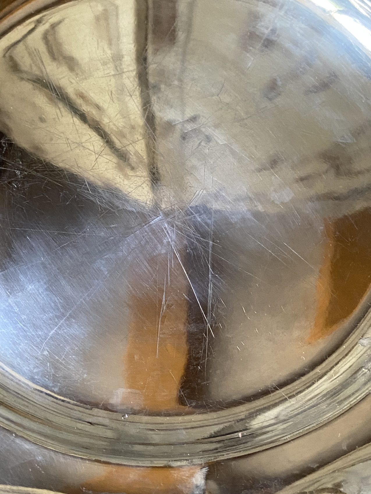 On observe quelques usures visibles au centre du plat. Rien de rédhibitoire, mais cela fait partie du charme d’un objet qui a vécu.