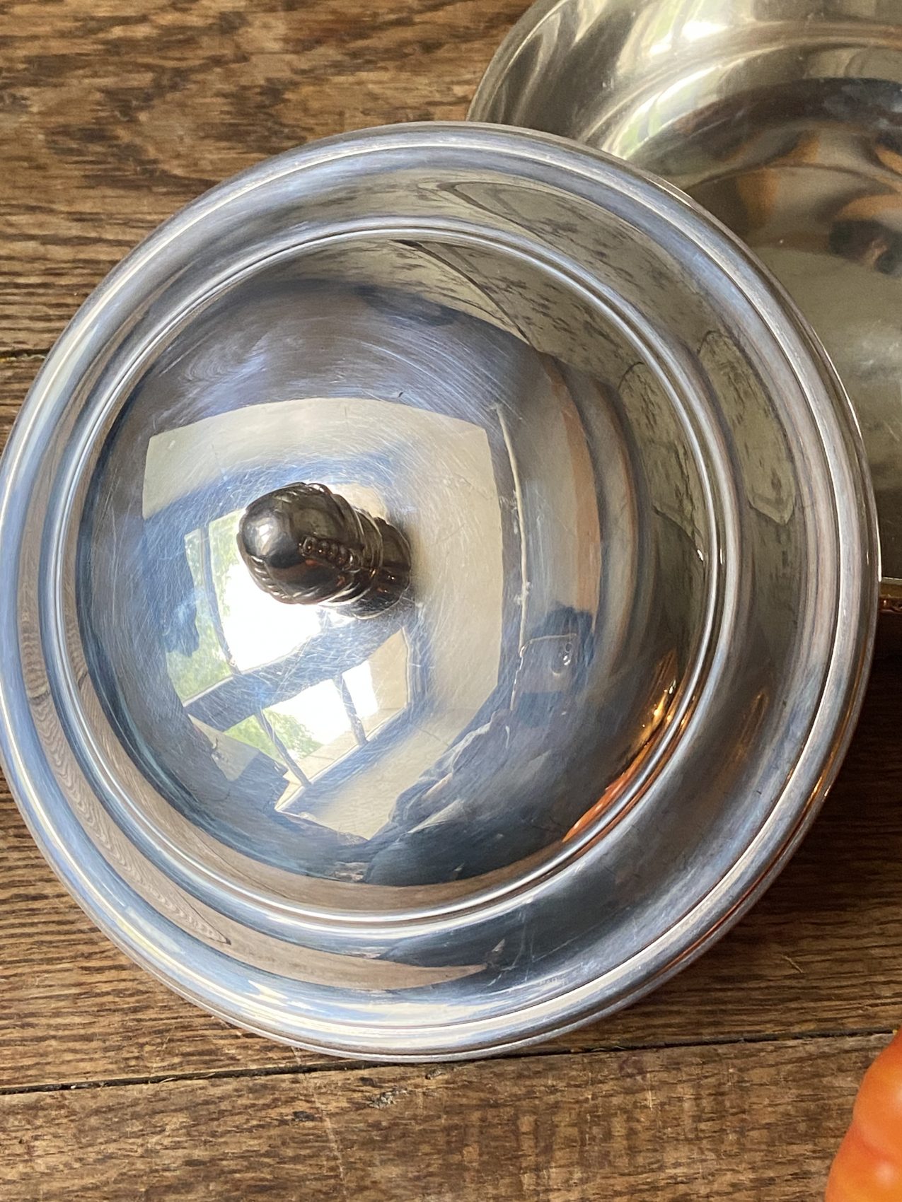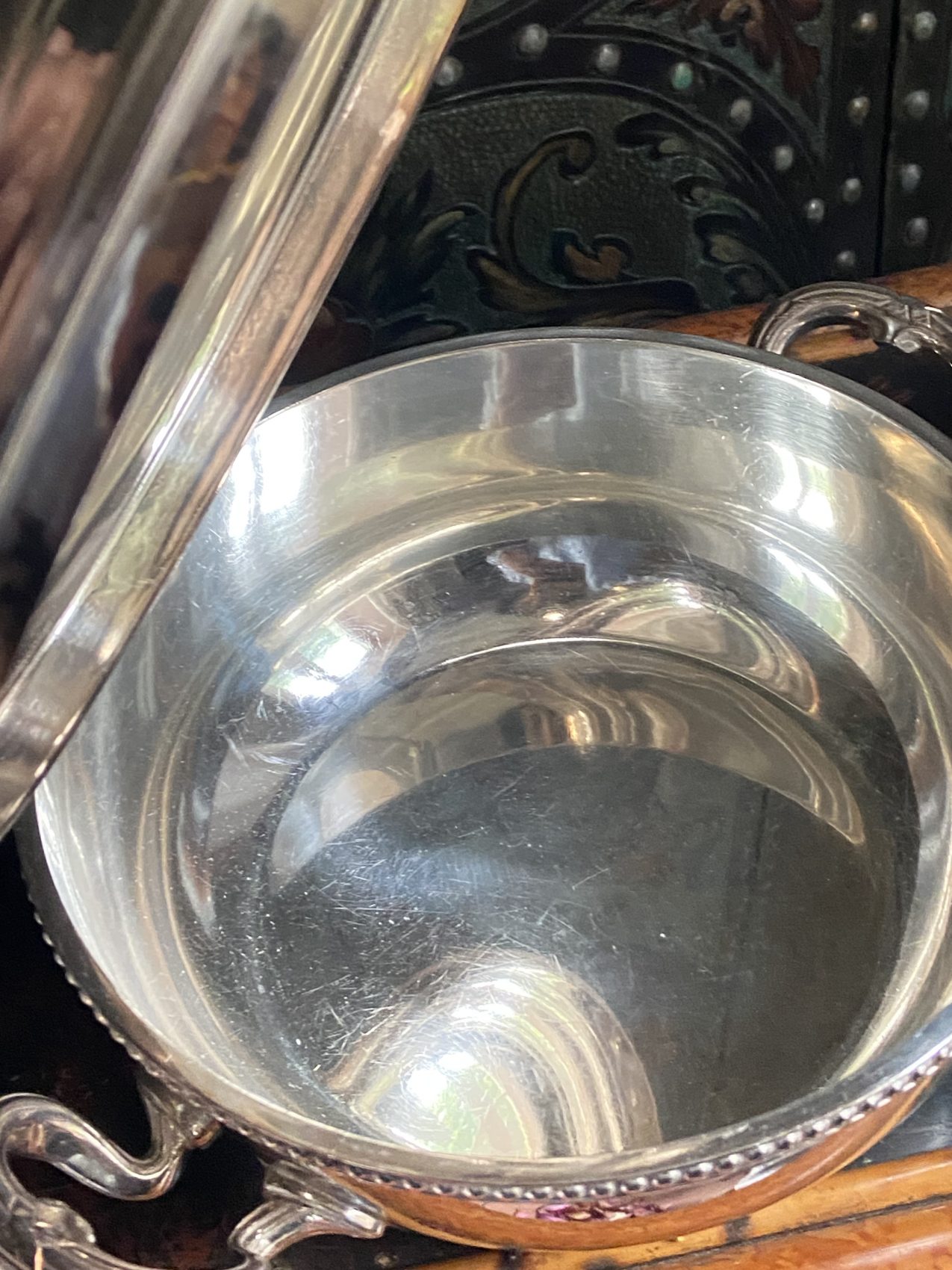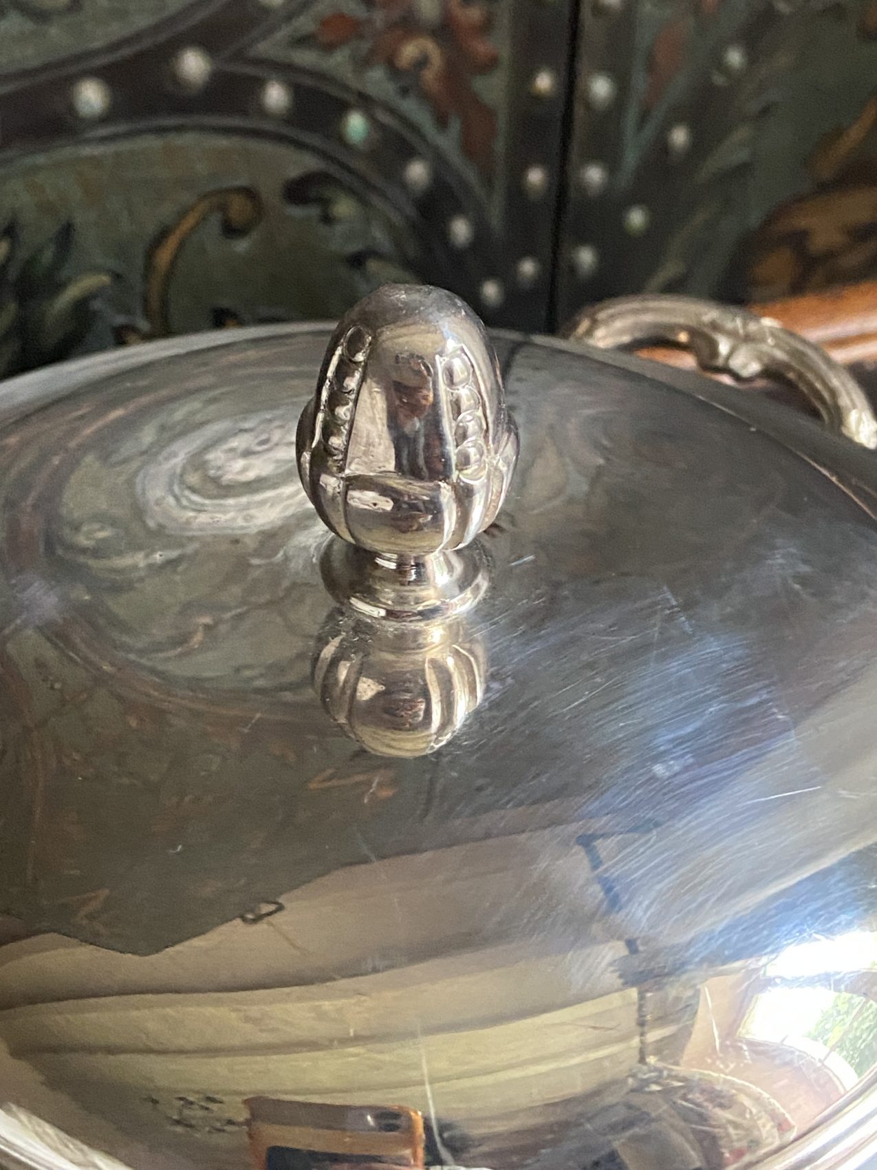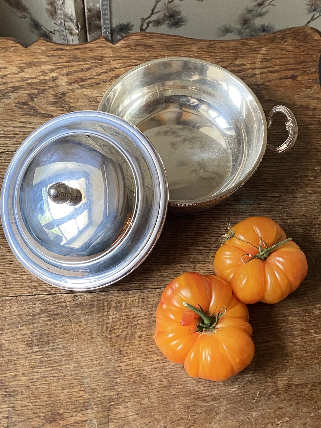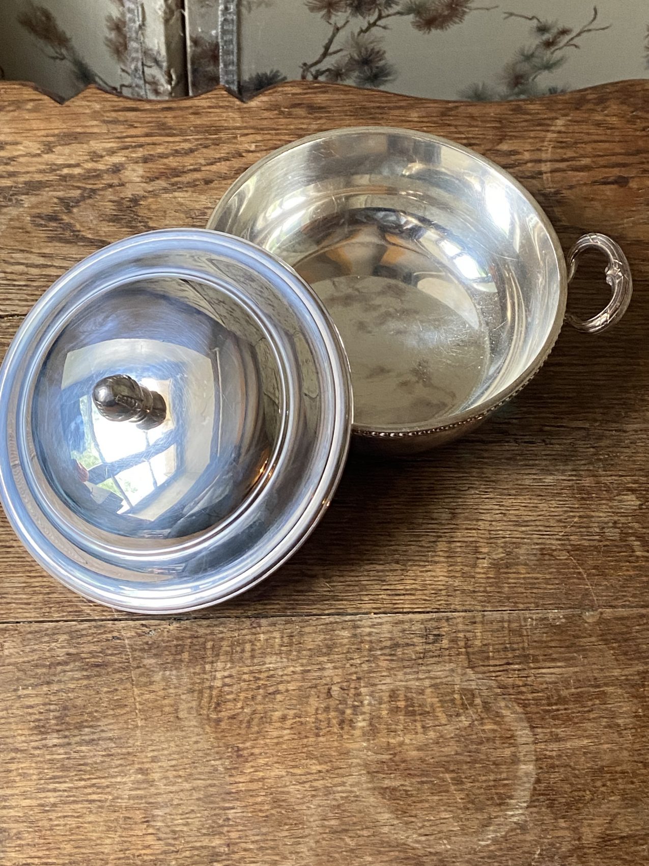 Légumier couvert en métal argenté avec plat chantourné Maison Ercuis