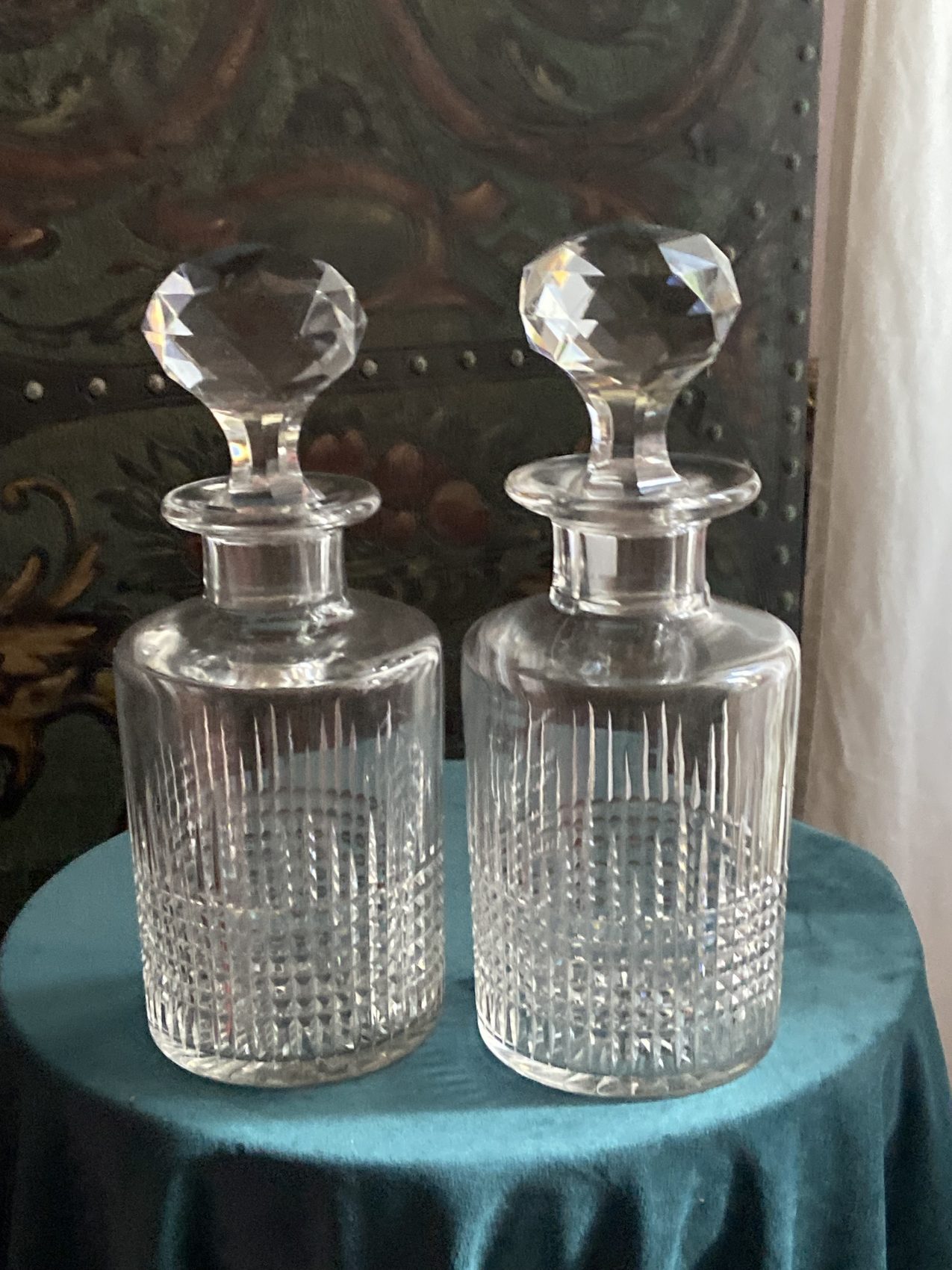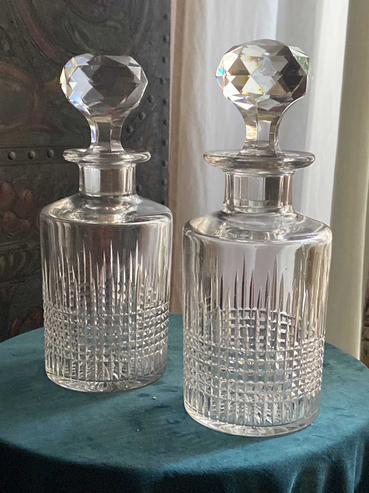 R : Oui, les deux flacons sont estampillés Baccarat au socle. Il s’agit du modèle Nancy, toujours au catalogue.