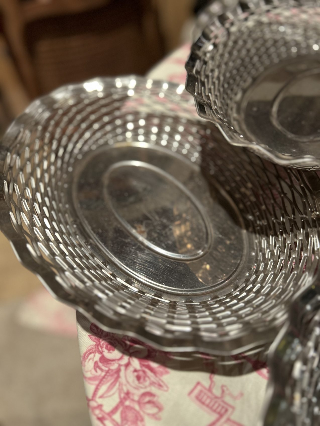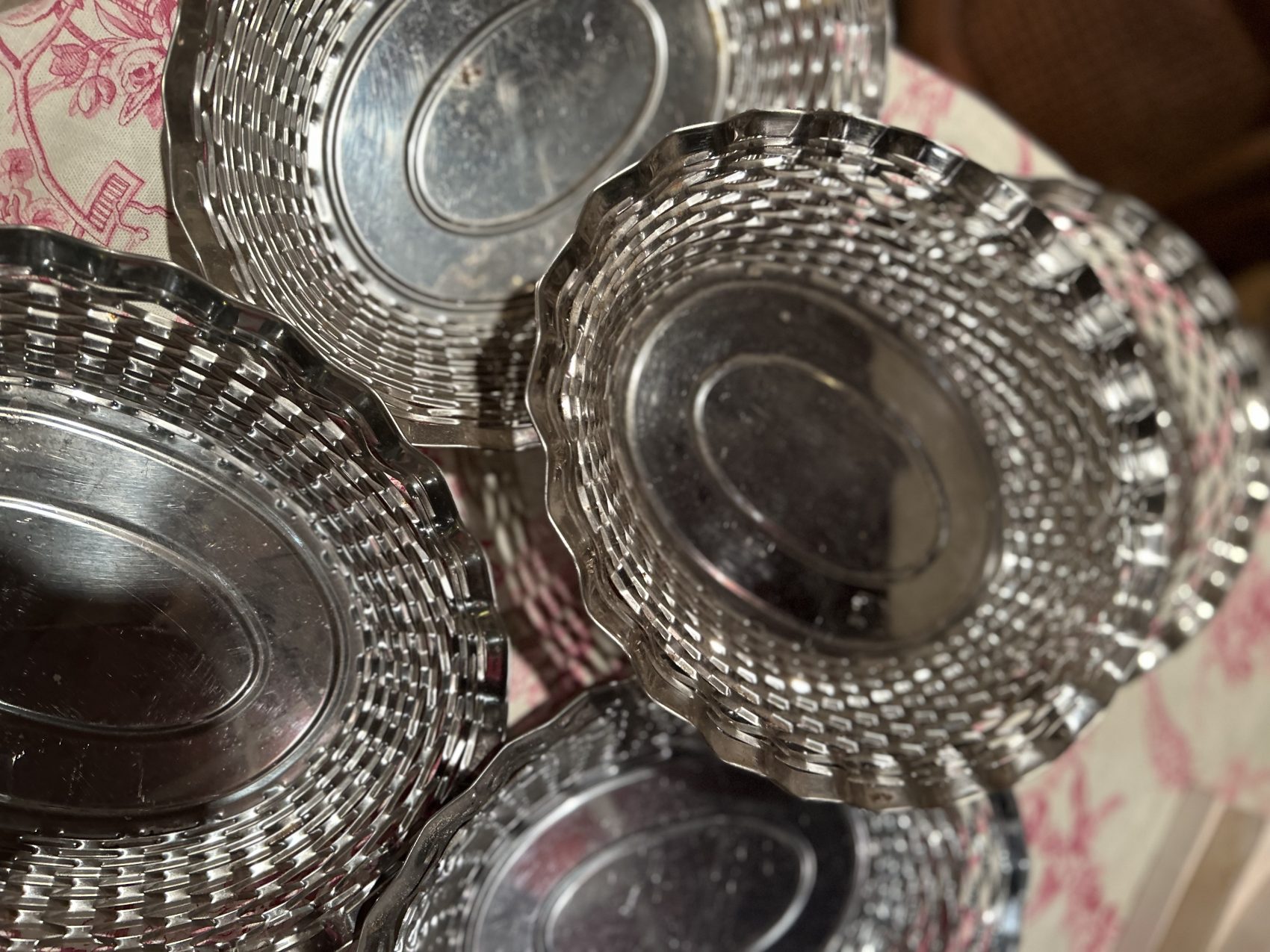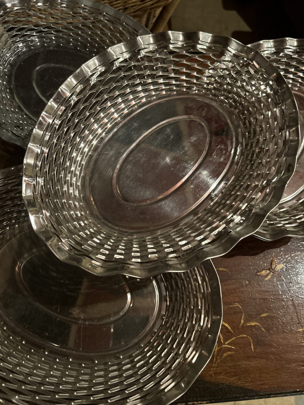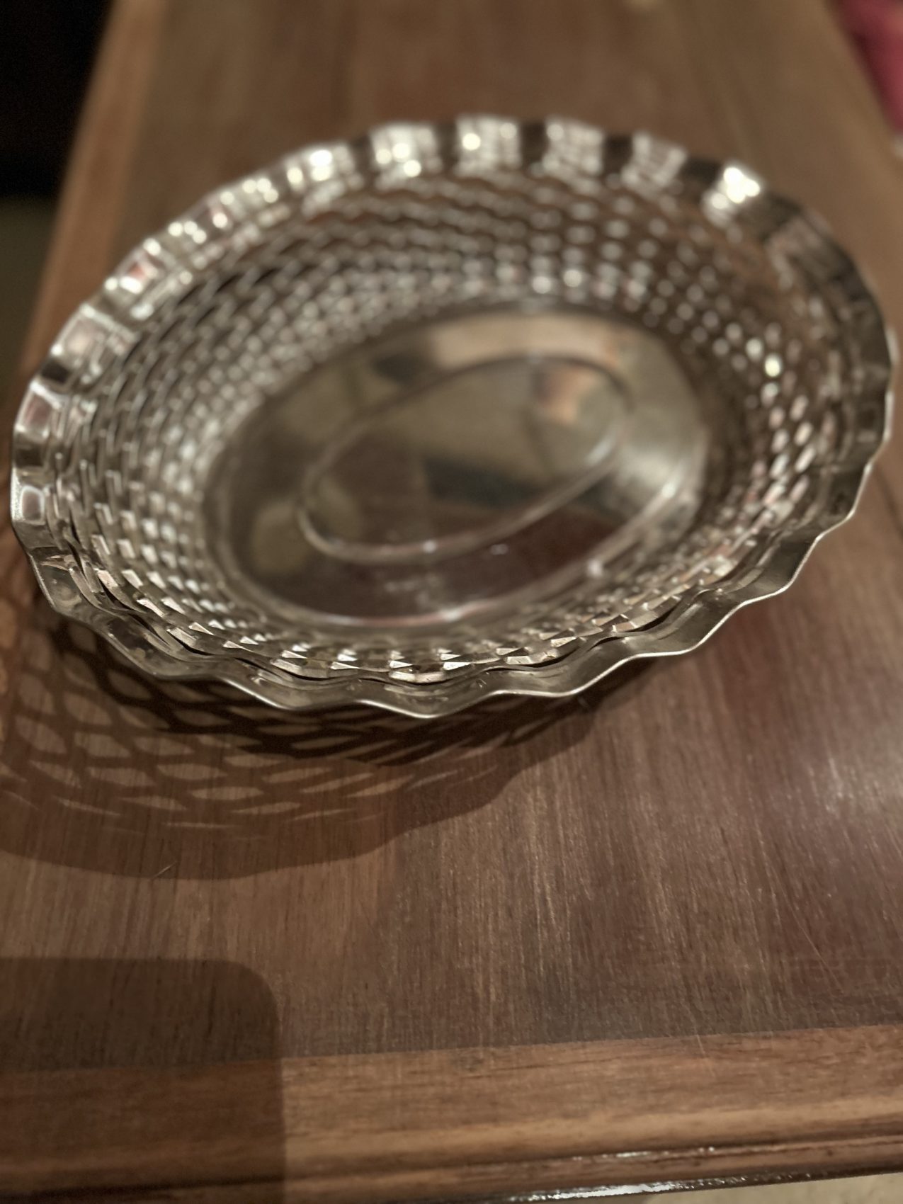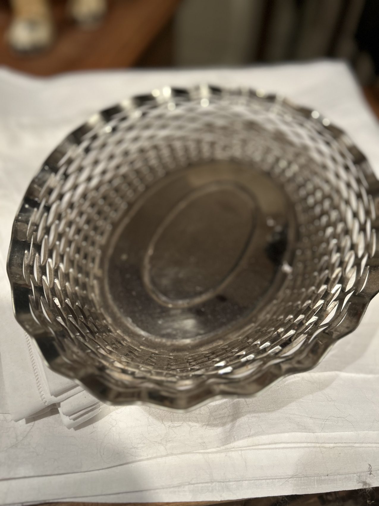 Corbeille à pain vintage en métal argenté tressé – années 60